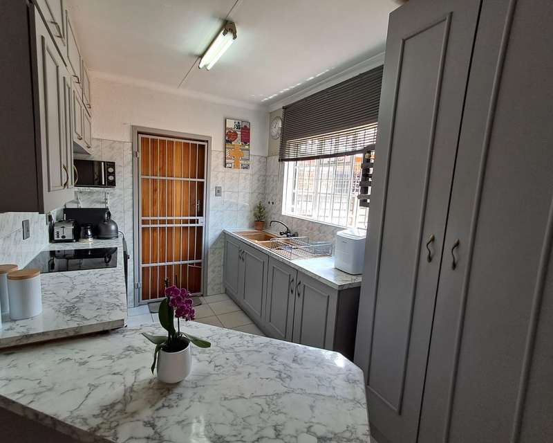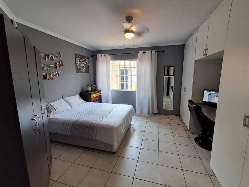The home is well maintained and move in ready. Extremely secure location. This is a freestanding house in a complex and a boomed-off area. 2 Kingsize Bedrooms, 2 modern Bathrooms (main ensuite), Modern kitchen, Lounge, Covered patio (build in braai), Garage for 3 cars (parking for additional 2 cars). The home is pet friendly and if you like to go for walks in the mornings/evenings you will find children playing in the streets and people walking their pets, jogging or cycling. A lifestyle centre is going to be build opposite the road, which is going to include a private school.