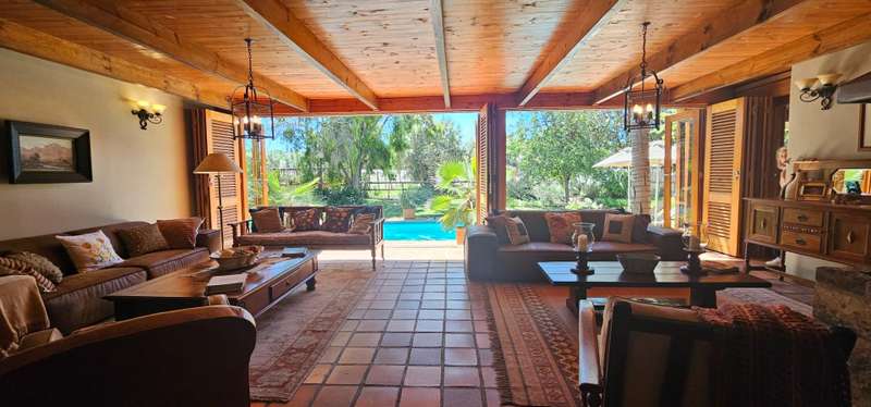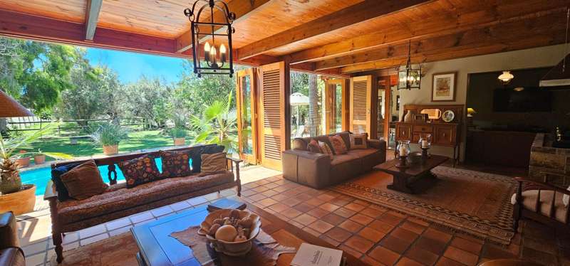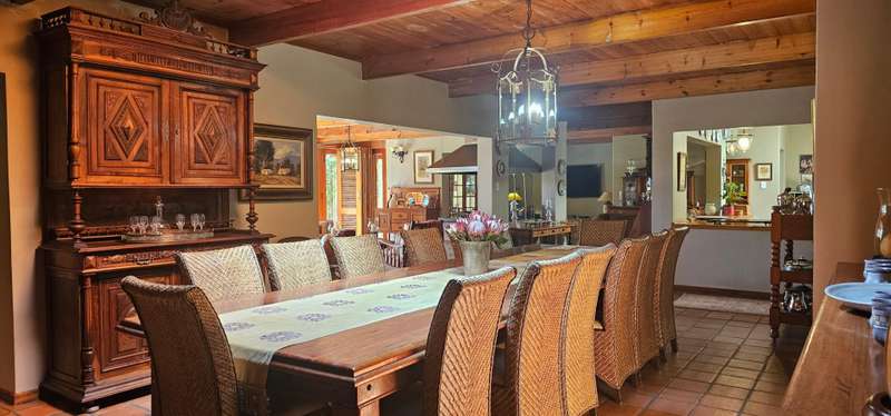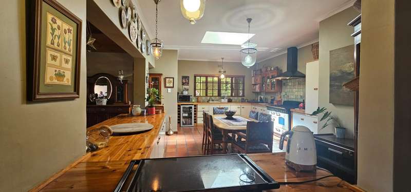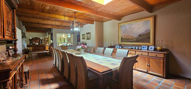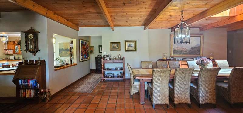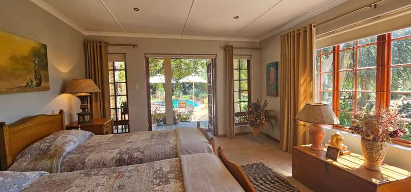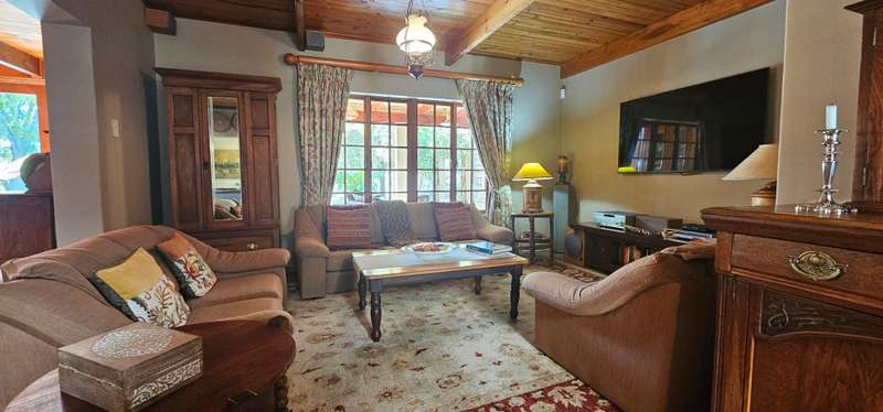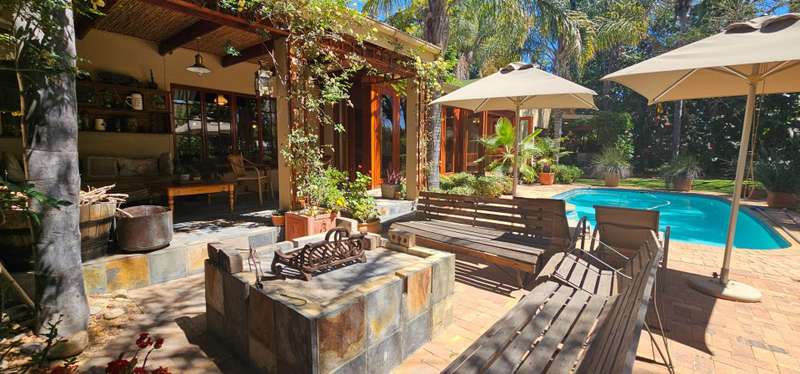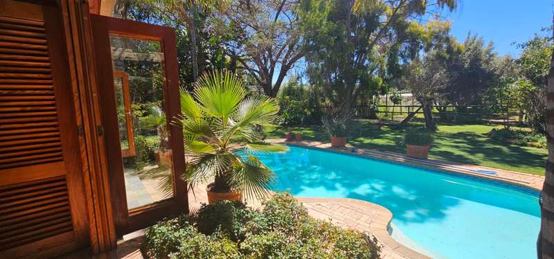 RIVERFRONT LIFESTYLE - UNRIVALLED TRANQUILITY IN TOWN Escape to a private world where country charm meets sophisticated modern luxury. This exclusive property is not just a house, it?ÇÖs a fully established lifestyle estate offering 7933 sqm of prime land directly on the banks of the Grobbelaar?ÇÖs River. Enveloped by majestic mature trees and heavy with the scent of lavender at the entrance, this sanctuary guarantees absolute peace and privacy, while remaining conveniently in town. The spacious, classic home welcomes you with warmth & character, designed for both grand entertaining and comfortable family living. Accommodation: The home features 4 x generously sized bedrooms, 3 x with luxury en-suite bathrooms, a separate full fourth bathroom and a convenient guest cloakroom (guest toilet). The main bedroom is a true retreat, offering underfloor heating and access to a private, lush patio. For visitors or extended family, the fourth bedroom serves as an ideal guest suite, positioned separately with its own private entrance. Heart of the Home: An open-plan design effortlessly connects the main living spaces. The gourmet kitchen is equipped with a premium Falcon Classic 110 Gas Stove, featuring unique hand-made tiles - a separate scullery flows into the dining area and a spacious indoor braai/grill area. This entire area opens directly onto the swimming pool & meticulously landscaped gardens ?Çô indoor outdoor living at its best. Working from Home: Dedicated workspace includes a comfortable main living room, a formal lounge and a large dedicated study with its own private entrance, making it ideal for a professional work-from-home setup. The outdoor offering is as exceptional as the residence itself, emphasizing sustainable living and utility. Agricultural Riches: The flourishing, meticulously landscaped garden features a unique opportunity for production with 98 producing olive trees and a flourishing, net-protected vegetable garden. Infrastructure: Utility is paramount: the property includes a large separate workroom, a professional walk-in cold room for storage and 3 x dedicated horse stables, offering excellent versatility for hobbies or business. Water Security: The estate features a powerful private borehole/well and irrigation water, complemented by extensive 17,500L storage capacity via three 5,000-liter tanks and one 2,500-liter tank (17,500L total capacity). Energy Efficiency: Enjoy peace of mind and lower utility costs with the installed SunSynk system and 10 solar panels, ensuring reliable energy security. While embracing country tranquility, the property prioritizes modern security, featuring a comprehensive CCTV camera system and perimeter beams. The double carport and extensive open parking ensure ample space for all vehicles. This is a rare opportunity to acquire a versatile, self-sufficient, and elegant estate in a premium, riverfront location.