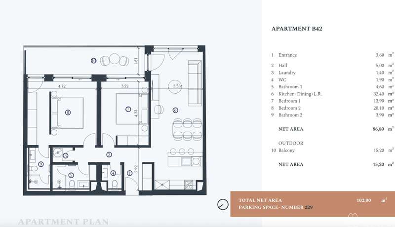 The main resort building houses 179 apartments of various types. All apartments feature private terraces with views of the sea or Mediterranean greenery, while the interiors are designed in a contemporary style with an emphasis on elegance and natural materials. Each unit is equipped with a modern kitchen, bathrooms with underfloor heating, washer-dryer, smart TV system, safe, and high-speed internet. Great attention has been paid to details that provide the comfort of a home and the luxury of a hotel at the same time, from premium materials to personalized services such as baby equipment or pet-friendly amenities upon request.