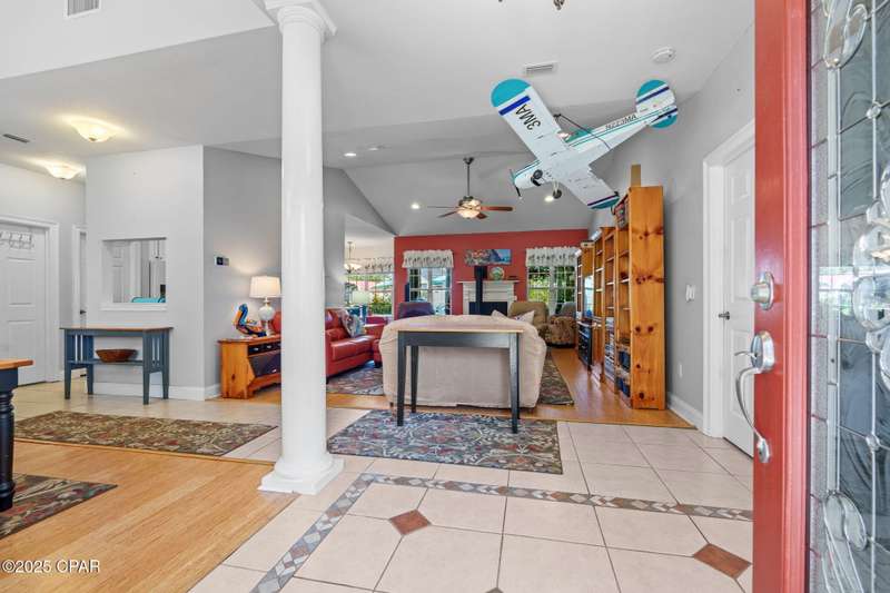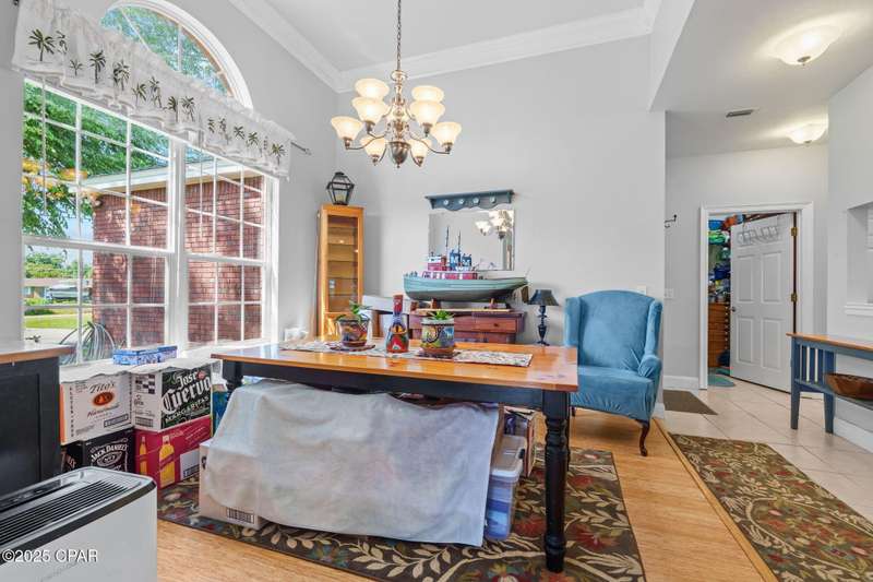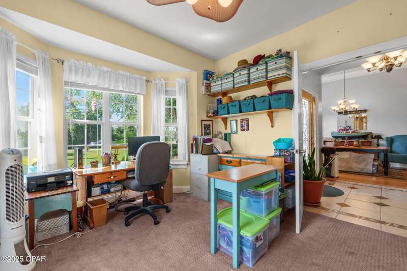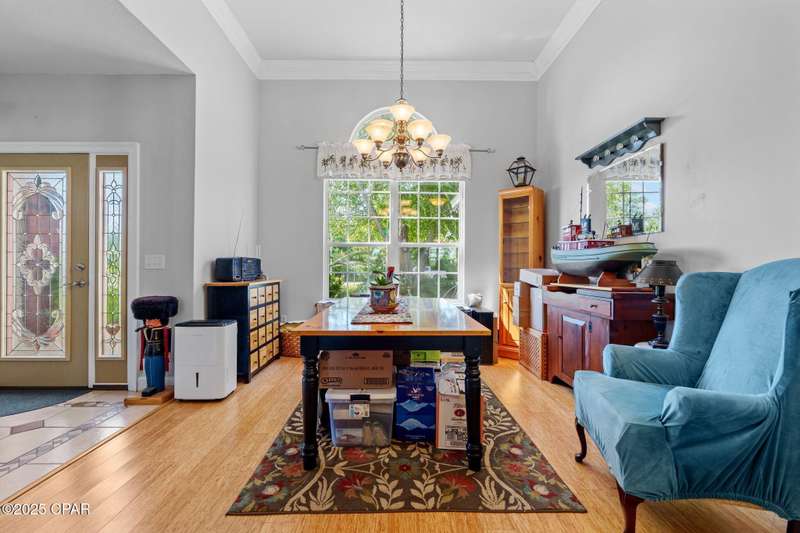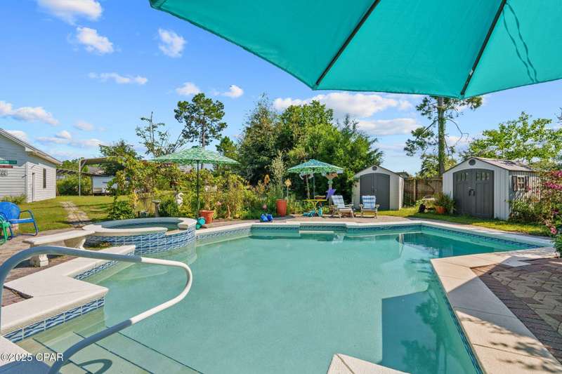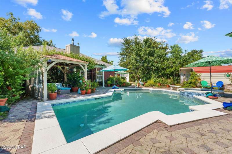 Spacious home with versatile layout in Deerpoint Estates!This well-maintained 3-bedroom, 2-bathroom home offers an ideal balance of comfort and lifestyle. Enjoy your own backyard oasis with a saltwater pool, spa, and covered patio, all while being just a 2-minute drive to the Deerpoint Lake boat ramp, perfect for fishing, boating, and water recreation.The thoughtful split floor plan gives the primary suite privacy on one side of the home, complete with a spa-like bath featuring a jacuzzi tub, separate shower, dual vanities, and a large walk-in closet. The suite also includes an attached 13x12 bonus room, perfect for a private office or retreat.On the opposite side, two additional bedrooms and a full bath provide plenty of space for family or guests. The open living room showcases raised ceilings, a fireplace, and a propane heating stove, creating a warm and inviting atmosphere. The space flows seamlessly into the kitchen and breakfast nook, making it ideal for entertaining.The kitchen is a chef's delight with newer appliances, ample counter space, an island, pantry, and adjoining laundry room. A separate formal dining area, accented with rich bamboo floors and elegant crown molding, adds sophistication to your gatherings.A true standout feature is the 24x30 climate-controlled garage/workshop with hurricane-impact windows, attic storage, and plenty of room for vehicles and projects. Additional peace of mind comes from a new roof (2019), new HVAC (2024), and water softening system. The oversized, fully fenced yard also includes RV/boat parking and multiple carports, with space for up to 8 covered vehicles.Located in the desirable Deerpoint Estates waterfront community, this home is close to top-rated schools, shopping, and the new Publix less than 10 minutes away.Don't miss this one-of-a-kind property that combines comfort, versatility, and the Florida lifestyle.