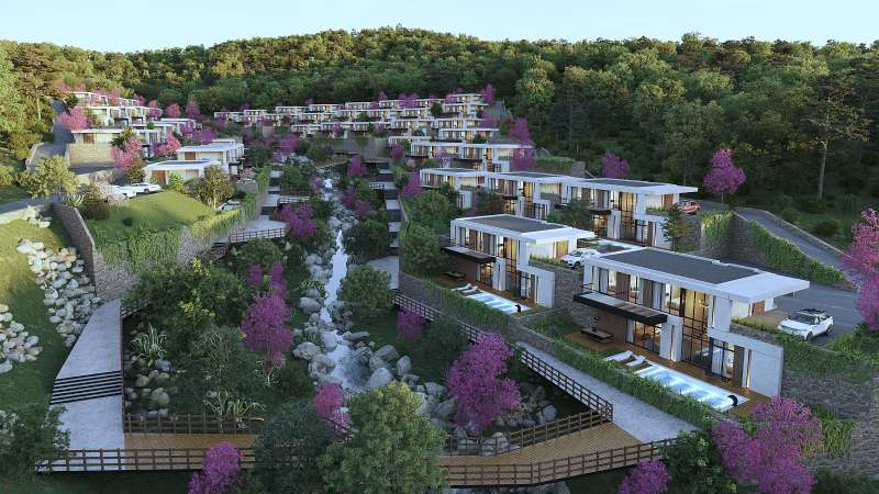 The residential project will be constructed on a total land of 28.500 m². The project includes 50 duplex and detached villas with large usage and living spaces. The project is enriched with private swimming pools and private gardens. The ground floors of the villas have open-plan kitchens and a bedroom while the first floors have 3 bedrooms. The interior spaces of the villas with 4 bathrooms aim to bring comfort and tranquility together.