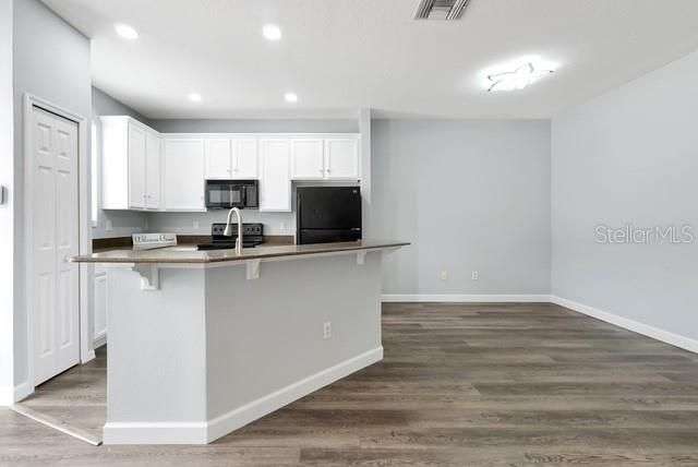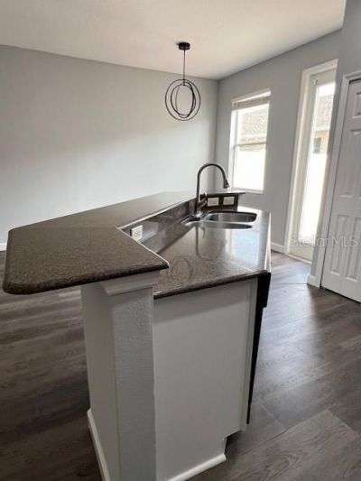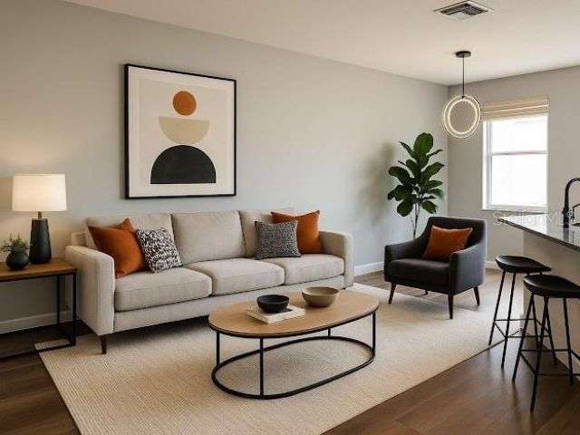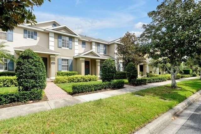 Some photos have been virtually staged. 3 Bedrooms + den or office (first floor), 3 Bath 2 Story Unit, 2 car garage. Combo dining room and family room. Breakfast bar. One of the home's standout features is the patio with pavers, nestled between the main house and the two car garage. Master bedroom is upstairs, walk in closets, This private outdoor space is perfect for relaxing or enjoying Florida's beautiful weather. Inside 2nd floor utility room with washer and dryer hookups. Each bedroom offers ample natural light. Located in a quiet and well connected community, with easy access to top rated schools, shopping, Disney area and major highways. Community offers pool, playground, picnic area, fitness center.