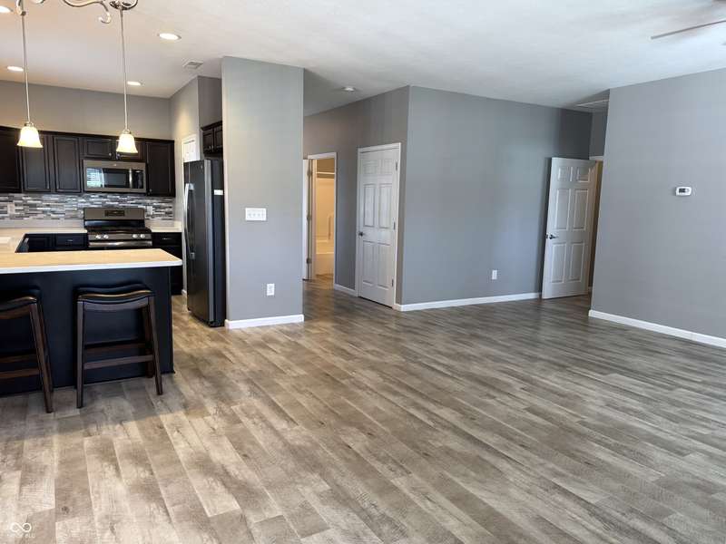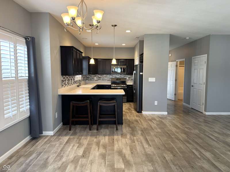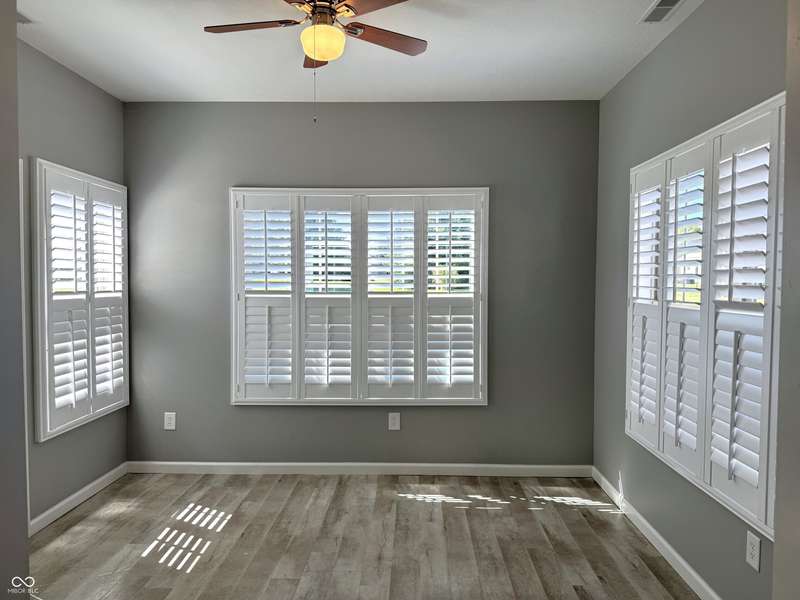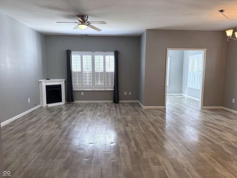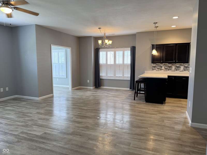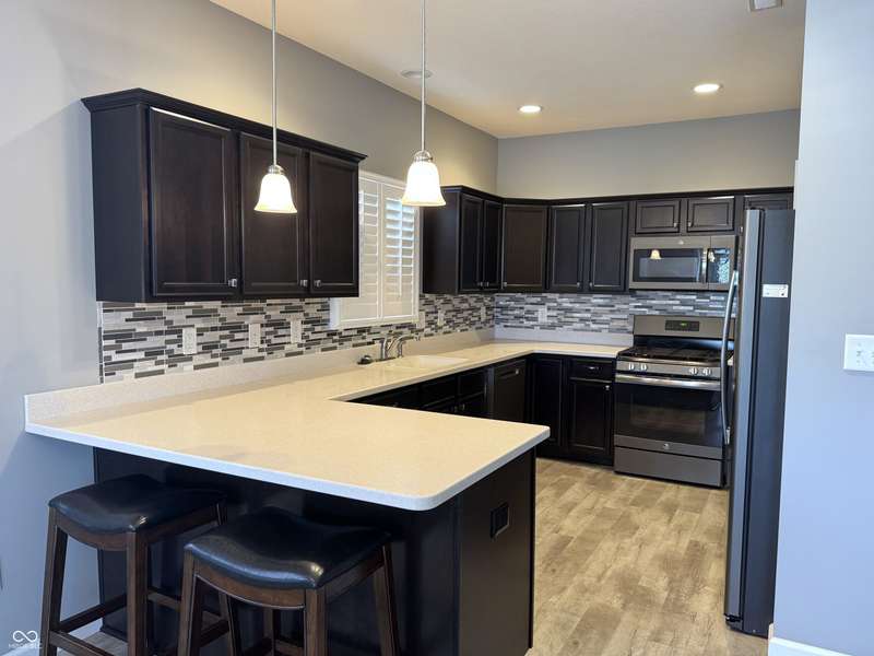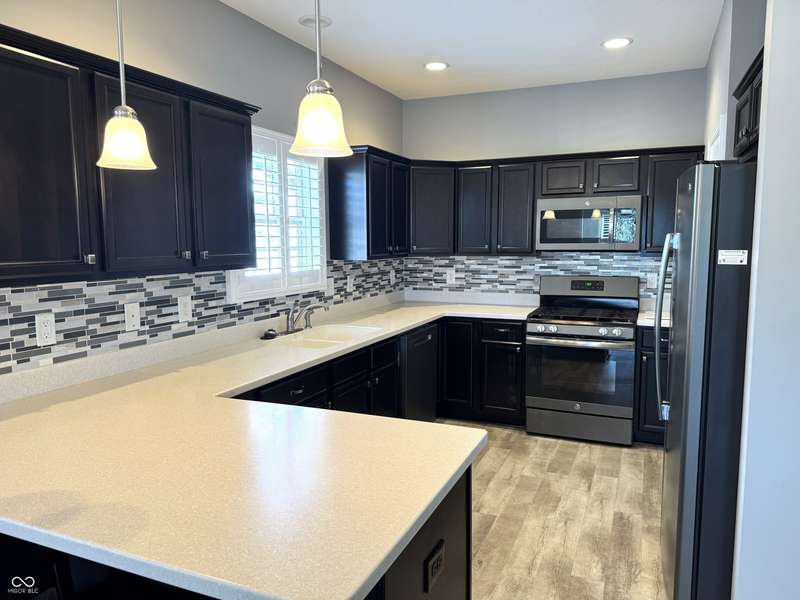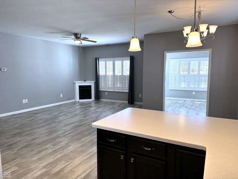 Welcome to this beautifully maintained 55+ condo in the highly desired Autumn Trace community. Step inside and enjoy the open concept floor plan where the kitchen flows seamlessly into the dining and family room, creating the perfect space for both everyday living and entertaining. The kitchen is a true highlight with upgraded cabinets, slate appliances, quartz countertops, tiled backsplash, and a convenient breakfast bar. The family room offers a warm and inviting gas log fireplace, while the four-season room provides year-round comfort and a peaceful place to relax. The spacious primary suite features a large walk-in closet and a private bath with a walk-in shower. This home is filled with thoughtful upgrades, including luxury vinyl plank flooring, plantation shutters, ceiling fans, updated light fixtures, and storm doors. The 2-car garage offers ample storage with built-in cabinets and an outdoor sink. Outdoors, you'll love the covered front porch for welcoming guests and the open rear patio for enjoying fresh air and sunshine. This move-in ready condo combines comfort, style, and low-maintenance living-all in a welcoming 55+ community.