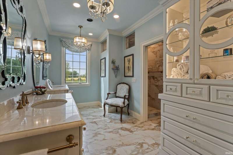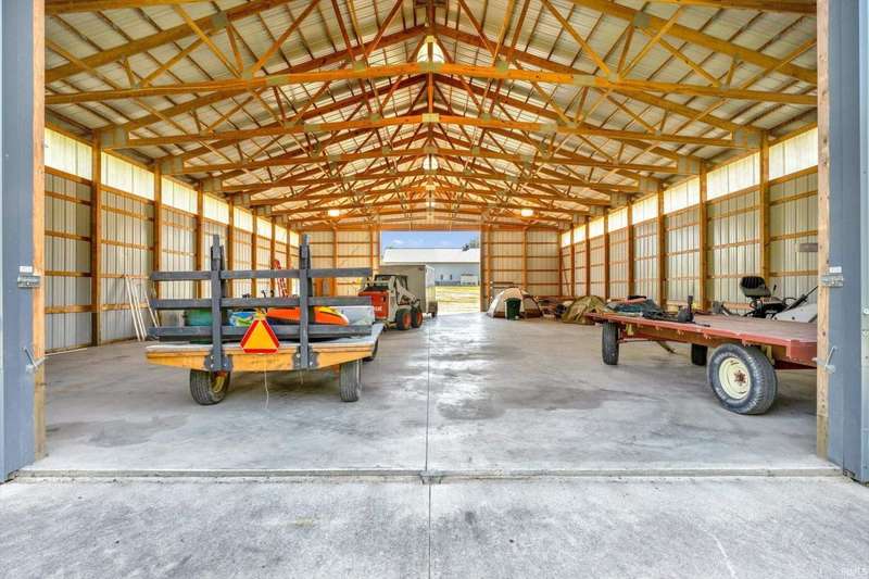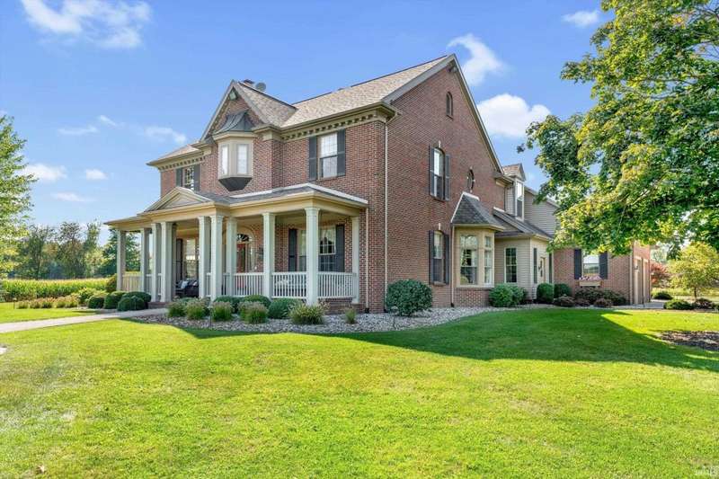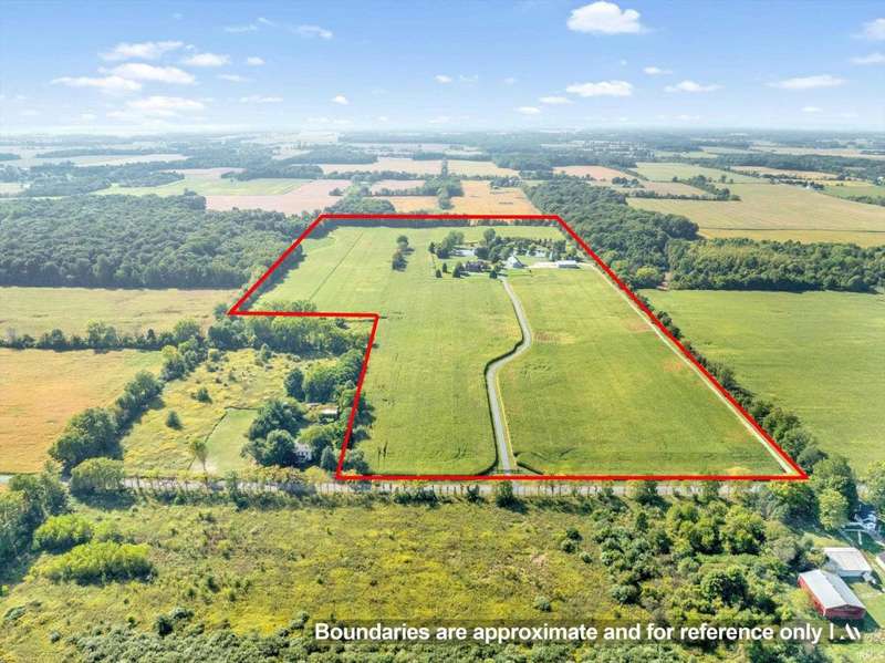 Experience the perfect blend of luxury, privacy, and functionality on this exceptional 70-acre estate in Lakeville, IN. Built in 1996 by Rans Custom Builders, the custom brick home features 5 bedrooms, 4 full and 2 half baths, and finished basement, all set on approximately 70 acres with a pool, private pond, high quality Morton barns, and stunning outdoor living spaces. Interior highlights include 9' ceilings, hardwood floors, beautiful millwork, updated kitchen with Ayr cabinetry, granite countertops & high-end appliances. Spacious primary suite & secondary bedrooms with recently remodeled en-suite bathrooms and walk-in closets. Enjoy a resort-style backyard with a saltwater gunite pool & jacuzzi. The property includes two Morton barns (one commercial-grade), a greenhouse, stocked pond with two piers, fenced frontage, and - 2 quarter-mile driveways. Additional amenities: geothermal heating/cooling, full-farm generator, irrigation system, surround sound, security system, and 51 tillable acres under a cash rent agreement. Located just south of South Bend and 90 minutes from Chicago, with access to LaVille or John Glenn schools. This is an exceptionally rare opportunity to own an exquisite turn-key rural estate. See property details in the attached "Features" document.