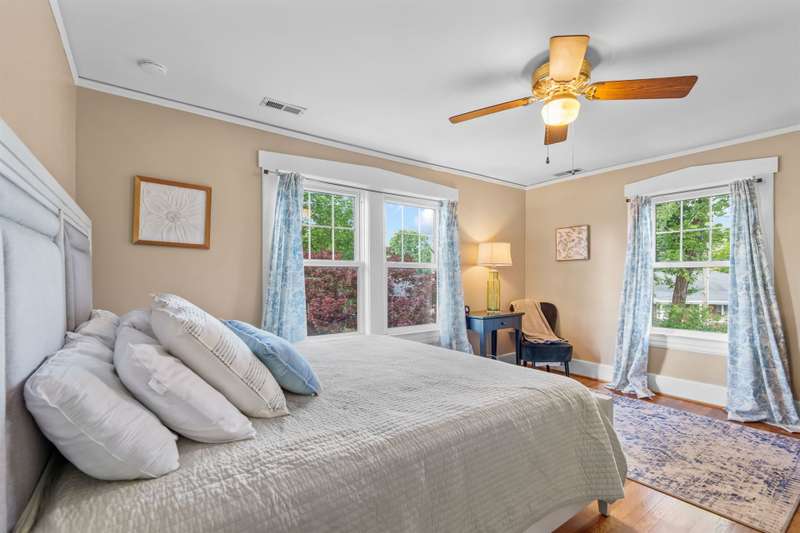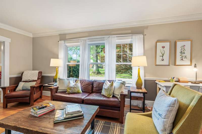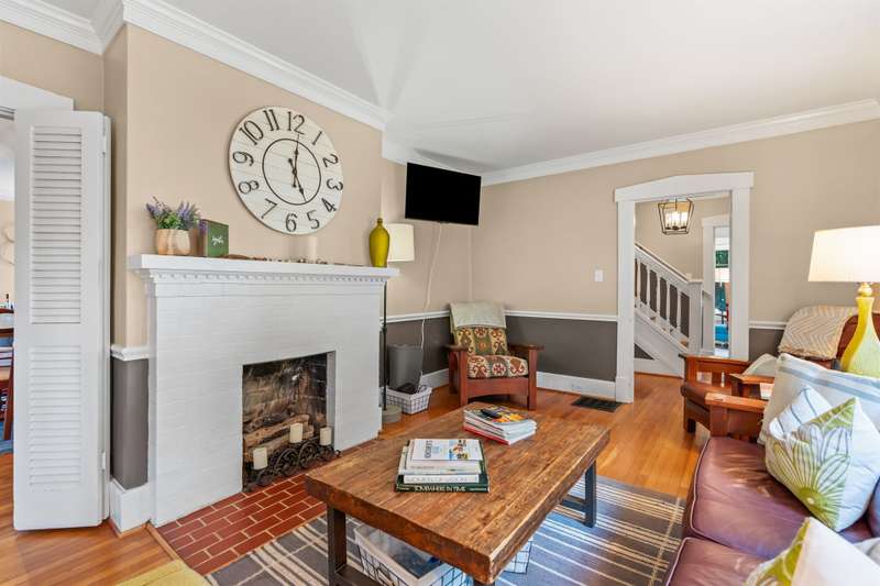A perfect location to all the downtown action. Walking distance to the HP Farmer's Market- Only one block away. A few blocks to restaurants, soccer and baseball stadium and triangle park!A charming two-story home is great for entertaining with a large covered porch plus a screened porch. Cozy back yard with patio. Large dining room and an updated kitchen with a breakfast nook, solid counters and fun brick wall accent. Primary en-suite plus office or playroom on the main level, which is currently used as a 5th bedroom. Seller will sell most of the furniture.