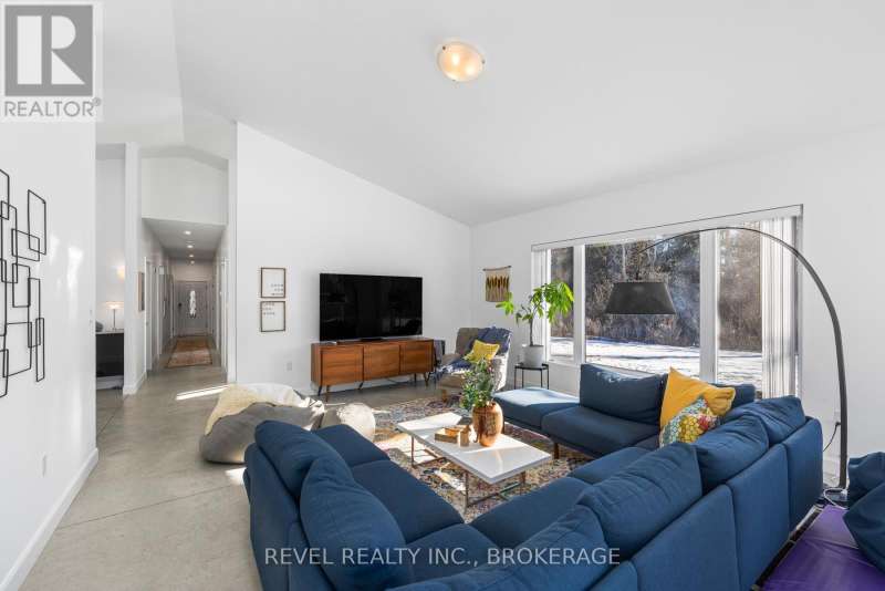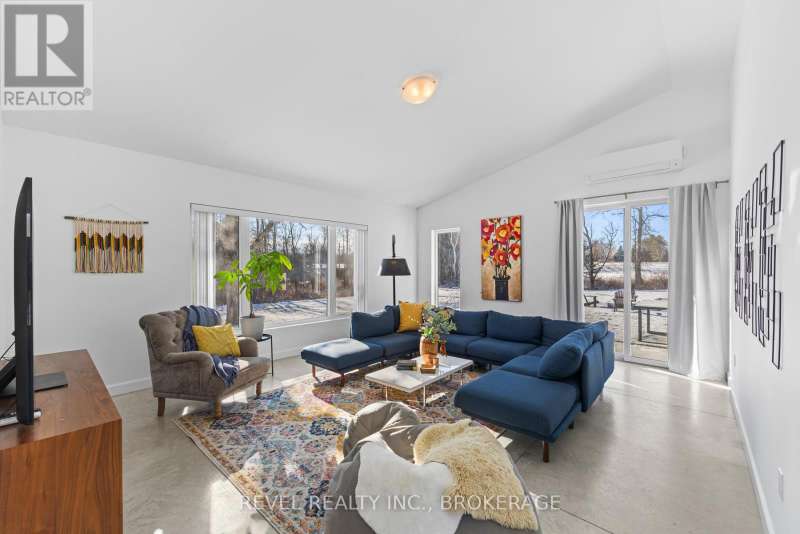 Welcome to 49 Riverview Drive, where modern living meets unparalleled tranquility. This almost new stunning custom-built slab-on-grade bungalow is sitting on just under 3 acres, offering the ultimate prize in privacy and peace. Located beside the scenic Napanee River, this home is the perfect retreat for those seeking a harmonious blend of contemporary design and natures beauty. A feature you'll love is the radiant in-floor heating that provides warmth and comfort from the ground up, ensuring cozy living year-round. This home is so thoughtfully designed with high-quality finishes and an emphasis on elegance and functionality that can't be missed. Just a stone's throw from the water's edge, you have to experience a peaceful walk along the riverside. Open-concept living, large windows for natural light, and sleek finishes create an inviting atmosphere. Head outside to the newly landscaped property where you've got room to roam This property offers endless opportunities for outdoor activities, fire-pit, gardening, hot tub, or simply basking in the serenity. Don't wait to make this sanctuary your own! Contact us today to book your private viewing of 49 Riverview Dr. (id:7434)