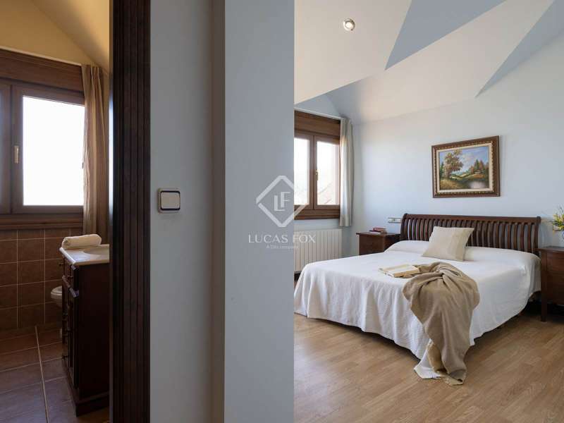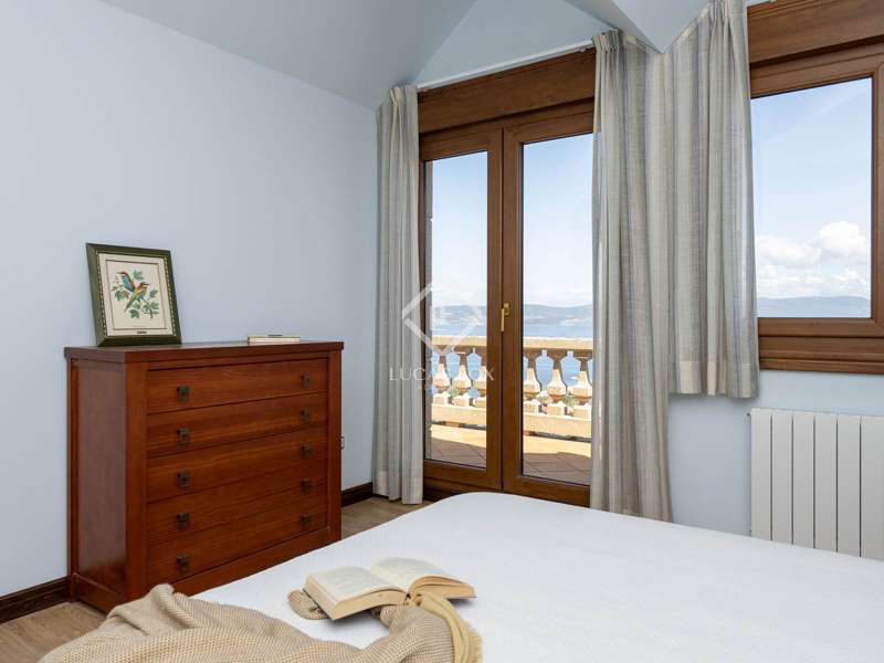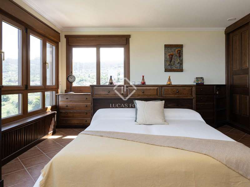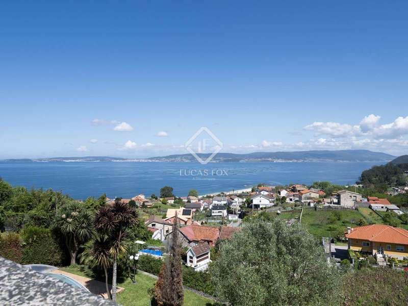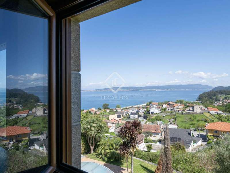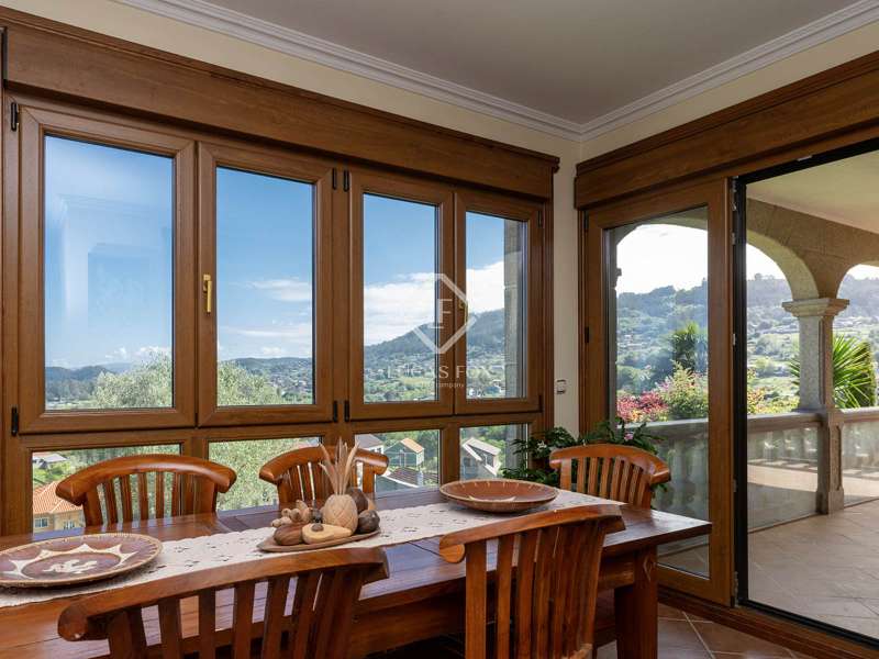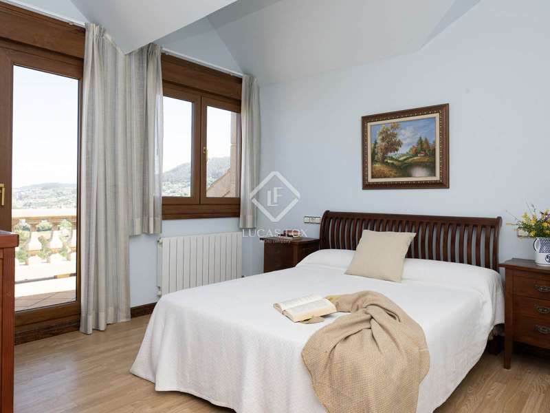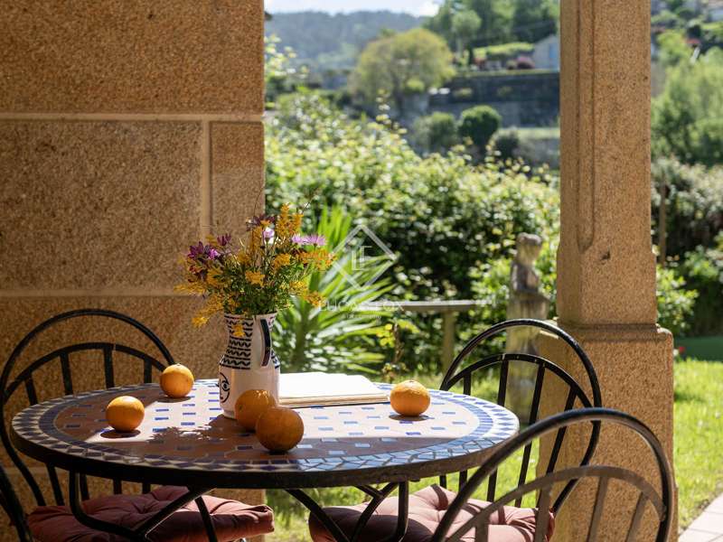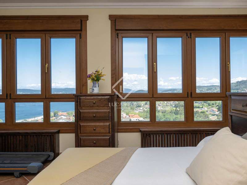 Lucas Fox presents a good-quality stone villa on a hilltop, offering a fantastic location and lovely views of the Pontevedra Estuary. The property is a short distance from Pontevedra city and the city of Vigo and is a short driving distance to the fisherman's town of Bueu, in the province of Pontevedra. The stone villa has a plot size of approximately 3,830 m² and a built size of 587 m². If necessary, more land can be purchased. The villa is constructed entirely of stone and good-quality materials inside and out. It offers three levels of space. Upon entering the main entrance, we have the entrance hall leading to the day area. On this level, we find the kitchen-diner section, which offers a terrace section that overlooks the garden area and spectacular sea views. We also find a sitting area, two en-suite bedrooms, and a common bathroom. The sleeping area is on the upper floor, with a large main en-suite bedroom, another en-suite bedroom, and a shared bathroom. The en-suite bedroom offers an open terrace overlooking the garden with lovely views. All bedrooms are bright and spacious rooms. On the ground floor, we find a large open area with a summer dining area, a chill-out section, a changing room, two bathrooms, and a small kitchen section. This area gives access to the outdoor garden and swimming pool. Next to the swimming pool, there is a well-built barbecue section. The exterior part of the property has parking for one or two cars, a lovely garden section with fruit trees, and a mature garden with plants and trees. This would be an ideal property for a growing family or couple looking for a property nestled in one of the most beautiful places of the Rias Baixas. The property is located a short distance from the beaches of Agrelo and Portomaior and offers unbeatable views of the Pontevedra estuary. Please contact us for further information.