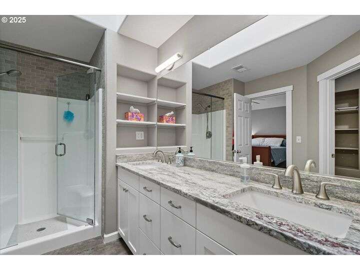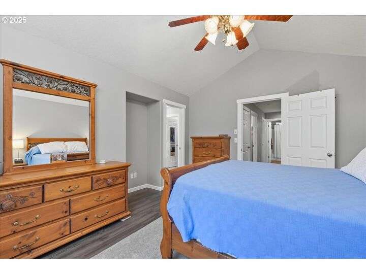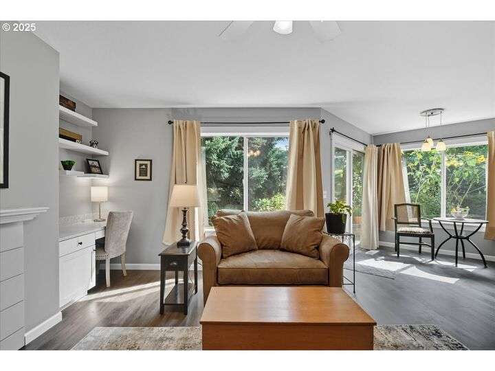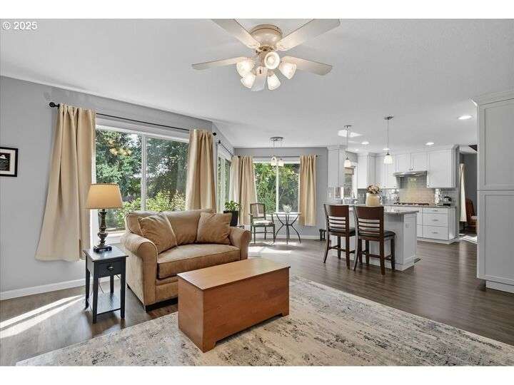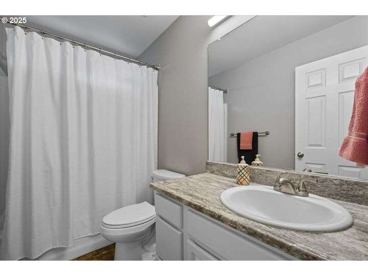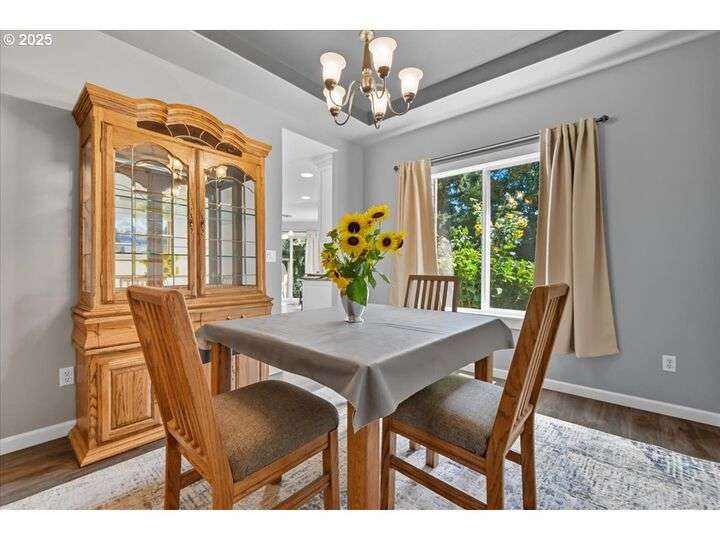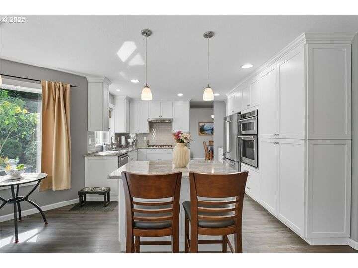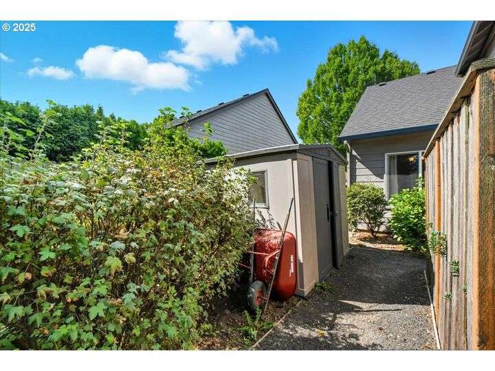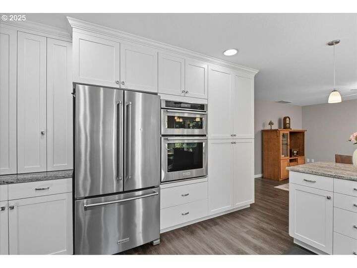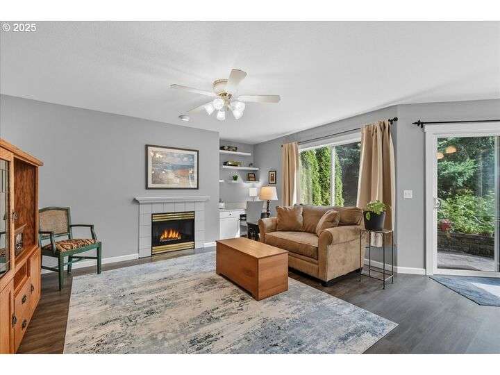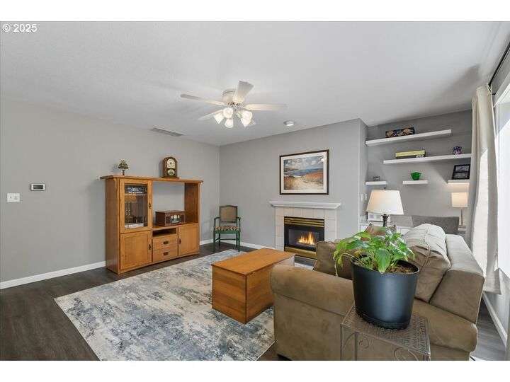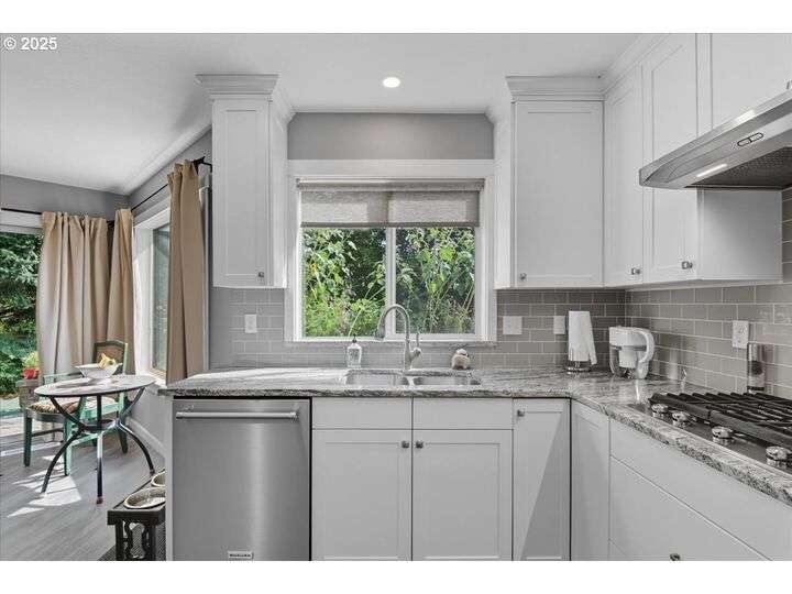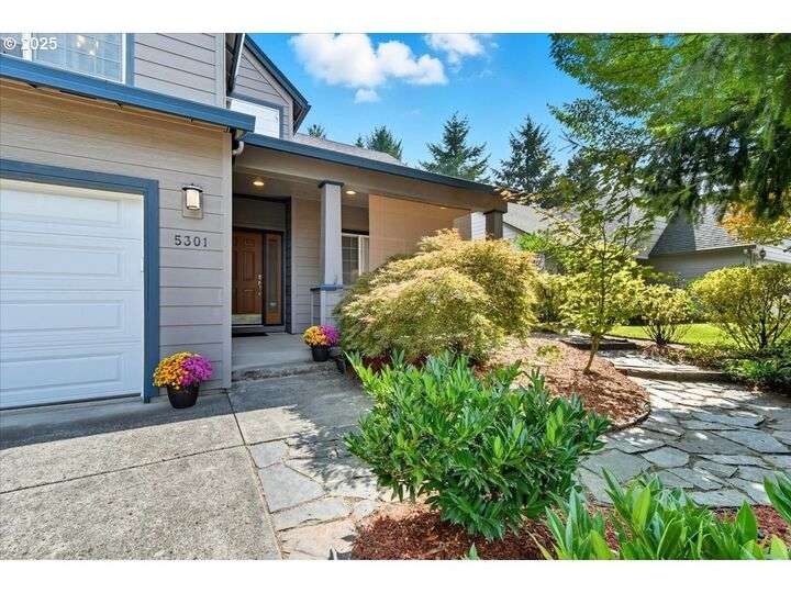 Come and see this beautifully updated 3-bedroom, 2.5-bath home with 1,875 SF, built in 1995 and thoughtfully modernized inside and out. A spacious covered front porch sets the tone for the warm welcome inside. The entry opens to a vaulted living room that flows into the dining area with trayed ceiling. Luxury vinyl plank flooring runs seamlessly throughout the home, adding both style and durability. The kitchen features granite counters, an island, built-in pantry w/pullouts, and a full suite of KitchenAid stainless appliances including 5-burner gas cooktop, refrigerator, wall oven/microwave, and dishwasher. Open to the family room, you’ll enjoy the comfort of a gas fireplace, built-in desk area, and sliding patio door leading to the backyard. Upstairs, the primary suite offers vaulted ceilings, a sun window, large walk-in closet with organizer, and an updated bath with walk-in shower, dual sinks, granite counters, and skylight. Two additional bedrooms share a full bath with granite counters. The laundry room includes built-in cabinets and a Kenmore washer/dryer. Outdoor living is complete with a large patio, gravel walkway, raised paver and wood garden beds, fenced yard, and storage shed. A two-car garage with utility sink adds convenience to this well-cared-for home. Updates include a kitchen remodel (2019), luxury vinyl flooring throughout (2019–2021), granite counters upstairs (2021), and HVAC system (2020), roof (2018). This home is centrally located with easy access to shopping and freeways—be sure to check it out!