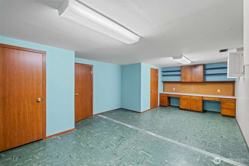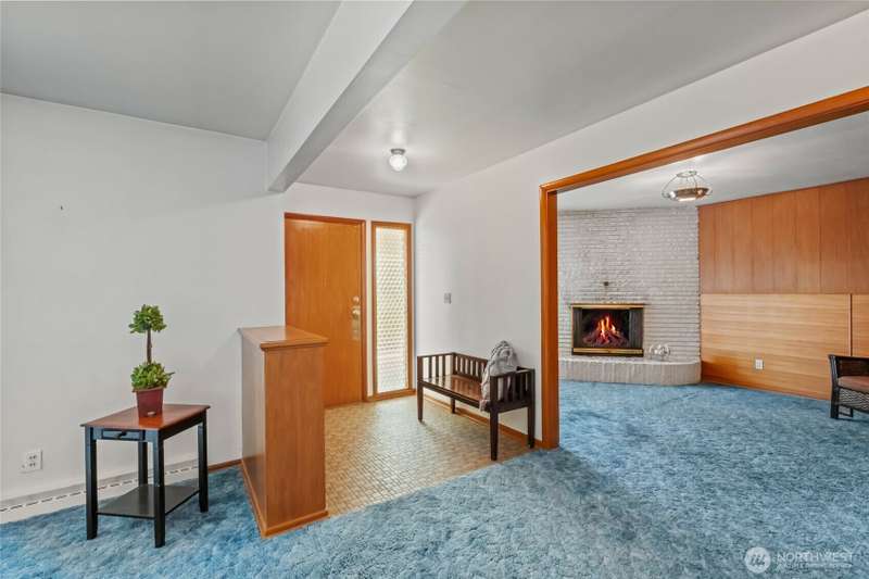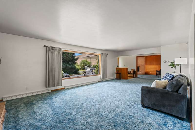 Lots of room in fantastic home w/ peek-a-boo view of valley. 3 bedrooms upstairs, with a very large living room with a beautiful fireplace plus additional living space-could be a great office or TV room, also has a wood-burning fireplace. Large kitchen w/ custom cabinets that accent lovely wood grain patterns you'll find fascinating. Dining can be enjoyed either in a formal dining area or a large breakfast area within the kitchen. Large primary bedroom w/ primary bathroom. Lots of storage.Expansive basement includes another large bedroom, w/ non-egress windows, a nice family room, 3/4 bathroom, utility room. Upgrades include CH&A, paint, sewer line & water line to street. 2-car garage, rain gutters, corner lot, underground sprinklers!