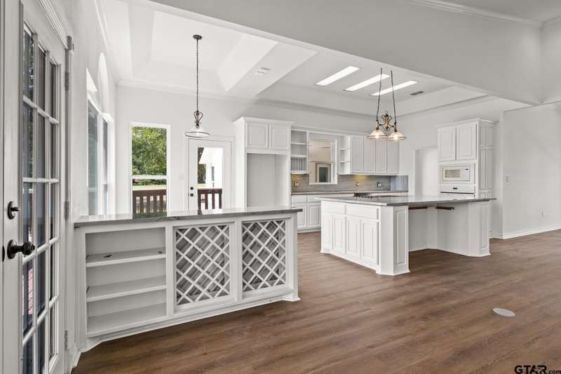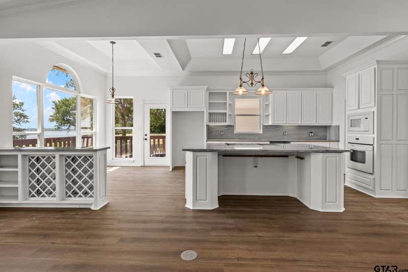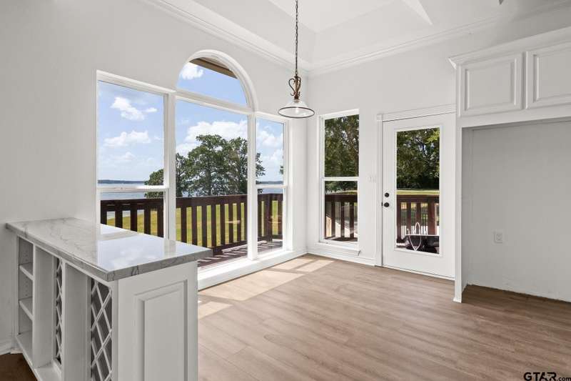 Discover the ultimate lakeside retreat at this stunning property nestled on the shores of Lake Bob Sandlin in the exclusive Paradise Village subdivision. Boasting luxurious updates throughout, this expansive home offers over 3,000 square feet of living space with multiple living and dining areas, making it ideal for hosting gatherings with loved ones while soaking in the serene lake views. Every corner of the house showcases breathtaking views and is bathed in natural light, creating a warm and inviting atmosphere. The primary suite beckons as a tranquil sanctuary featuring new carpet, a see-through fireplace, spa-like ensuite bath, and unparalleled views. Two cozy guest rooms share a well-appointed hall bath on the lower level, along with a spacious second living area. Additionally, a private guest suite with garage parking and ensuite bath provides a comfortable retreat for visitors. Dual covered porches offer the perfect spot to unwind and watch the sun dip below the horizon over the glistening lake, while a private boat house beckons for a day of water adventures. This lakeside oasis is where luxury living meets natural beauty! Call today to schedule your private showing.