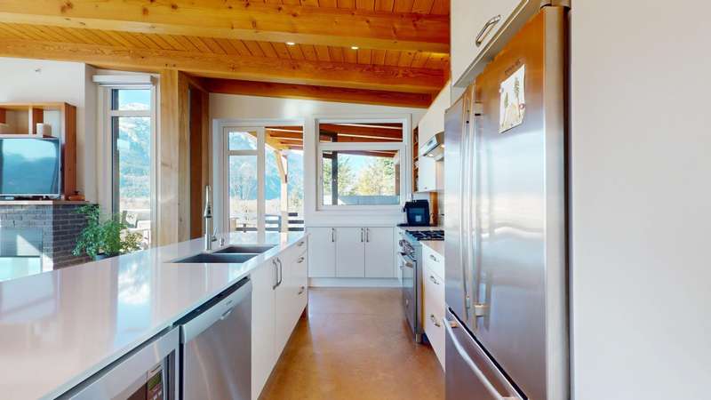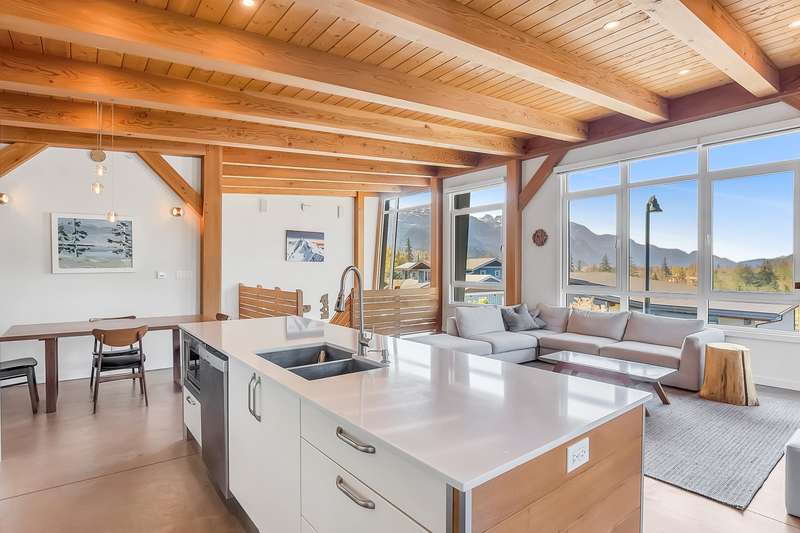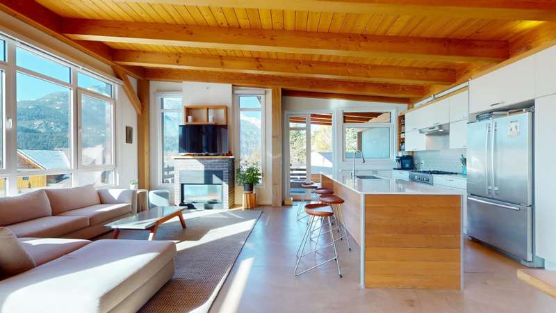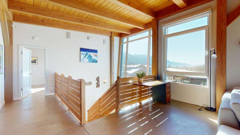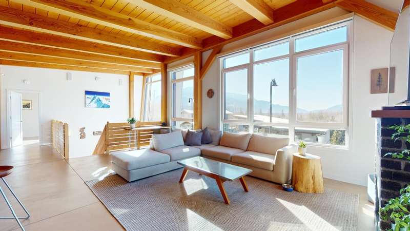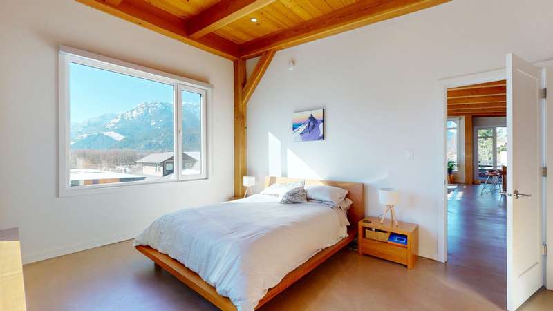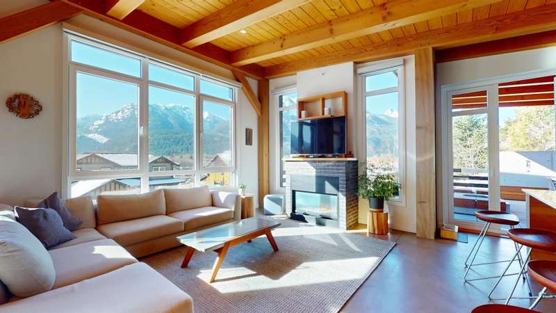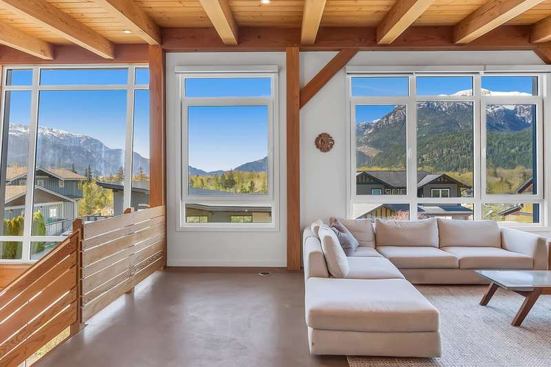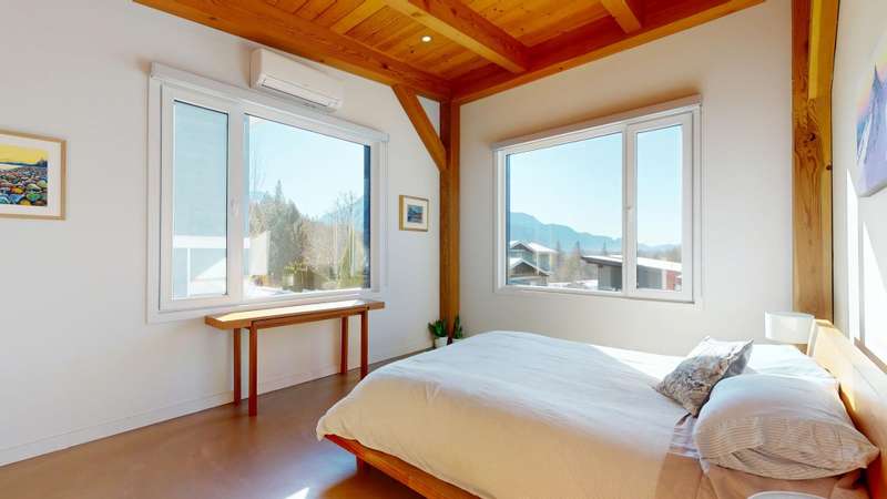 This stunning post and beam home, built by the renowned British Columbia Timberframe Company, blends craftsmanship with modern eco-friendly design. The energy-efficient home features underfloor heating and air conditioning for year-round comfort. Every corner showcases the beauty of sustainable materials and thoughtful construction. Large windows throughout offer breathtaking, unobstructed views, making nature an integral part of the living experience. With mountain bike trails just moments away, a low-maintenance yard, and quick highway access for an easy commute to the city or ski slopes, convenience and adventure are right outside your door. Whether you're enjoying the warmth of the underfloor heating or relaxing in the cool air-conditioned spaces, this home is designed to provide both