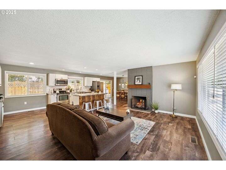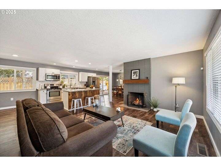 Single-level charmer on an oversized lot in an unbeatable location! This updated mid-century home welcomes you with an open floor plan, dual fireplace and a gorgeous mix of hardwoods and luxury vinyl plank flooring, creating a warm and inviting atmosphere. The dream kitchen is a true centerpiece, featuring granite counters, a generous entertainer’s island, and sleek stainless steel appliances. The oversized bonus room features a storage room and a mud room with a separate entrance. Step out back to enjoy the spacious deck and fully fenced backyard—perfect for gardening, play, or outdoor entertaining. Recent updates include the deck (2023), heater and A/C (2023) and fence (2025). The sellers also employed an arborist in 2025. Between the close proximity to Nike, Intel and all of the dreamy amenities Cedar Hills has to offer, the location can’t be beat. This gorgeous home really has it all.