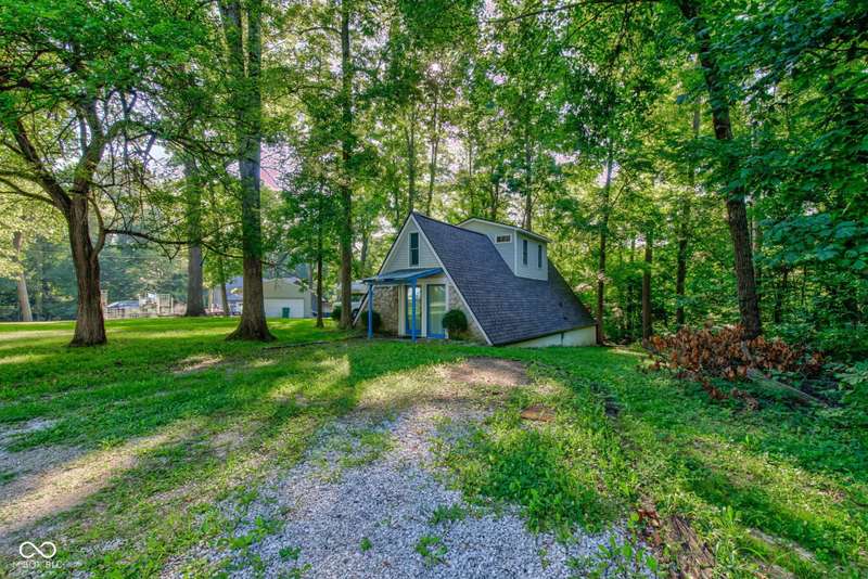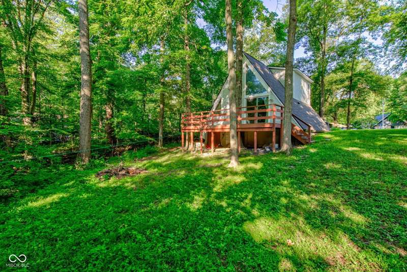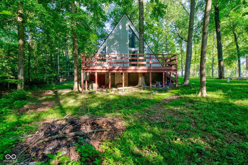 Why chase the lake life for a vacation when you can own it year-round? This property is your key to one of Indiana's premier private communities: Heritage Lake. On a wooded lot sits a striking A-frame, presenting a fantastic canvas for your vision. With approximately 1,650 square feet, dramatic vaulted ceilings, and a functional layout, this home is ready for you to personalize and build instant equity. Enjoy the private, wooded setting from your deck. All appliances in the home stay with the home (including the water softener). All the major systems in the home are updated: Roof in 2025, HVAC in 2024. Plumbing and appliances were updated in 2008. But the real investment is in the lifestyle. Your ownership grants you exclusive access to a 316-acre private lake for boating, fishing, and water sports. This isn't a public free-for-all; guest boats are prohibited, preserving the pristine and private experience for residents. The amenities are staggering for the modest $313 annual fee: enjoy a swimming pool with a splash park, three beaches, basketball, volleyball, tennis and pickleball courts, a marina, and a vibrant community shielded from transient traffic by a 90-day minimum on rentals. Here is your rare opportunity to customize your retreat and invest in a lifestyle of permanent vacation - and for under $200k (which is one of only 2 listings at the lake under 200k in 2025 - and one of only 10 listings since 2022)!