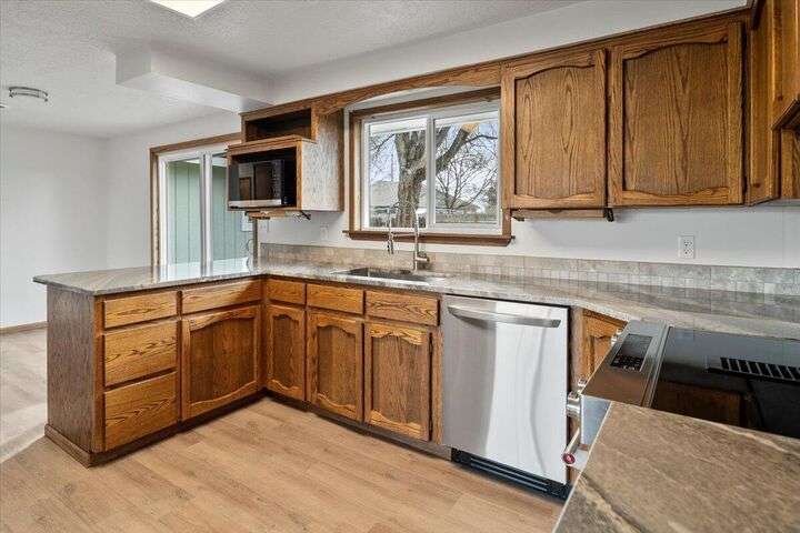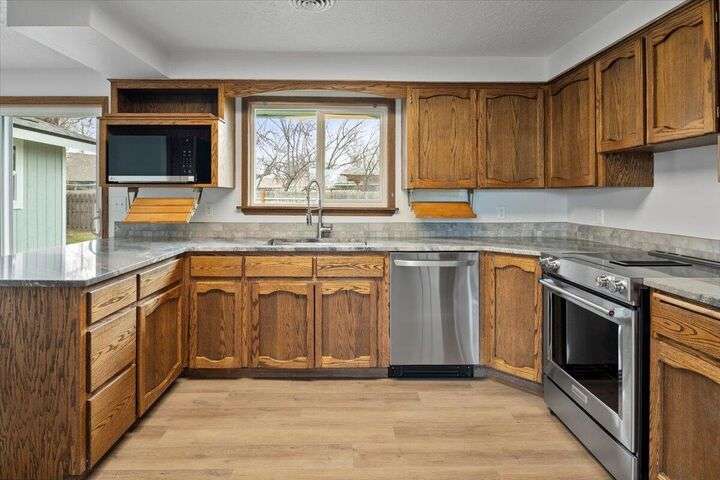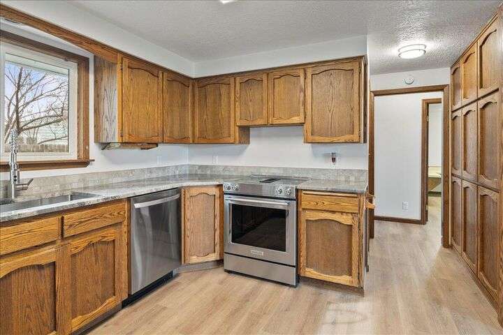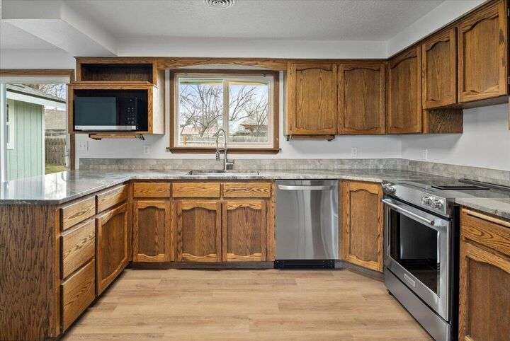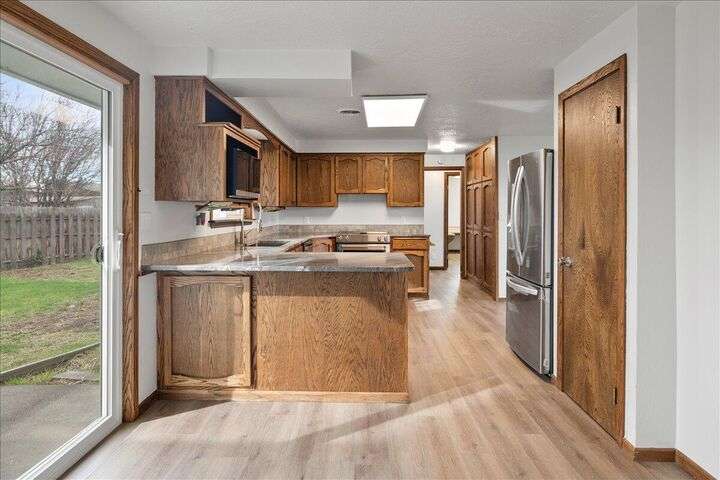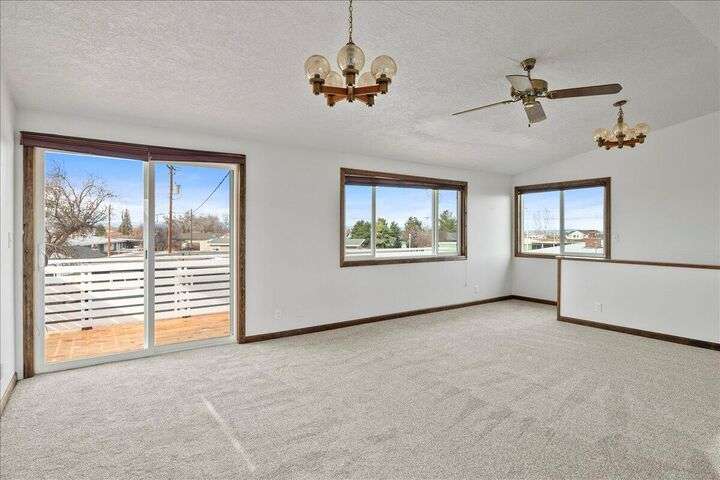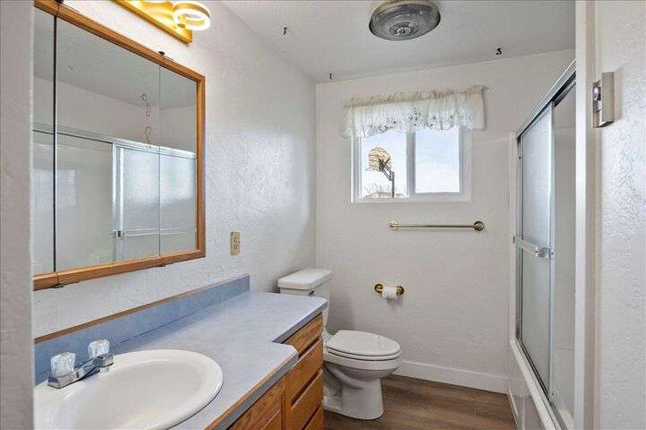 Seller is offering a $15,000 credit toward closing costs or rate buy-down! This updated 4-bedroom, 2-bath home sits on a spacious 1/3-acre lot in a quiet golf course community. Enjoy peaceful Cascade Mountain views from the brand-new upper deck. Inside, the home features new flooring, roof, windows, hot water heater, lighting, and a refreshed kitchen with stainless appliances and Brazilian granite counters. A cozy wood-burning insert warms the living space, and a versatile bonus room is perfect for a home office, gym, or extra living area. The large fenced yard is ideal for relaxing or entertaining, and the SHOP offers great space for hobbies, projects, or storage. Situated on a flag lot, there's plenty of off-street parking with room for your RV and toys. This move-in ready home combines comfort, function, and views—all in a quiet, established neighborhood near golf and more.