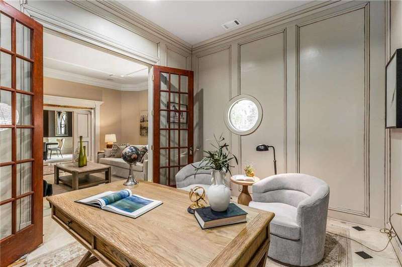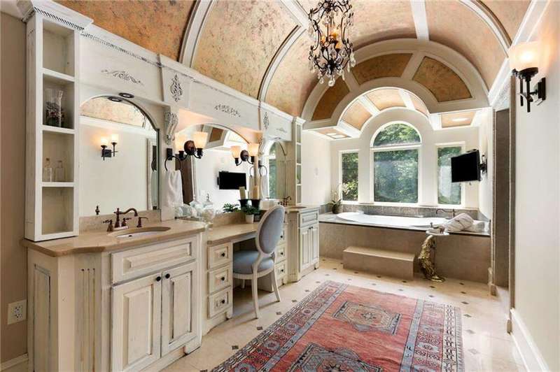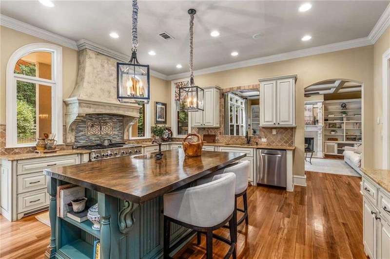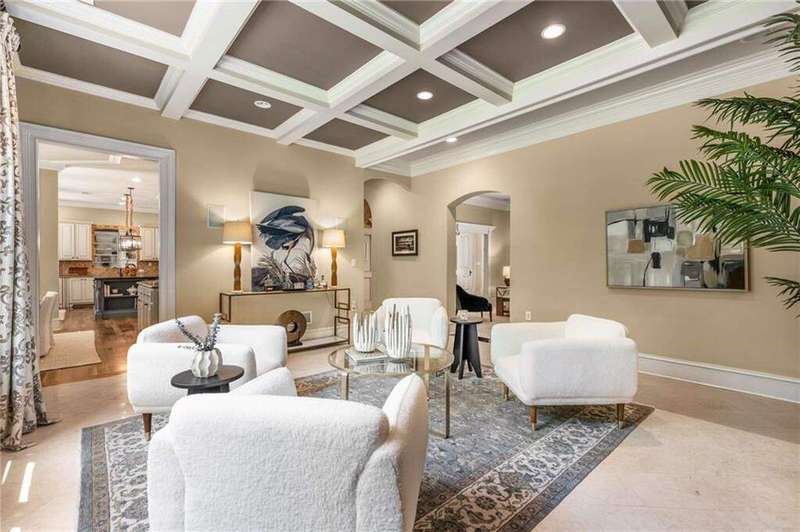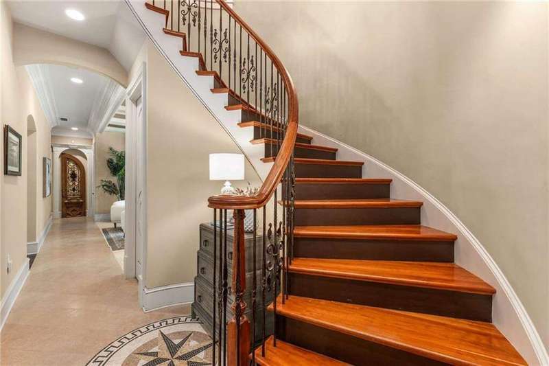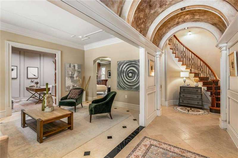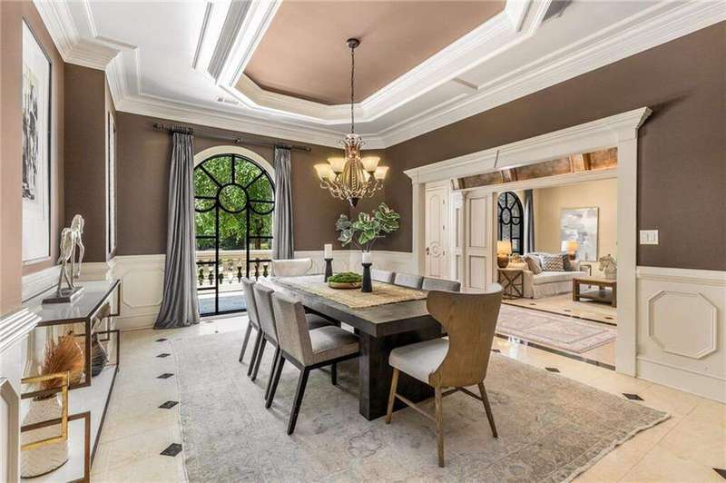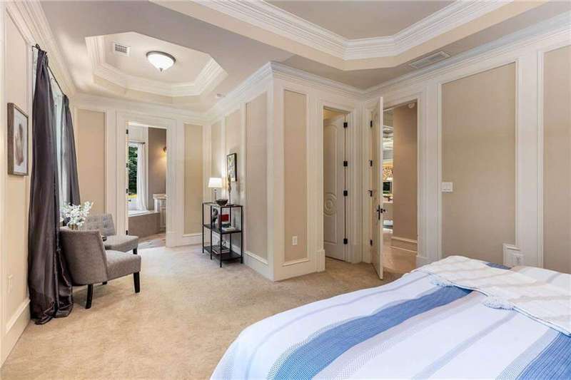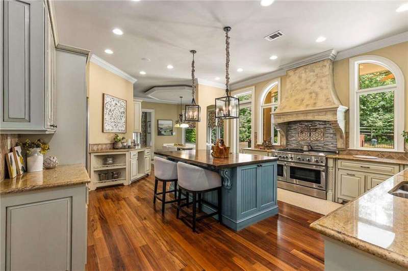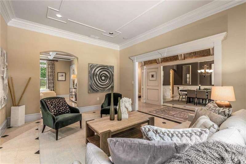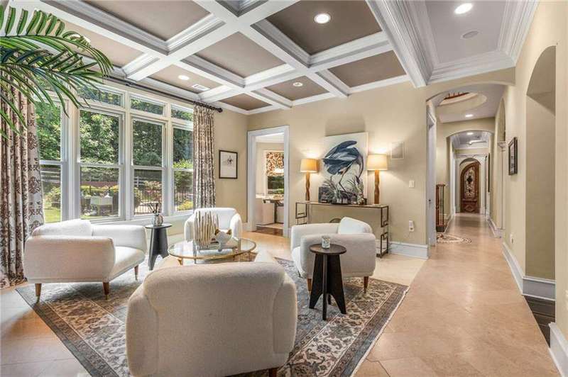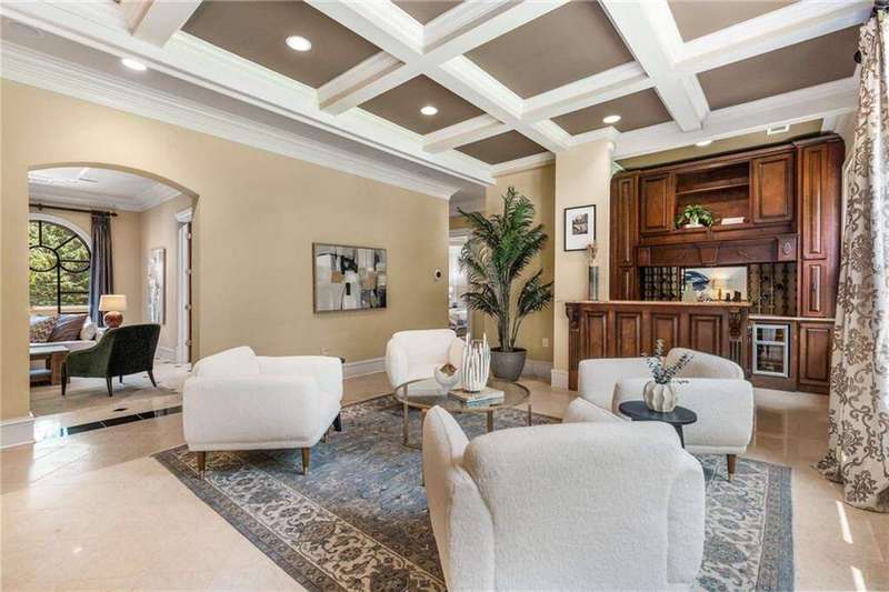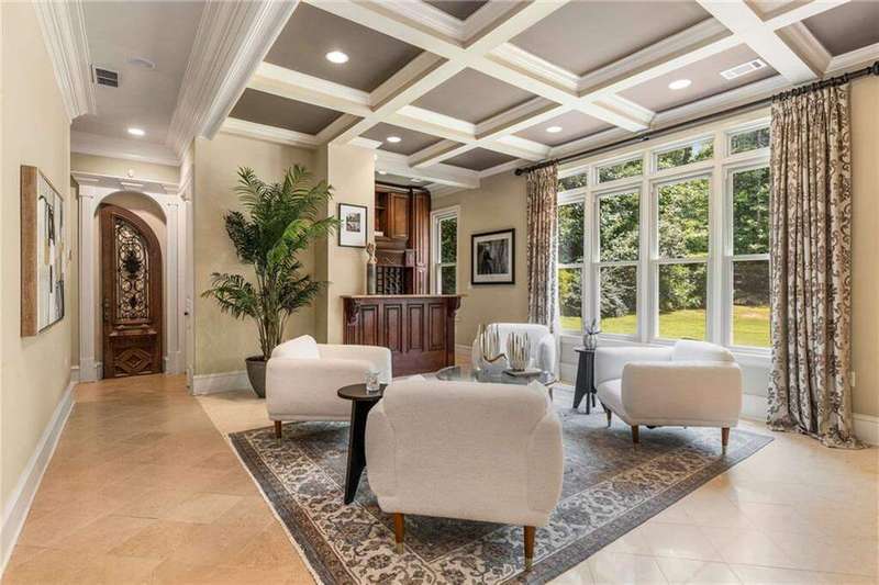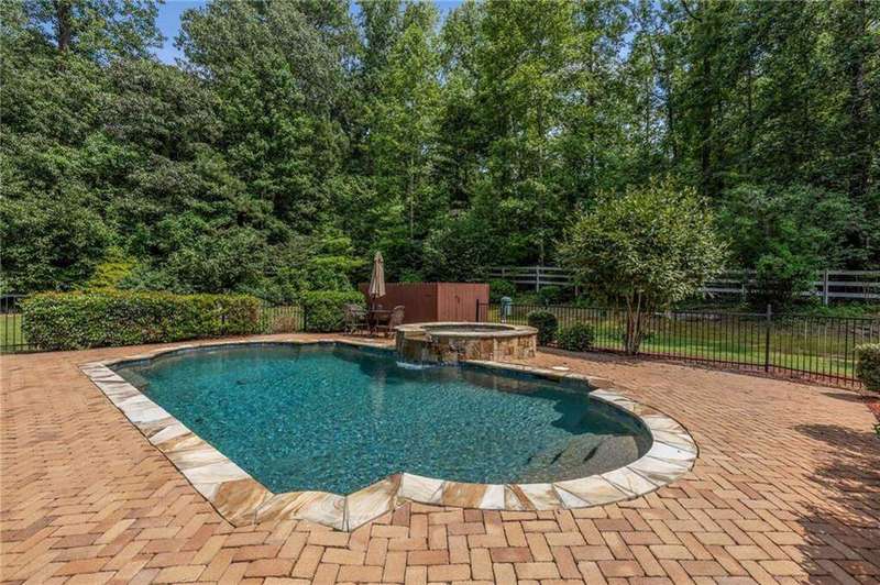 Refined luxury meets resort-style living in this extraordinary 6-bedroom, 5.5-bath European style estate, set on nearly five private acres in the heart of Smyrna. Offering close to 7,000 square feet of beautifully designed living space, this home is the perfect blend of elegance, comfort, and functionality. With a newer roof and a spacious four car garage, the property has been meticulously maintained and thoughtfully upgraded throughout. From the moment you step inside, you're welcomed by a grand chisel stone arch hallway and a dramatic spiral staircase that immediately sets the tone for the craftsmanship and detail that define the home. Imported Italian tile flows underfoot, leading you into the heart of the home a custom-designed chef's kitchen featuring a large island with counter seating, prep sink, custom cabinetry, and stainless steel appliances. The kitchen opens into an inviting informal dining space with a built-in bar, creating an ideal layout for entertaining and everyday living. The main level also features a bright and airy living room filled with natural light, a formal dining room, a cozy great room, a laundry closet, a versatile multi-use room, and a private bedroom with ensuite bath perfectly suited for a nanny suite, in-law suite, or guest accommodations. Movie nights are elevated in the private, theater-style media room, complete with surround sound, a projector, and tiered seating for the ultimate in-home cinema experience. Just beyond the living spaces, step out into your own personal backyard resort. Lush, manicured landscaping surrounds the saltwater pool, jacuzzi, covered outdoor fireplace, firepit, and basketball court offering endless opportunities for relaxation, entertaining, and recreation. Upstairs, the expansive owner's suite is a true sanctuary. Vaulted ceilings and large windows create an open and serene environment, while the luxurious en-suite bath features a soaker tub, walk-in shower, and an oversized custom closet. The suite also includes a fully equipped private gym, providing a convenient and motivating space to stay active without leaving home. Additional highlights include a Control4 whole home audio/video system and integrated smart home technology throughout. Ideally located just minutes from shopping, dining, and major highways, this exceptional estate offers a rare opportunity to own a private retreat in one of Smyrna's most desirable areas. Every detail has been considered this home is truly one of a kind. Situated just minutes from The Battery, Truist Park, Downtown Smyrna, Vinings, and major highways