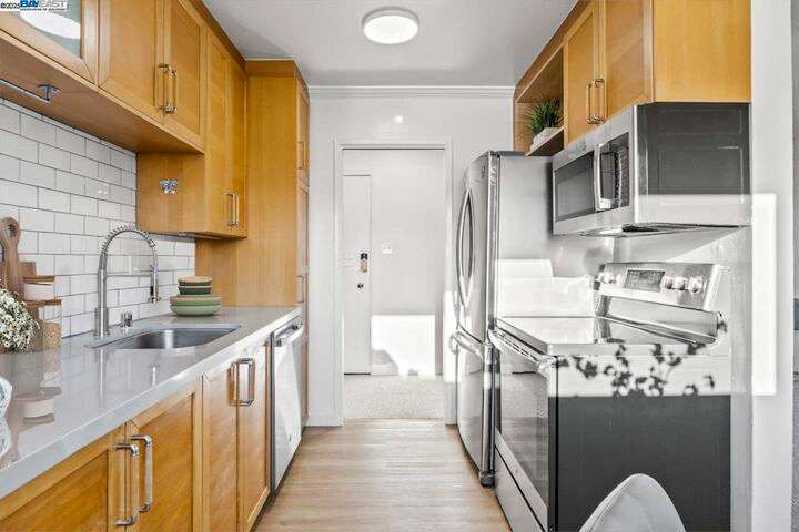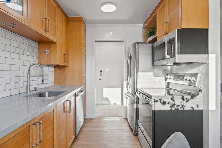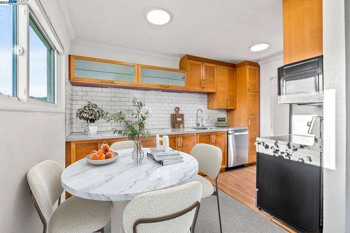 Light-filled corner condo with privacy, updates, and a prime Lake Merritt location. Positioned on the quiet third floor with just one shared wall, this airy 2BD/2BA unit features energy-efficient windows, fresh carpet, modern baths, and an updated kitchen with sleek appliances. Enjoy a private balcony with skyline glimpses and easy access to BART, bike share, and Oakland’s vibrant urban core. Ideal for first-time buyers or investors seeking long-term value.