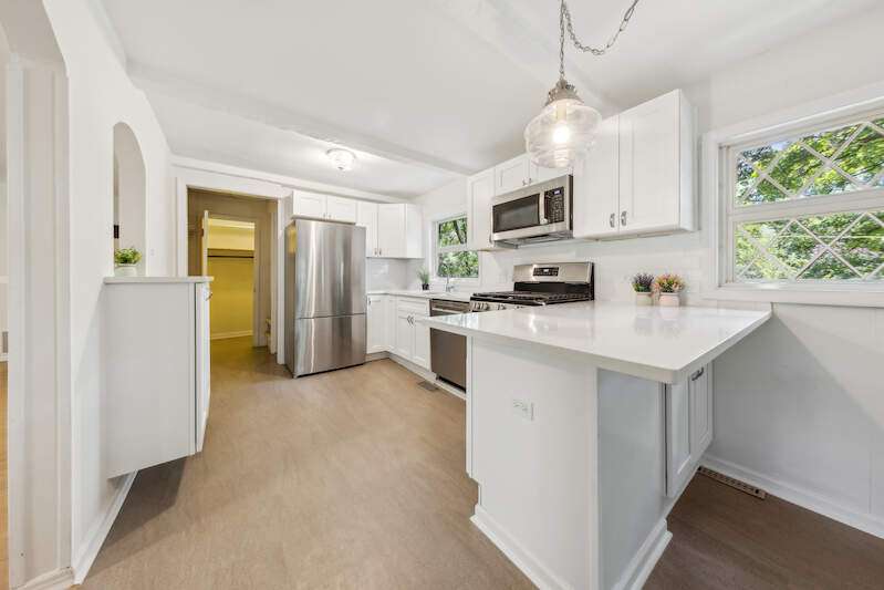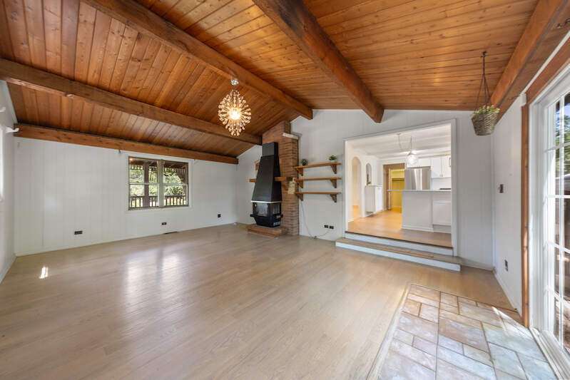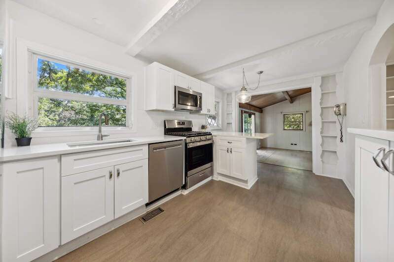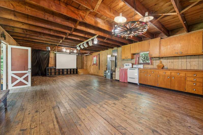 Unique private 1.8 acre property offering a 2-bedroom home, a separate 1-bedroom tiny home, and a huge, finished recreation barn with wood floors, wood stove, and kitchenette. This amazing property allows you to escape to the beauty and tranquility of the country, enjoying nature at its finest! The main residence features a stunning new kitchen with white cabinets, quartz counters, and new appliances. Open to the kitchen you'll find a lovely family room with wood floor and beamed ceiling. Both the main home and tiny home have newer roofs, 2020. A truly stunning private retreat! Offered in " as is " condition.