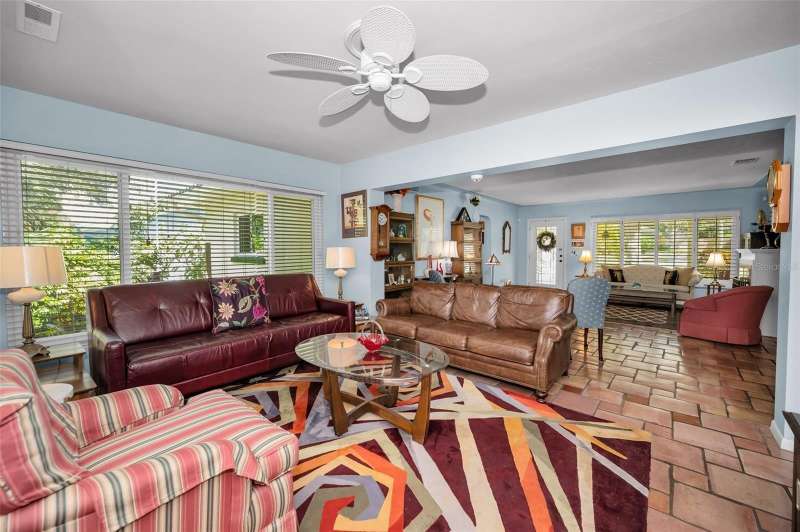 Welcome to Harbor Bluffs, one of Pinellas County’s most coveted subdivisions, where relaxed Florida living meets everyday comfort and family-friendly charm. Just moments away from the sun-drenched, sugary sand shores that embody Florida’s Coastal charm and Florida living! This stunning 3-bedroom, 2-bathroom home with thoughtfully designed living space includes a sun-filled Florida / Family room and an elegant, screened retreat with radiant wood flooring overlooking a scenic backyard escape and an oversized 2 car garage, all blending timeless charm with a modern feel and thoughtful upgrades. This beautifully maintained, Mid-Century modern, Rock-Solid residence with a Barrel Tile Roof, Saltillo tile flooring with sun-baked hues and generous sized bedrooms is designed for easy living and effortless entertaining, with spacious interiors and inviting outdoor spaces that make everyone feel right at home. High and Dry, with No Flood Insurance required, the property remained untouched by recent storm events, offering peace of mind and year-round enjoyment. Inside, natural light fills the bright and airy layout, featuring a timeless split floorplan ideal for families who value both connection and privacy. Enjoy an Efficient galley-style kitchen seamlessly connected to the dining area, sophisticated main bedroom sanctuary with abundant closet space and a beautifully renovated ensuite bath and an expansive living space with electric fireplace designed for both refined entertaining and relaxed daily living. Recent updates—including new windows and doors, New HVAC, Natural Gas throughout, Tankless Water Heater, newer Plumbing and much more! You can move in and start making memories right away! Located in the beloved Harbor Bluffs community, you’ll enjoy mature, tree-lined streets, a private neighborhood park, and quick access to top-rated beaches, shopping, dining, fishing, and nearby cities like Tampa, St. Pete, and Clearwater. This is more than a house, it’s a place to grow, gather, and enjoy the best of Florida living.