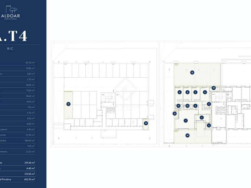 New 4-bedroom apartment, with 432.70 m2 of total private area, of which 219.20 m2 corresponds to the gross habitable area, 4.40 m2 to the balcony area and 213.50 m2 to the terrace area. It has a north/south/west orientation and offers two suites, two bedrooms, five bathrooms in total, equipped kitchen, built-in wardrobes and a closet, central heating, 2 terraces, balcony, 2 parking spaces and storage room. This apartment is located on the ground floor of a new building consisting of ground floor and 5 floors, which has 16 units of types T2, T3 and T4, as well as a garage and storage floor. The building was designed and structured to offer an excellent residential service, meaning that all spaces have good natural lighting, dimensions, coverings, comfort solutions and acoustic, thermal and visual treatment aimed at ensuring greater durability and inalterability.