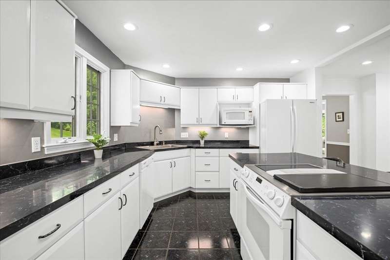 This home exudes warmth and charm making it the perfect place to call home*The sellers are the original owners and have lovingly maintained and upgraded thru-out the years*A sparkling Kitchen w/large island, pantry, recessed lights, and cozy eating nook that flows seamlessly into the fireplaced FamRm w/vaulted ceiling and skylight to add to the airy feel*Access to the patio invites you to relax and entertain in style*The DinRm offers a picture window with stunning views of the beautifully landscaped terraced backyard*LivRm, 5th Bdrm/Office & half bath round out the 1st flr*The 2nd flr offers a generous Primary Suite w/large walk-in closet and bath w/double sinks & shower stall*3 add’l bedrooms are equally spacious and offer double closets*Closets galore thru-out…a rarity in most homes*A walk-up attic w/possible future expansion*Cul-de-sac lot with privacy and an outdoor oasis with hot tub in an enclosed gazebo, gorgeous plantings, irrigation well & sprinkler sys.