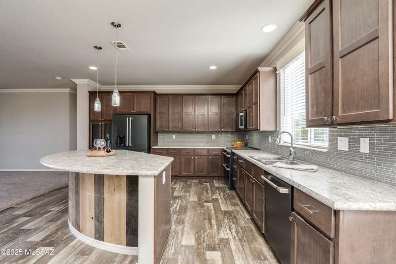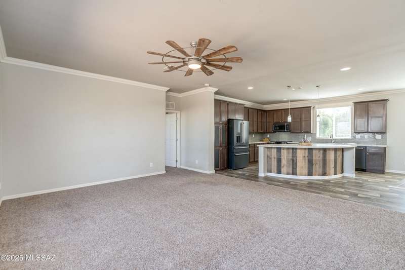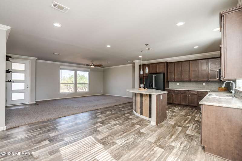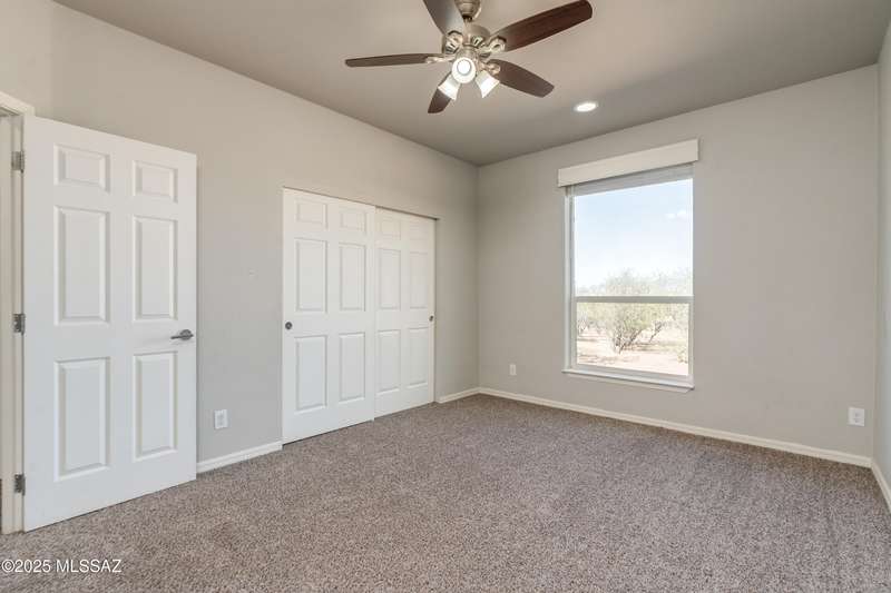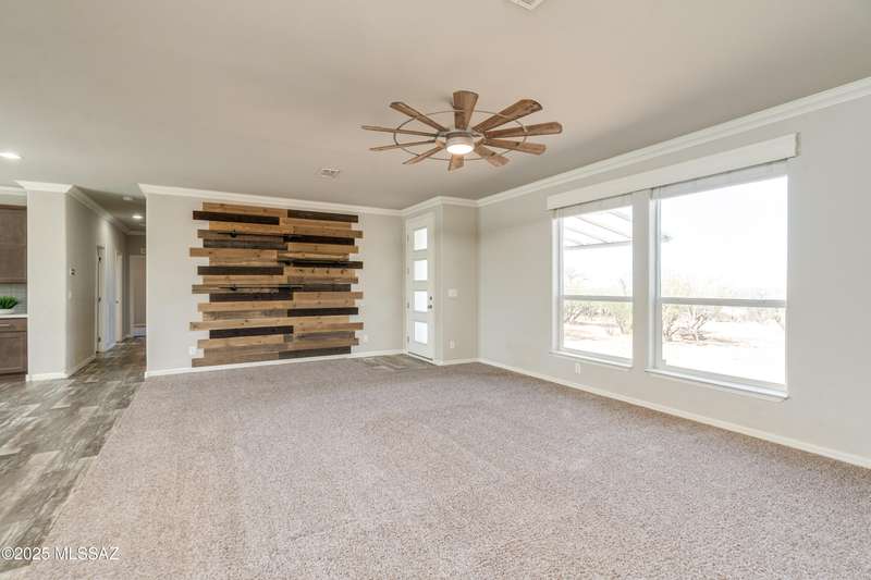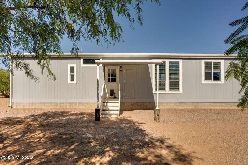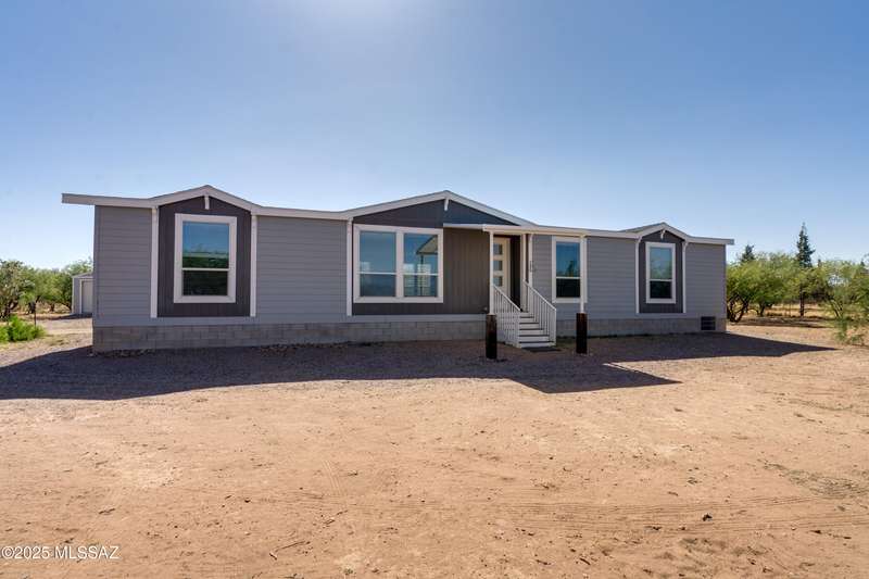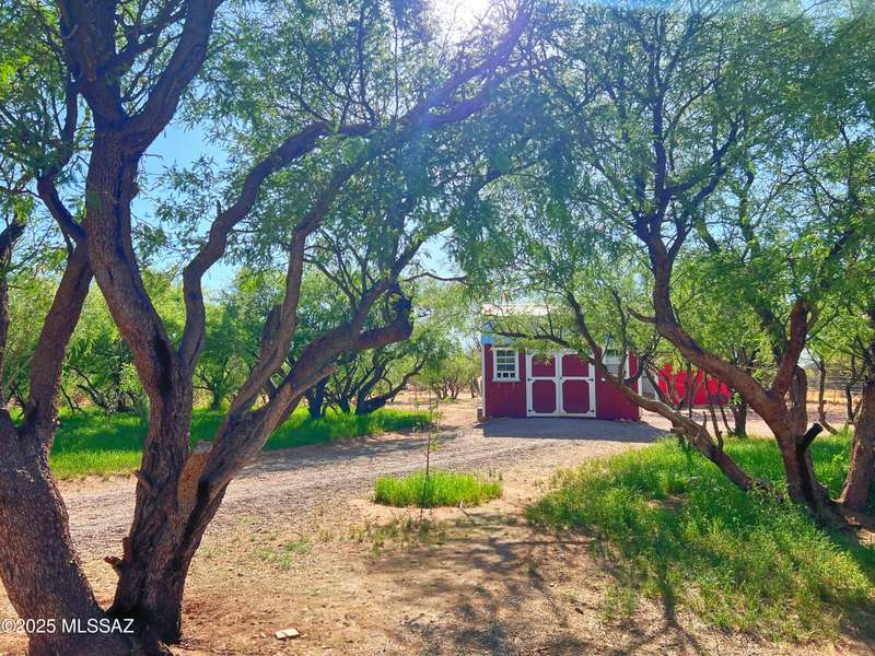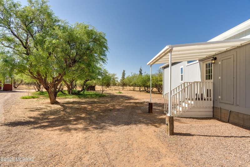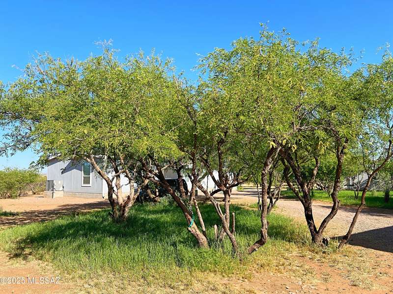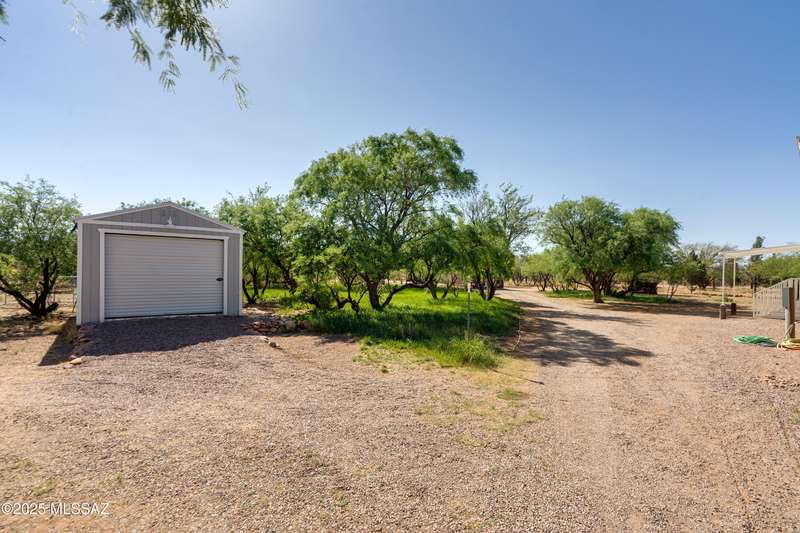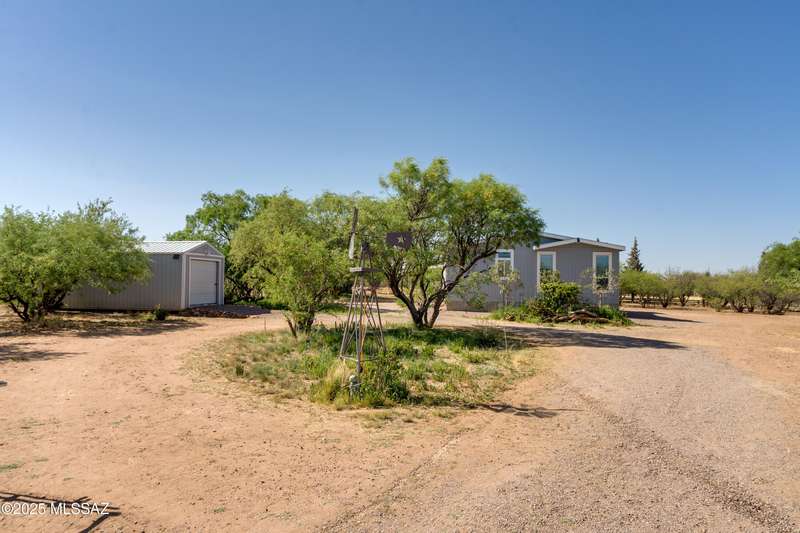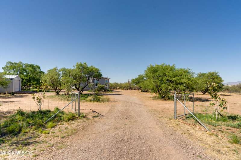14 acre oasis nestled within mesquite trees & 20+ fruit tree orchard. Home boasts w/ upgraded features. First, let's talk about the full set GE Cafe' Smart Appliances including a double oven & warranty thru 1.2029. Additionally there's a standup freezer & separate washer/dryer. Open concept home w/ 9ft ceilings & crown molding. Natural light throughout from 6ft windows w/ cordless blinds. Within the dual gated fenced property is an open barn, detached garage & large lofted shed. Both shed & barn are fully electric & the main panel is upgraded w/ RV capabilities. Private well is equipped w/ an electric/solar pump. The property is horse approved & Loma cert. There's also a fun parkour playground & climbing wall. Last, relax by the fire pit as you unwind w/ the Arizona sunset & mountain view
