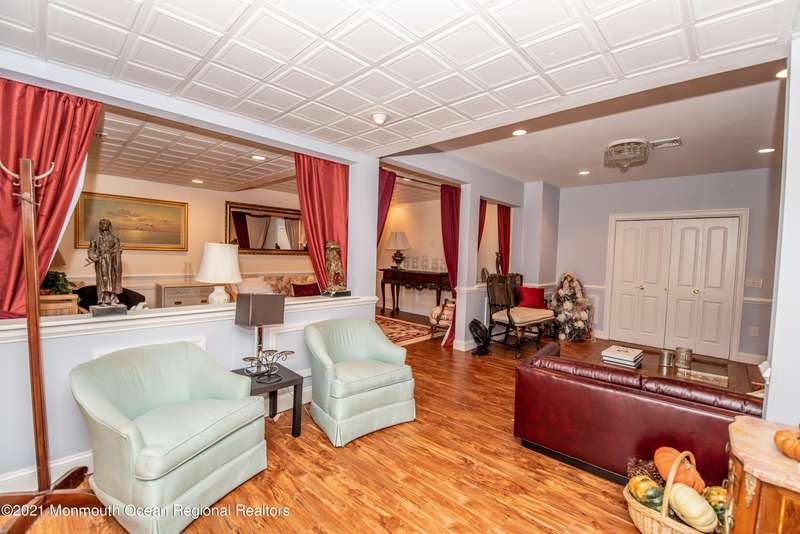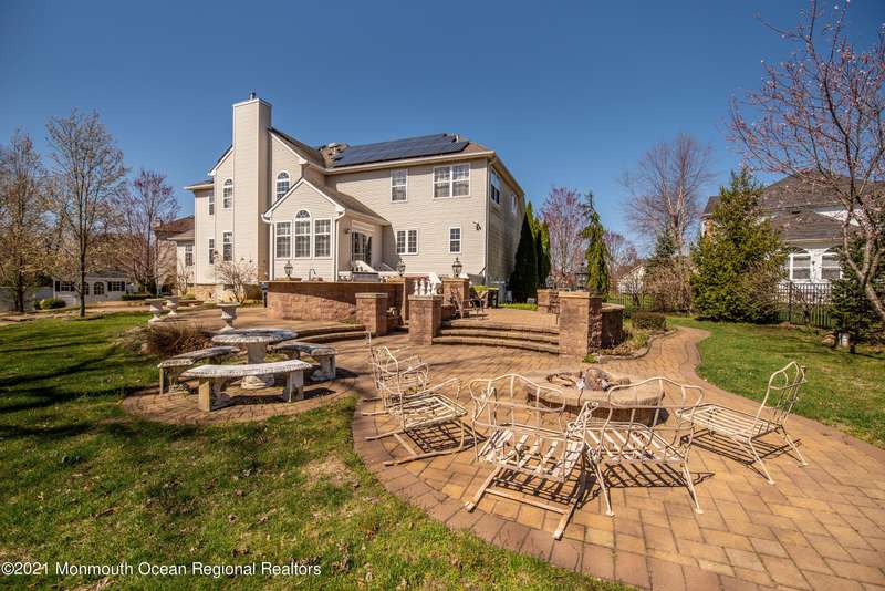 EXCLUSIVE UPSCALE NEIGHBORHOOD - PRESTIGEOUS HAMPTONS @ HERBERTSVILLE. GREAT LOCATION! 2 miles to GSP, 3.5 miles to Brick Hackensack Meridian Hospital and less than a mile from BRICK RESIVOIR. ELEGANT MULTI GENERATIONAL HOME in theThis 4/5-bedroom, 3 full & 2 half bath home offers 5,375 sq ft of finished living space includes a 1,757 sq ft APARTMENT with its OWN ENTRANCE and garden area. Home is exceptional in ENERGY SAVING features - GEOTHERMAL HEATING/COOLING and SOLAR PANELS resulting in LOW UTILITY BILLS. WHOLE HOUSE GENERATOR, IRRIGATION WELL and UPGRADED ELECTRICAL SYSTEM. Spacious 1/2-acre FENCED YARD features SEVERAL PAVER DINING PATIO AREAS, OUTDOOR KITCHEN and FIRE PIT, located on a PRIME CUL DE SAC LOT offers lots of privacy IN YARD WITH LUSH MATURE LANDSCAPING. A MUST SEE!!!