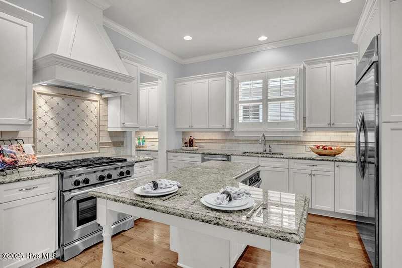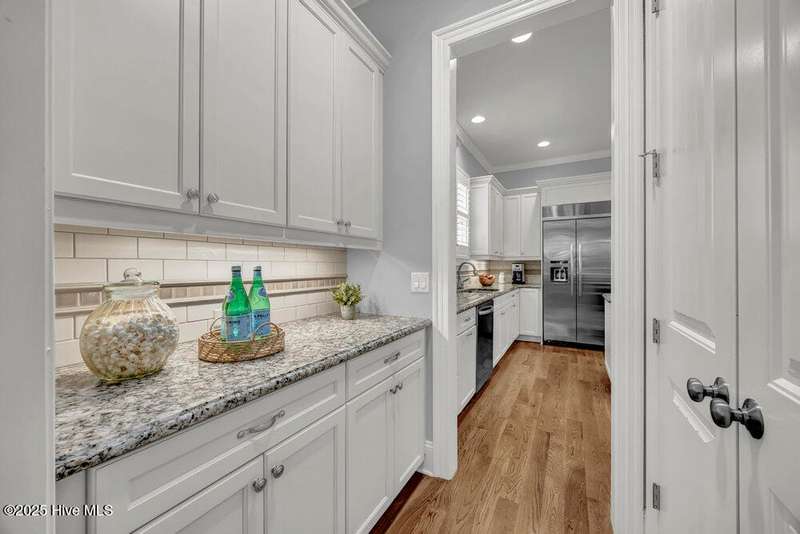 SELLER OFFERING $10K BUYER ''USE AS YOU CHOOSE'' CREDIT WITH ACCEPTABLE OFFER Tucked away on a serene, tree-lined street, this beautifully crafted cottage blends timeless charm with modern comfort. A covered rocking chair porch welcomes you home, opening into a warm, inviting foyer that sets the tone for this thoughtfully designed retreat. Enjoy formal dining or gather with ease in the casual open-concept kitchen and living area. The gourmet kitchen is a chef's dream with granite countertops, a natural gas range/oven, decorative tile backsplash and vent hood, center island, abundant cabinetry, a butler's pantry, and included refrigerator. The living area glows with natural light, highlighted by hardwood floors, a coffered ceiling, gas log fireplace, and custom built-insseamlessly flowing into a heated and cooled sunroom with views of the tranquil backyard. downstairs primary suite offers a peaceful escape with a cozy window seat, spa-inspired bath featuring a garden tub, tile shower, and spacious customized walk-in closet. Upstairs, two additional bedrooms share a Jack & Jill bath, and a finished bonus room over the garage offers flexible space with a private rear stair entry. Additional highlights include: Walk-in floored attic, built-in drop zone, Rear-entry two-car garage via alley access, relaxing backyard with a stacked stone fireplace & patio, Encapsulated crawlspace for efficiency and peace of mind all located just steps from community amenities like a pool, playground, fireplace gathering area, and Arbor Park. With sidewalks and quick access to the Cross City Trail, you're only minutes from Mayfaire Town Center, Wrightsville Beach, and a vibrant local dining scene 2-10 home warranty is being offered for buyer peace of mind