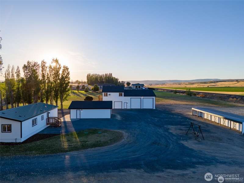 This fully updated 3 bedroom 2 bath one level home of 4 irrigated acres is the perfect hobby farm waiting! This home boast a large primary suite an open floor plan, quartz counters and new SS appliances. The home has a detached 2 car garage. The 40x60 shop offers 4 overhead doors-2 RV, 240 power, full RV hookups, heated floors, wall heaters, and 1/2 bath. Above the shop is a fully updated 2 bedroom 1 bath apartment that is light and bright with new appliances! A 72x17 horse barn with 4 stalls and a tack/feed room awaits. The barn can have turnouts on the back side with room for an arena and irrigated pasture. This property is fully fenced and has gaited entry. Conveniently located and minutes from Soap Lake. Welcome Home!