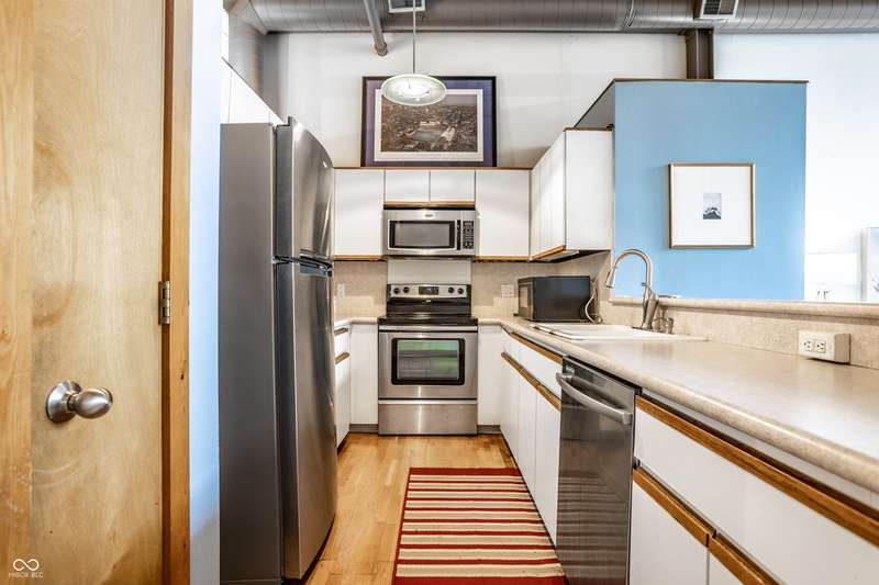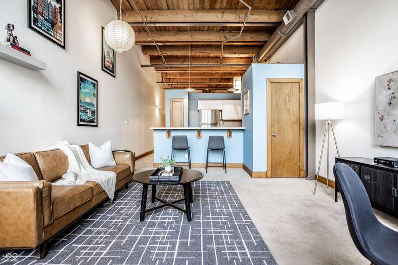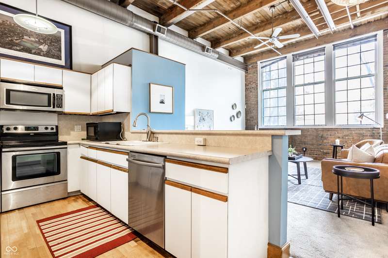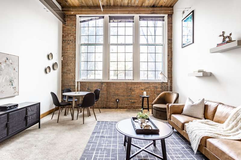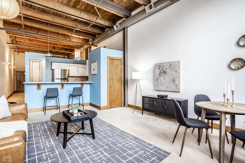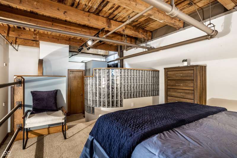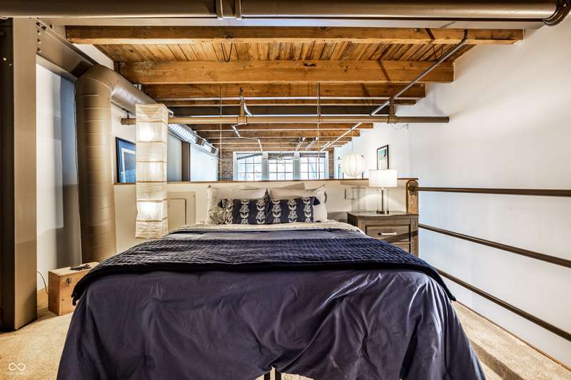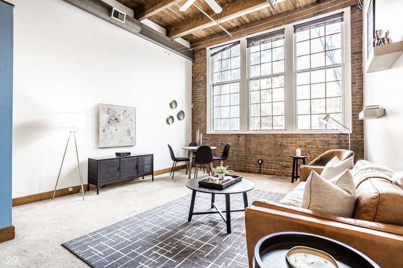 Ideal location in the heart of Fletcher Place! Experience urban elegance in this fantastic city loft-style condo. With exposed brick, soaring ceilings, and original ironwork, this home boasts a chic, open layout that exudes modern charm. The loft bedroom offers a spacious bathroom complete with a jetted tub, glass block accents, and a separate shower. The entry features ceramic tile, while the kitchen showcases beautiful hardwood floors. Enjoy an open floor-plan fantastic for hosting and entertaining guests. The detached garage is conveniently located near the front door. Community shared outdoor roof areas are great to enjoy for personal use as well. Welcome home to this move-in ready Unit #8.