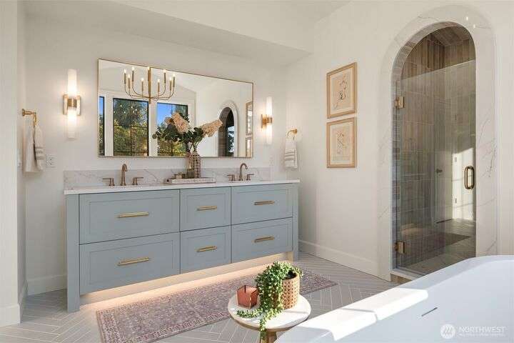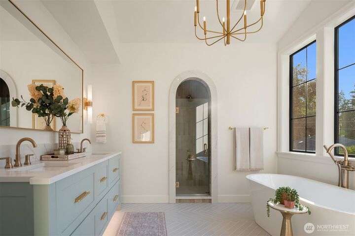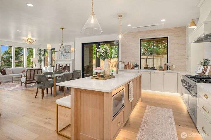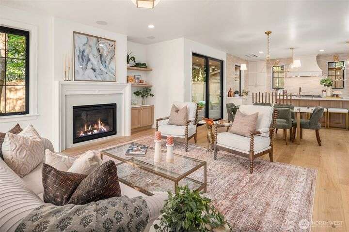 NEW MUST-SEE W of Market Charmer just steps from Juanita Bay Park & Boardwalk. Granger & Company delivers luxuriously curated style & comfort in this one-of-a-kind 5bd/3.5ba masterpiece. Captivating foyer with heated floor welcomes you into the great room w stunning & cozy gas fireplace. Exquisite gourmet kitchen loaded w quartz counters, Belmont cabinets, top-of-the-line appliances, & butler's pantry. Sliding doors open to heated covered patio, enchanting garden & fully fenced yard. Upper floor offers 4 spacious bedrooms & laundry rm. Breathtaking Primary Suite boasts private balcony, fabulous walk-in, and lavish en suite bath with heated floors, soaking tub & architecturally enclosed shower. 2 car garage w EC charging & custom wood door.