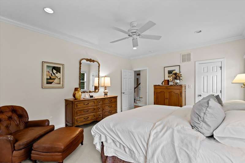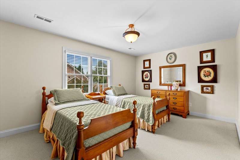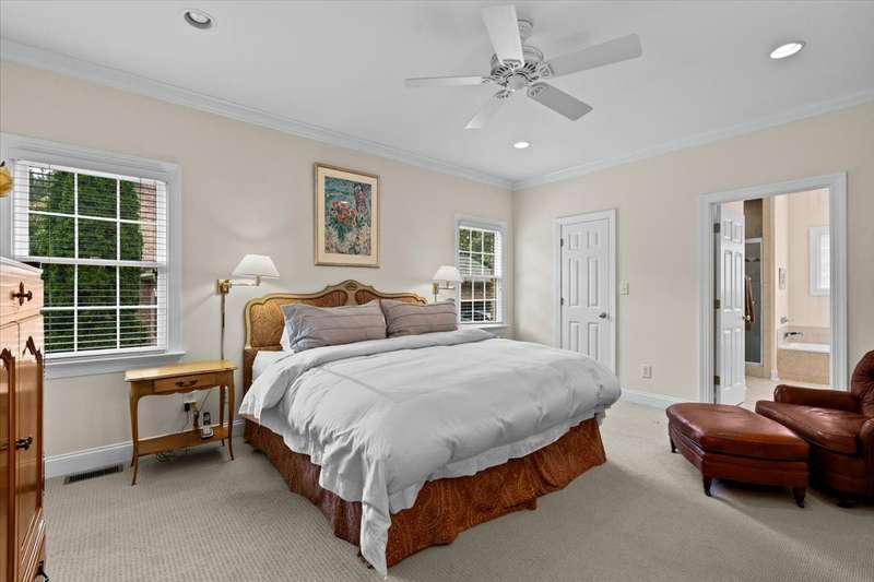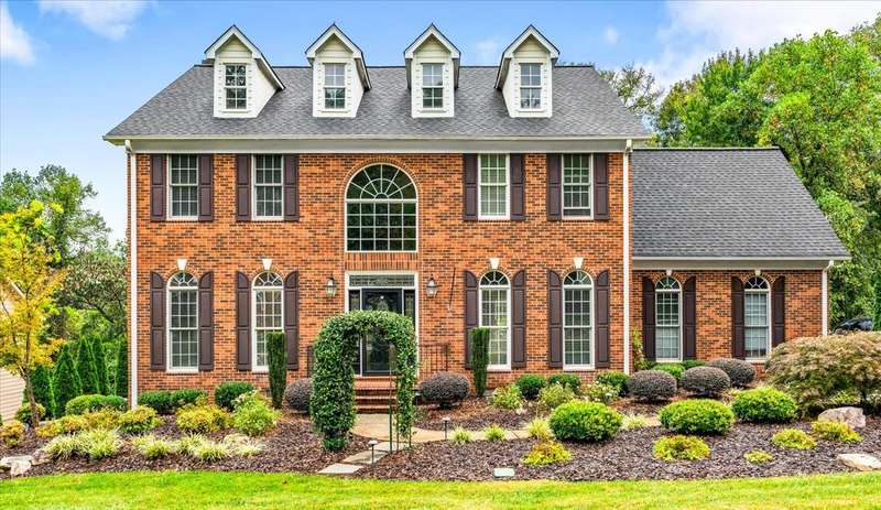 This is the one you've been waiting to hit the market; super location plus impeccably maintained by original owner! All-brick home offers elegance, modern convenience & on culdesac street. Much of main level boasts beautiful hardwood floors. Well-appointed kitchen w/center island, stainless gas range, wine rack, ample storage & breakfast area. Spacious living room opens to private brick patio ready for morning coffee or evening cookouts. Den has gas log fireplace with built-ins on each side also perfect for private office. There are primary suites on both levels, each with en-suite baths, ML w/2 large walk-ins. Two other large bedrooms upstairs share jack & jill bath. Laundry with utility sink, two-car side-load garage, freshly painted exterior trim, irrigation system plus SO conveniently located to Shoppes at Friendly Center, airport & numerous major roadways too. This home is a rare find!!