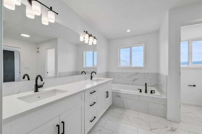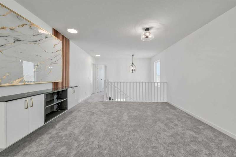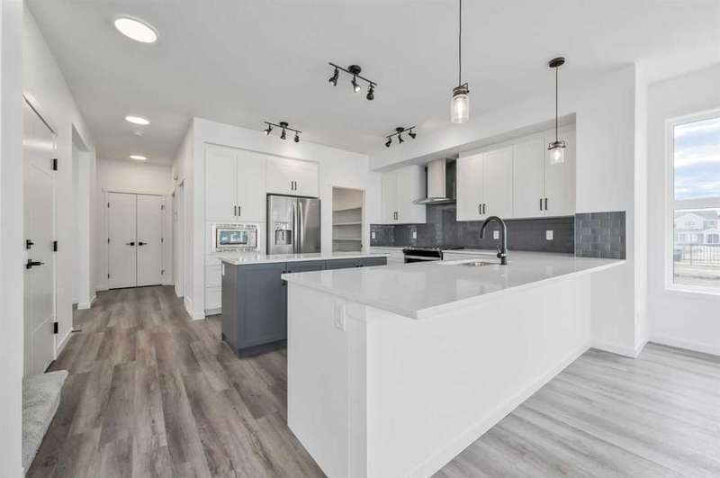 Welcome to our Brand New Two-Story Home in Mahogany, one of the most desirable Communities of Calgary. This 4 bedroom home on a Traditional lot with additional 2 bedroom legal suite is a meticulously designed residence presents a thoughtfully planned layout with three bedrooms, three full bathrooms, and a den on the main floor that can serve as an additional bedroom if desired. As you step into the home, you'll be greeted by an open-to-below main entrance, complemented by high ceilings, gorgeous hardwood flooring, and abundant natural light. The kitchen is a chef's dream, adorned with stainless steel KitchenAid appliances and sleek quartz countertops. The main floor boasts 9-foot ceilings, a generously sized living area, a separate dining space, and a gas fireplace with tiles reaching the ceiling. Completing the main level is a , perfect for a gourmet kitchen that will inspire your culinary creations. Moving upstairs, you'll discover a luxurious master bedroom featuring a large walk-in closet and an ensuite bathroom with a lavish soaking tub. The upgraded laundry room adds convenience to your daily routine, while two additional bedrooms and another full bathroom provide ample space for family members or guests. The basement has 9 foot ceiling 2 bedrooms, washroom and kitchen with a side entrance. 2 Bedroom legal suit makes it an extra ordinary home. Beyond the home's captivating features, its location is truly unbeatable. Just minutes away, you'll find essential amenities such as a picturesque lake, schools, a sandy beach, a recreational center, walking and bike trails, shopping destinations, delectable dining options, and much more. Don't miss out on this extraordinary home. Call today for more information and take the first step towards making it yours.