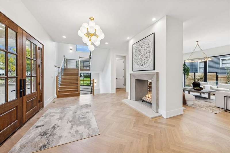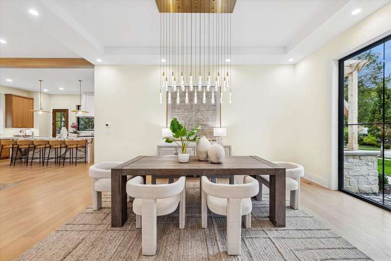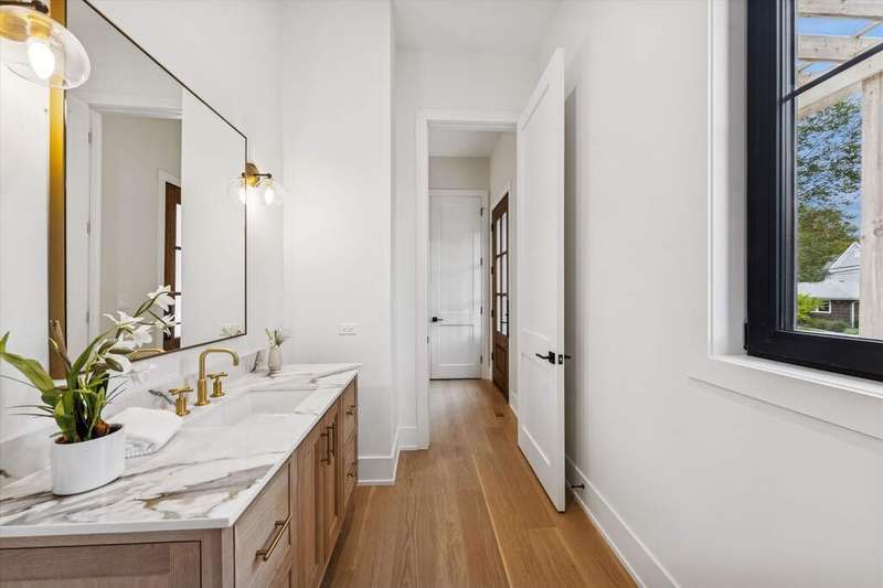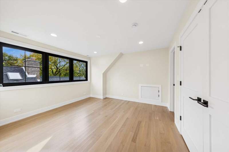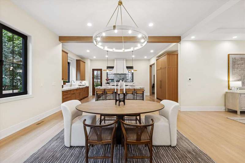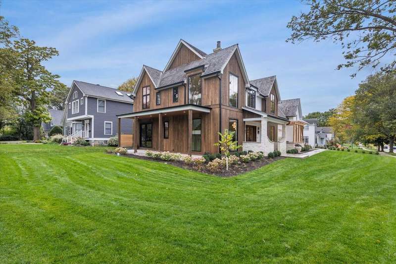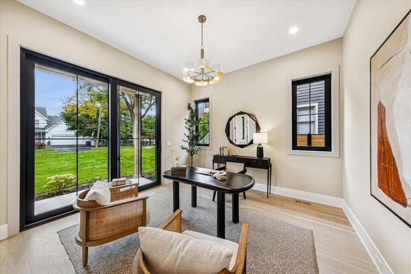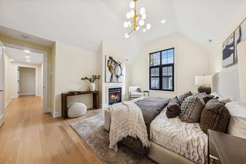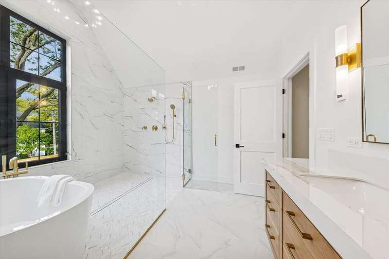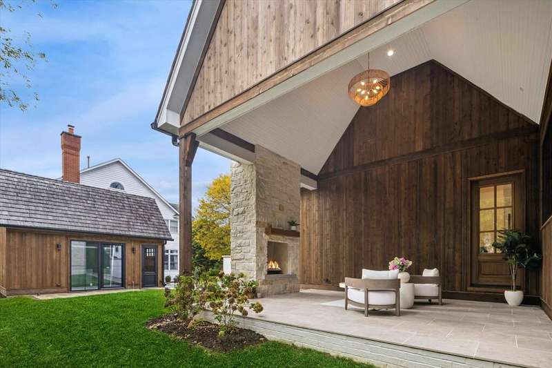 Designed by Richard Olsen of G.O. Architectural Design and Loch Alainn Construction LLC, this newly constructed 7-bedroom, 7.5-bath residence embodies the charm of a Belgian-style farmhouse with the refinement of modern luxury living, exuding timeless sophistication. Natural materials, warm wood tones, and crisp white brick create a striking exterior that welcomes you into a home designed for both beauty and function. Step inside the double-wide front door, to your Grand Foyer which sets the tone for the entire home; showcasing Chevron White Oak hardwood flooring, 12-foot ceilings, and a limestone double-sided fireplace. The open floor plan seamlessly connects the well-appointed kitchen, expansive great room, and elegant dining areas - all perfect for entertaining. Floor to ceiling windows drench the home with sunlight. A first-floor in-law suite offers convenience and privacy, providing comfort and style for family and guests alike. The gourmet kitchen is a true work of art, featuring a 10 ft. waterfall edge island, custom range hood designed in a picture like setting in front of the windows, to maximize the natural light. Subzero Refrigerator and Freezer, additional refrigerator and freezer drawers, Bosch dishwasher, Wolf double oven range. The Scullery pantry includes additional food storage, dishwasher and prep space - the perfect addition for entertaining guests. Escape to your primary bedroom retreat, with cathedral ceilings, fireplace, spa like bathroom with heated floors, wet room with Kohler shower and soaking tub. All second floor bedrooms are en-suite, and the third floor bedroom suite is perfect sanctuary for guests or an au pair. Retreat to the lower level, where a fully finished basement features a state-of-the-art Media room, 7th bedroom or fitness room, and full bath. Ample recreation space allows for a custom wet bar, with quartz counters, refrigerator and freezer drawers, and game area. Outdoor living is equally impressive - a covered terrace with a stone gas fireplace invites gatherings year-round, framed by lush landscaping and architectural detailing that elevates the home's European-inspired design. Every inch of this exceptional home showcases meticulous craftsmanship, curated finishes, and a serene sense of balance - a rare blend of rustic charm and modern sophistication in one of Hinsdale's most coveted settings.