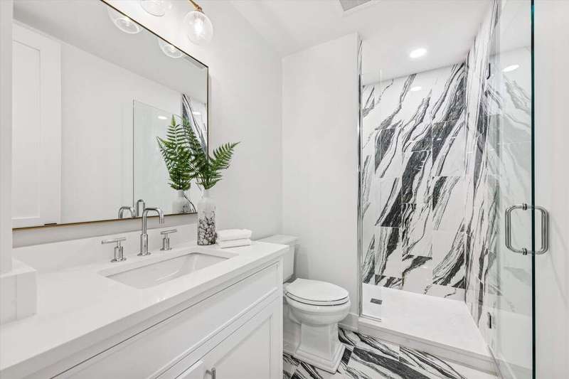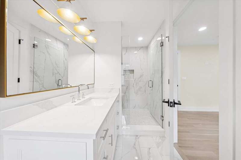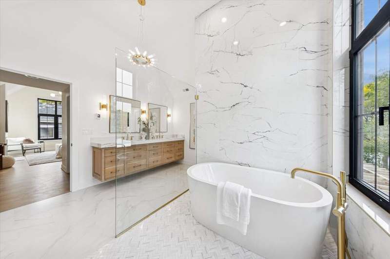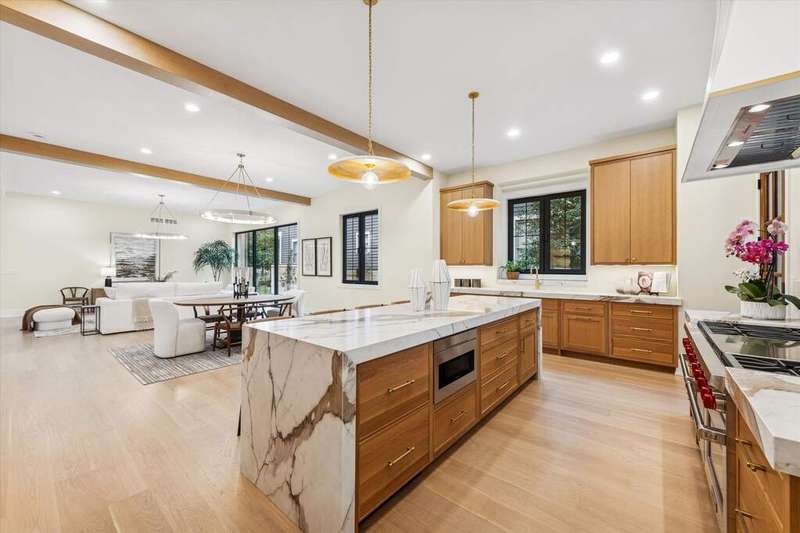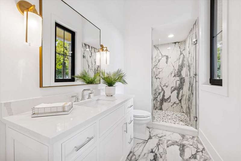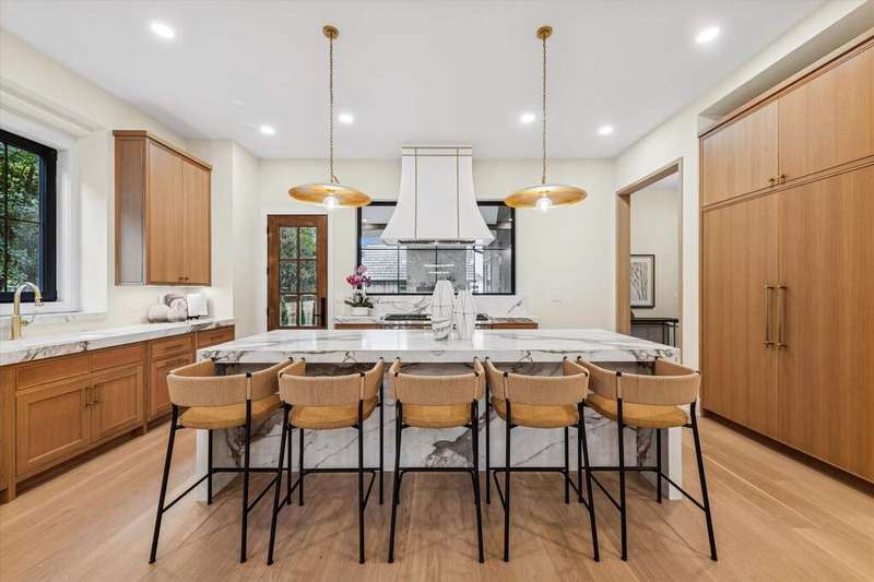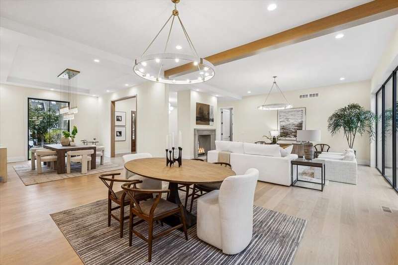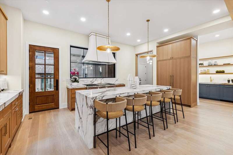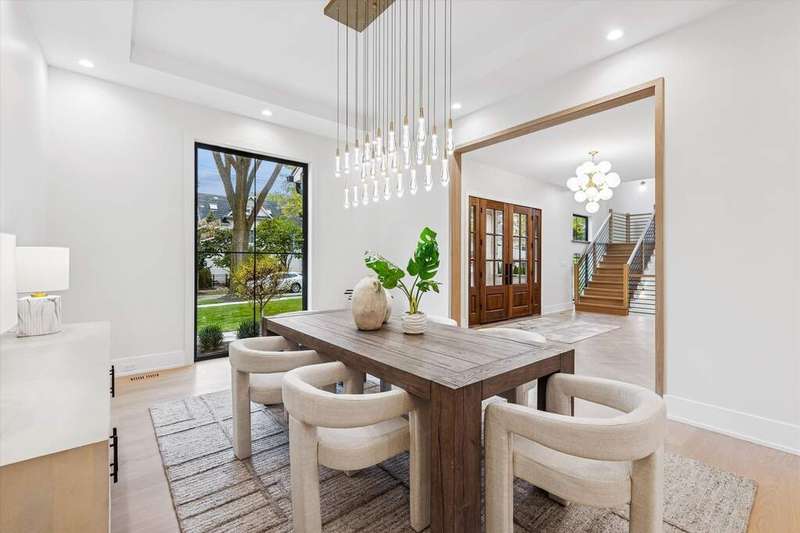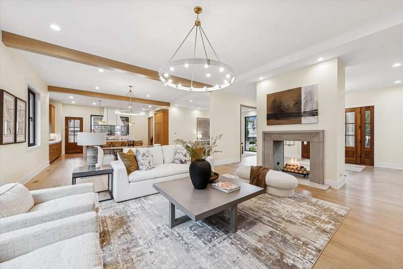 Designed by Richard Olsen of G.O. Architectural Design and Loch Alainn Construction LLC, this newly constructed 7-bedroom, 7.5-bath residence embodies the charm of a Belgian-style farmhouse with the refinement of modern luxury living, exuding timeless sophistication. Natural materials, warm wood tones, and crisp white brick create a striking exterior that welcomes you into a home designed for both beauty and function. Step inside the double-wide front door, to your Grand Foyer which sets the tone for the entire home; showcasing Chevron White Oak hardwood flooring, 12-foot ceilings, and a limestone double-sided fireplace. The open floor plan seamlessly connects the well-appointed kitchen, expansive great room, and elegant dining areas - all perfect for entertaining. Floor to ceiling windows drench the home with sunlight. A first-floor in-law suite offers convenience and privacy, providing comfort and style for family and guests alike. The gourmet kitchen is a true work of art, featuring a 10 ft. waterfall edge island, custom range hood designed in a picture like setting in front of the windows, to maximize the natural light. Subzero Refrigerator and Freezer, additional refrigerator and freezer drawers, Bosch dishwasher, Wolf double oven range. The Scullery pantry includes additional food storage, dishwasher and prep space - the perfect addition for entertaining guests. Escape to your primary bedroom retreat, with cathedral ceilings, fireplace, spa like bathroom with heated floors, wet room with Kohler shower and soaking tub. All second floor bedrooms are en-suite, and the third floor bedroom suite is perfect sanctuary for guests or an au pair. Retreat to the lower level, where a fully finished basement features a state-of-the-art Media room, 7th bedroom or fitness room, and full bath. Ample recreation space allows for a custom wet bar, with quartz counters, refrigerator and freezer drawers, and game area. Outdoor living is equally impressive - a covered terrace with a stone gas fireplace invites gatherings year-round, framed by lush landscaping and architectural detailing that elevates the home's European-inspired design. Every inch of this exceptional home showcases meticulous craftsmanship, curated finishes, and a serene sense of balance - a rare blend of rustic charm and modern sophistication in one of Hinsdale's most coveted settings.