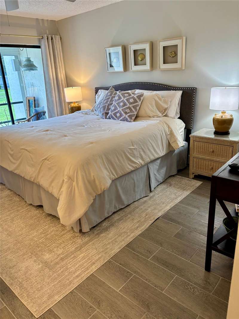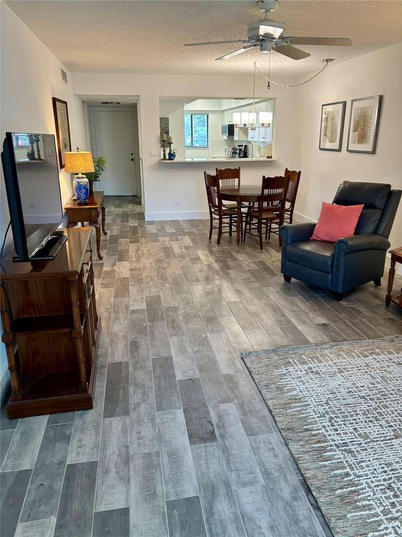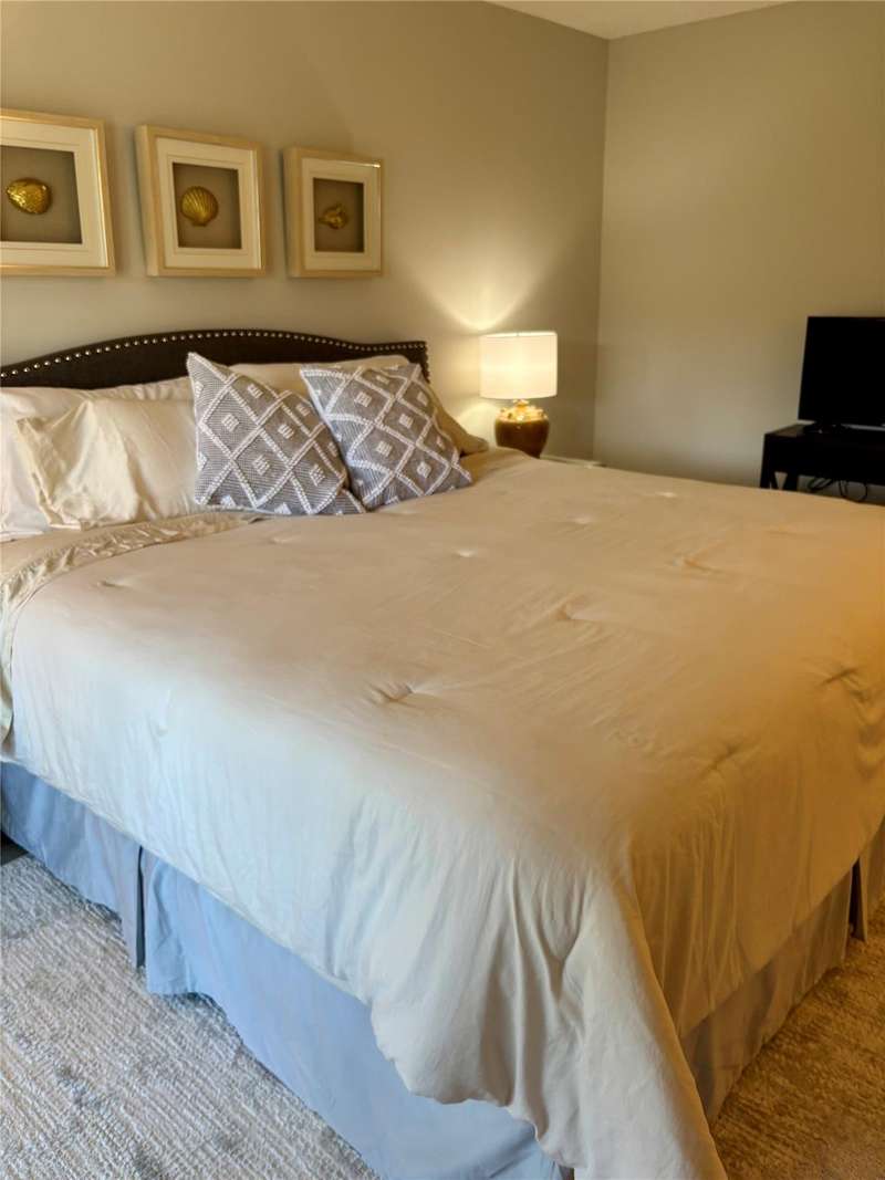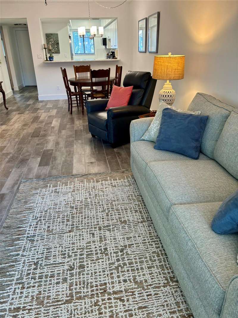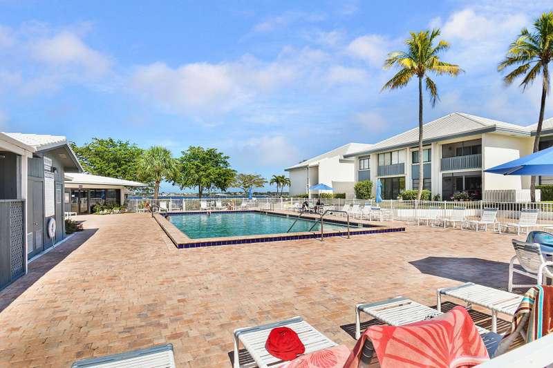 Newly renovated and extra large 1 bedroom and 1 and 1/2 baths. Fully furnished and move in ready. New king size bed in primary bedroom and new convertible sofa in living room. New kitchen cabinets, countertops and appliances. New Windows being installed currently. Tile floors throughout. Private patio with water views on the pond with water feature that lights up at night. 2 pools, Club house, BBQ, Dock, River front community. Centrally located near shopping, beaches, bridges, restaurants and more. Over 55 community, no pets or motorcycles. Trucks allowed! Must see!