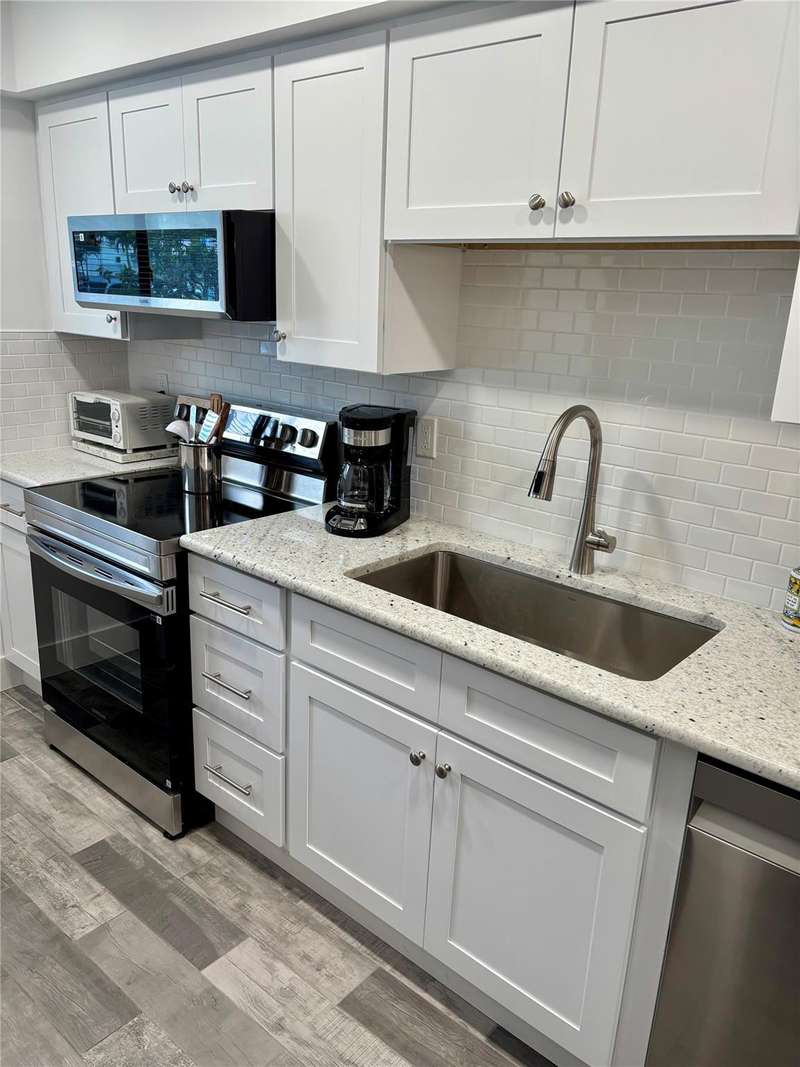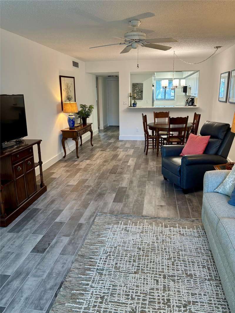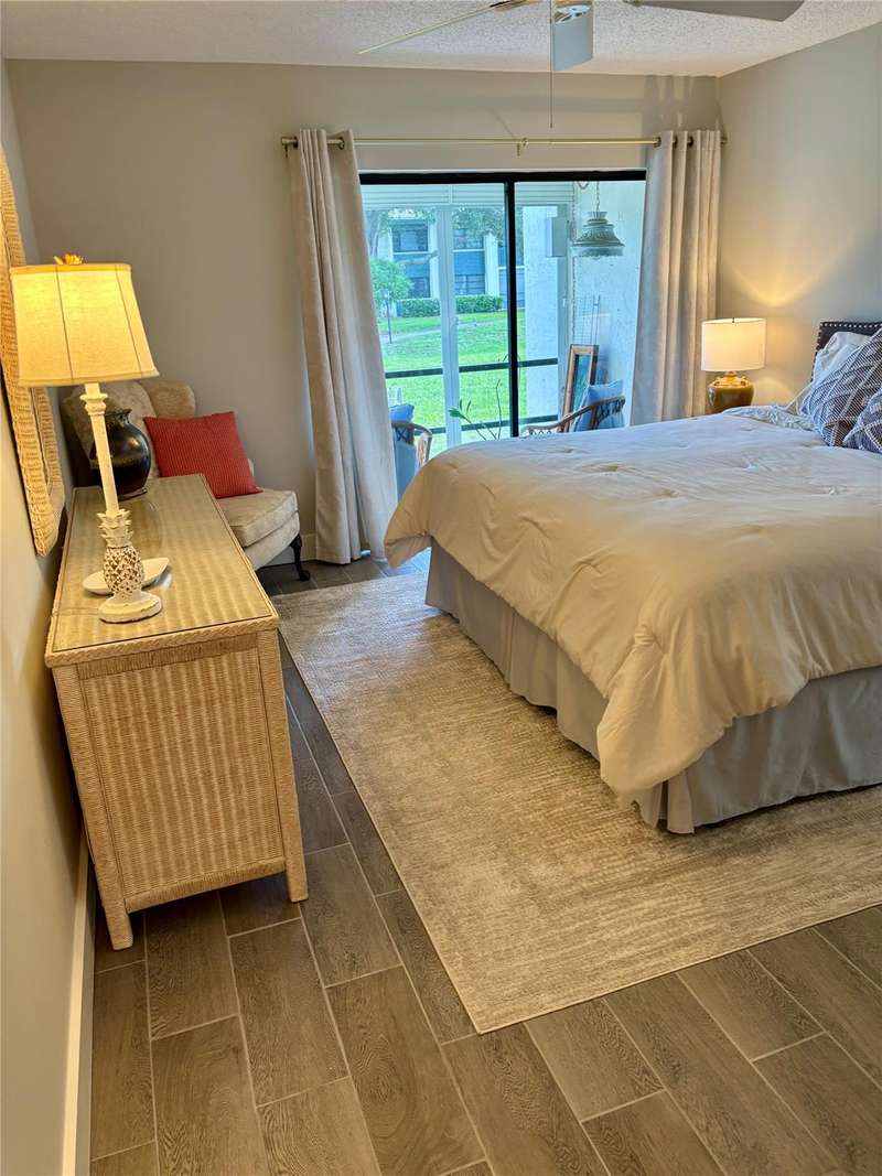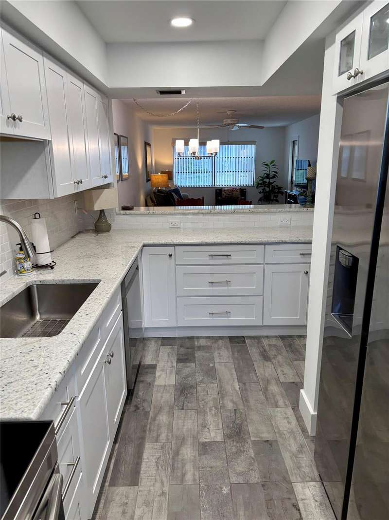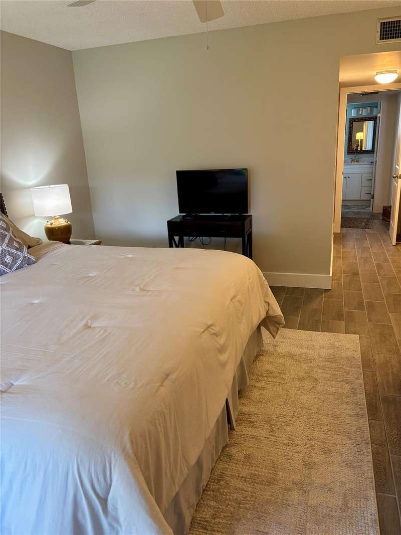 Newly renovated and extra large 1 bedroom and 1 and 1/2 baths. Fully furnished and move in ready. New king size bed in primary bedroom and new convertible sofa in living room. New kitchen cabinets, countertops and appliances. New Windows being installed currently. Tile floors throughout. Private patio with water views on the pond with water feature that lights up at night. 2 pools, Club house, BBQ, Dock, River front community. Centrally located near shopping, beaches, bridges, restaurants and more. Over 55 community, no pets or motorcycles. Trucks allowed! Must see!
