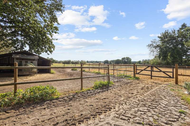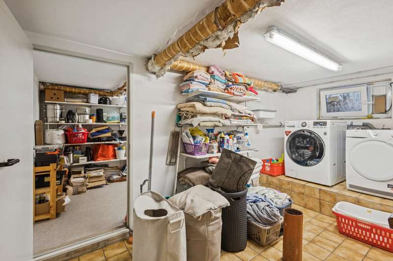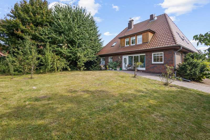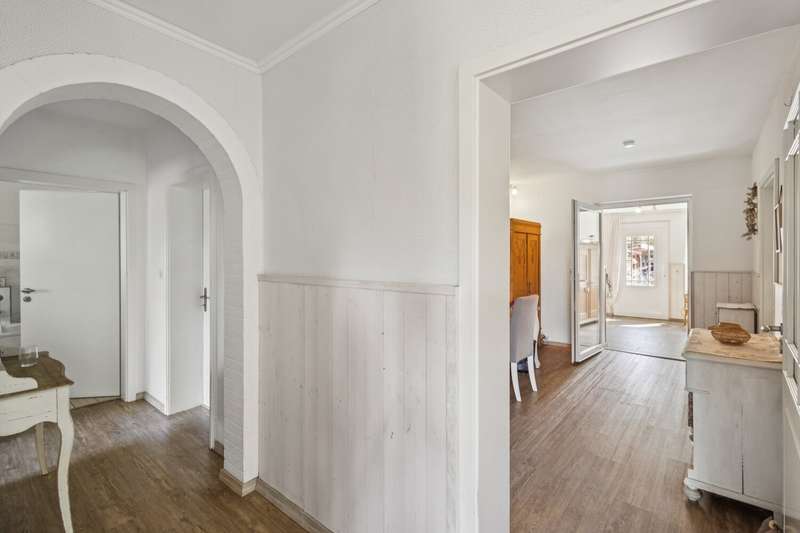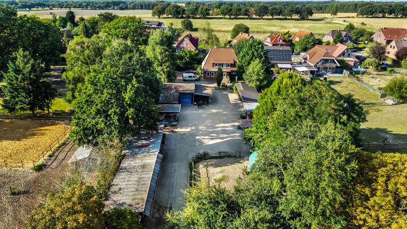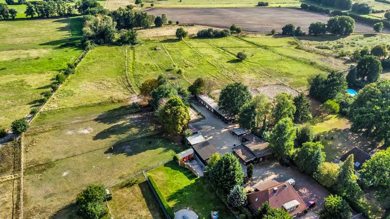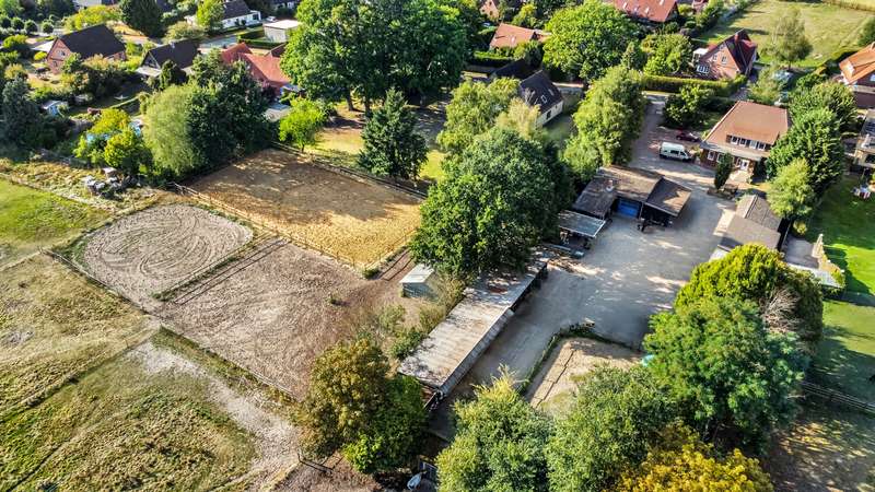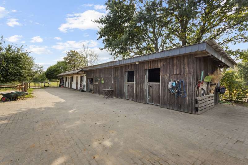 This spacious two-family house from 1965 combines a variety of possible uses with a well thought-out spatial concept and an attractive plot situation. The living space of around 226 square meters is spread over a total of six rooms. This makes the house suitable as a multi-generational home as well as for renting out or for combining living and working. Both floors are designed as independent residential units, each with a full bathroom, kitchen, living room and bedroom. On the first floor, you will find a spacious living room with a fireplace, which creates a cozy atmosphere. Adjacent is the open-plan kitchen with dining area, which was completely renovated in 2019. A special detail is the historic Viennese tiled stove, which adds to the charm of this property. The space on the first floor is complemented by a bedroom, a guest WC with shower and a large bathroom. There are three further bedrooms on the upper floor. One of them is particularly spacious and can be used flexibly as a living room or bedroom. The kitchen here was renovated in 2024. There is also a bathroom. The two floors are connected by an elegant mahogany wooden staircase. The floors on the ground floor were extensively replaced in 2019 with high-quality organic vinyl with cork insulation, creating a pleasant living environment. This was done on the upper floor in 2024. Double-glazed sun protection windows contribute to a balanced indoor climate. The house has a full basement, an oil heating system from 1985 with a tank capacity of 6,000 liters and is drained all around. It also has its own well with two shafts and a pump. The insulated roof and the attic offer additional storage space and expansion reserves. A wheelchair-accessible entrance rounds off the solid fittings. A total of four plots with a total area of around 16,762 square meters are for sale. The 804 square meter main plot is home to the residential building. A further parcel of land measuring 2,943 square meters is partly zoned as building land and partly as grassland. There are also two large areas of grassland measuring around 4,015 and 9,000 square meters, which are currently used for keeping horses. The property offers the best conditions for horse lovers: The pasture areas are easily accessible from the house via a paved path. There are horse boxes in front of the pastures. Heated drinking troughs were installed in 2025 and the feed pipes were renewed. There is also a pony paddock. An additional riding arena has been leased at an annual cost of just 280 euros. In addition to animal husbandry, the property also offers practical outbuildings, including a barn, a carport and a large truck shed. Additional living space would even be conceivable on the area where the hall is located, as the corresponding connections have already been prepared. These include a (high-voltage) electricity and water connection. A sewer connection could easily be realized. The outbuilding is brick-built and clad in wood, the intermediate ceiling is insulated. Several parking spaces complete the generous offer. This property combines living comfort with a rural idyll, practical features and a spacious plot. It therefore offers ideal opportunities for families as well as animal and nature lovers.