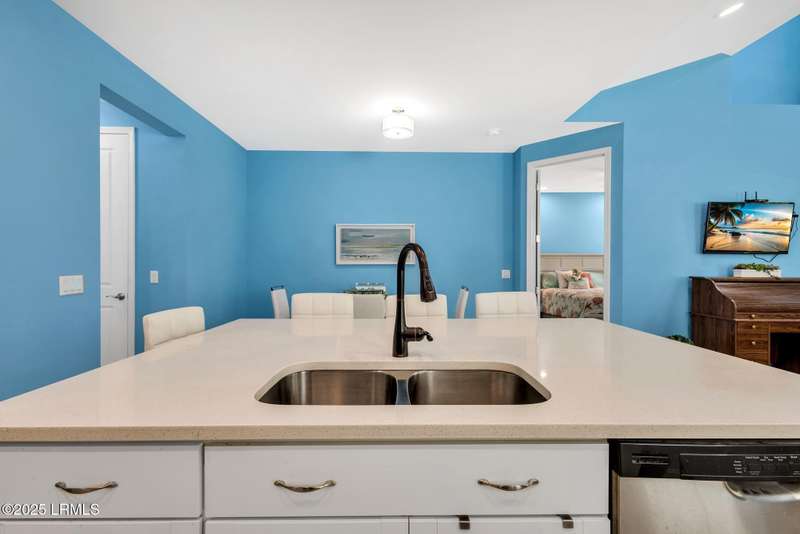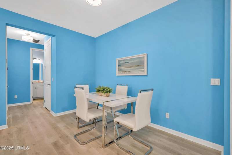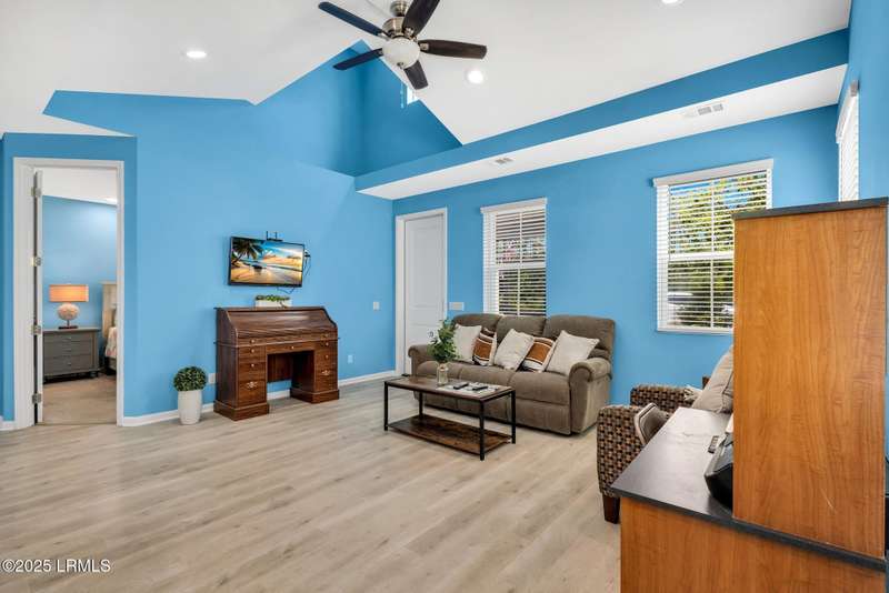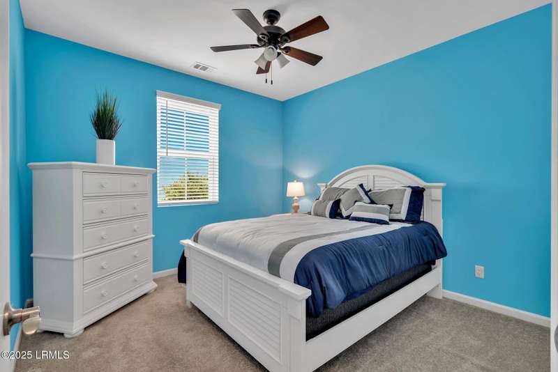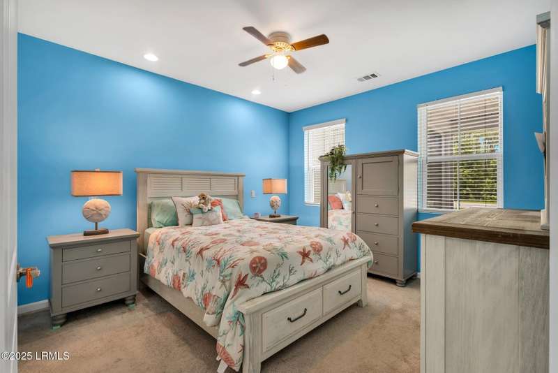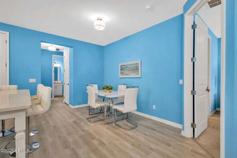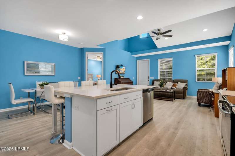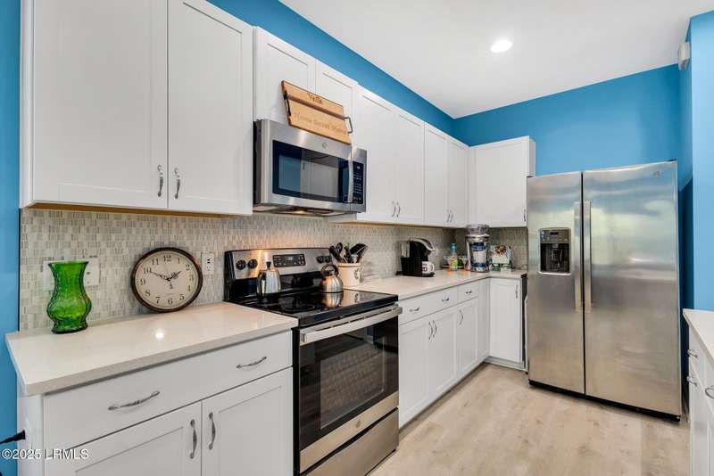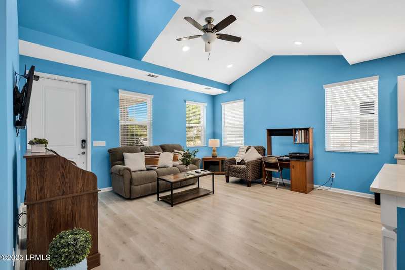 Well maintained Bamboo Cottage with a Wooded view in the exciting Margaritaville community! Don't wait for new construction - Move In Ready open plan living in this cute home with 2 Beds, 2 Baths, Screened Porch with epoxy floor overlooking serene, wooded view & 2 car Garage with epoxy floors is waiting for a new owner. Inviting spacious Living Room with fabulous Eat-In Kitchen, white cabinets & huge Quartz Kitchen Island, Stainless Steel stove, Microwave & Dishwasher convey. Perfect size Dining Area, LVP floors in living area, tile in wet area & carpets in bedrooms. Primary Bath with Double Vanities, fully tiled Shower and large Closet.