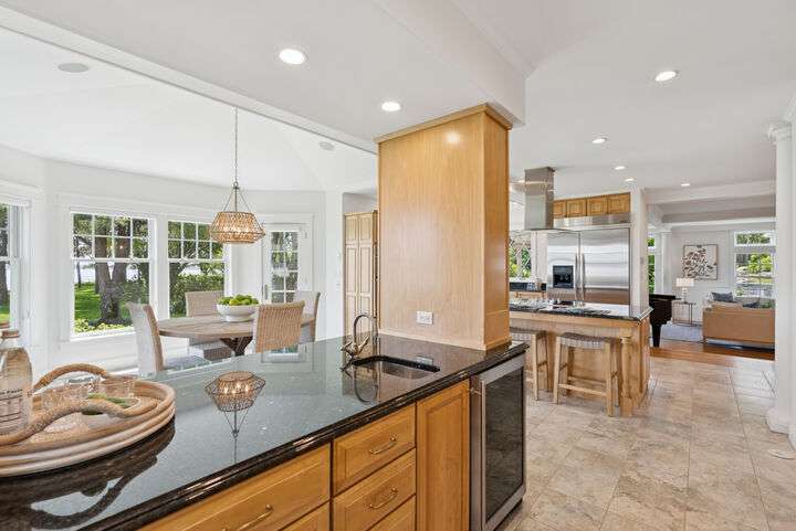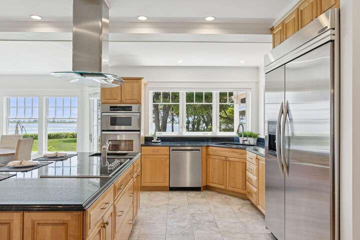 A Rare Coastal Sanctuary Nestled along Maine's coveted southern shoreline, 22 Channel Cove Lane is a distinguished waterfront retreat in the heart of Biddeford Pool's most exclusive enclave. Thoughtfully designed and lovingly maintained by its original owners, this custom residence celebrates its natural setting, capturing uninterrupted views of the tidal channel, the Atlantic horizon, and marshlands where light, land, and sea converge. Built with enduring craftsmanship and timeless materials, the home exudes both elegance and ease. Sunlight streams through expansive windows, illuminating rich millwork, coffered ceilings, gleaming hardwood floors, and graceful architectural details. The main level unfolds seamlessly to a spacious screened porch. At its center, the open kitchen is a true gathering place, featuring stainless-steel appliances, a generous island, ample storage, and a wet bar that flows effortlessly into the breakfast nook, formal dining room, and dual living spaces anchored by a double-sided stone fireplace. Upstairs, the private primary suite is a serene escape, complete with a spa-inspired bath offering radiant floors, dual vanities, soaking tub, walk-in shower, and dual closets. A private deck welcomes the morning sun with tranquil water views. Guest rooms provide built-in storage, peaceful outlooks, and access to a shared full bath, while a second-floor laundry adds convenience with custom cabinetry. The finished lower level offers flexible living space, ideal as a fitness room, studio, or media retreat. Set on 0.76 acres with 145 feet of privately owned waterfront, offering deeded access for kayaking, paddleboarding, and serene days by the water's edge. Perfectly positioned just minutes from sandy beaches, Biddeford's vibrant downtown, UNE, Kennebunkport, and less than two hours from Boston, this rare offering embodies the essence of coastal Maine living. 22 Channel Cove Lane is where timeless design meets the beauty of the sea.