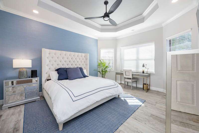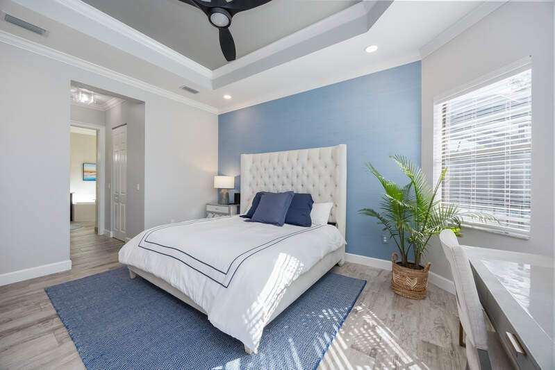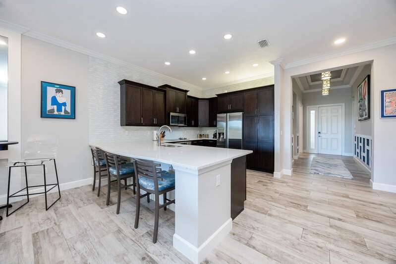 "Live Life Beautifully in Southwest Florida" in this one-of-a-kind Tribeca home in the highly sought-after community of Marbella Isles. Situated on Mandarin Lake with serene water and preserve views, this residence offers over 2,200 sq. ft. of living space with 3 bedrooms, a den, and 2.5 bathrooms. Recently updated with fresh paint, designer wallpaper, modern light fixtures, and elegant finishes, this home blends sophistication with comfort. The open layout and tasteful upgrades create a welcoming retreat, ideal for full-time living or a seasonal getaway. Step outside to the extended, fenced-in lanai, perfect for outdoor dining and entertaining, while enjoying the tranquil natural backdrop. Marbella Isles offers resort-style amenities, including a clubhouse with fitness center, card and media rooms, resort-style pool with waterslides, kiddie pool, tennis, pickleball, volleyball, and half-court basketball. All of this in a gated community with low fees, located in the heart of Naples-just minutes from pristine beaches, fine dining, shopping at Mercato, vibrant downtown Naples, and only 25 minutes from Southwest Florida International Airport.