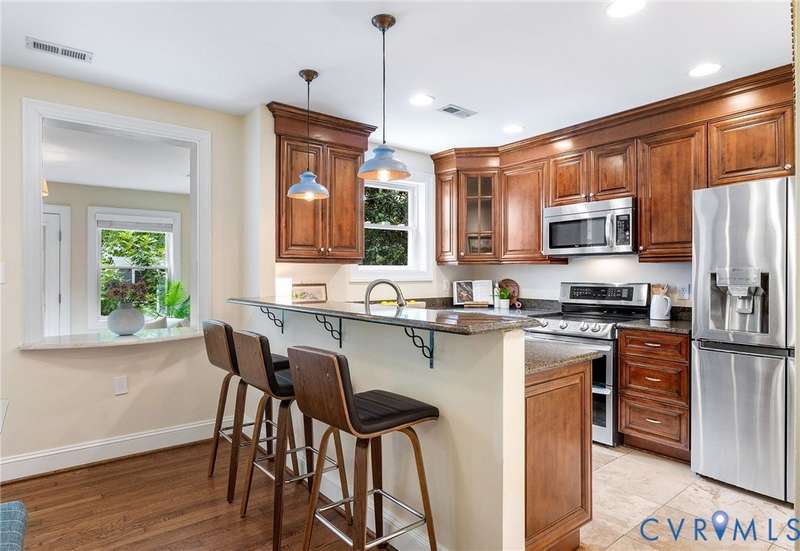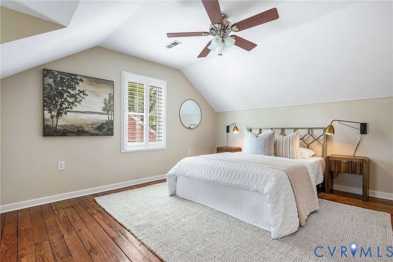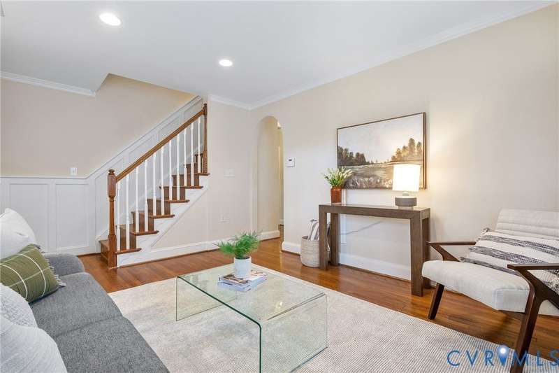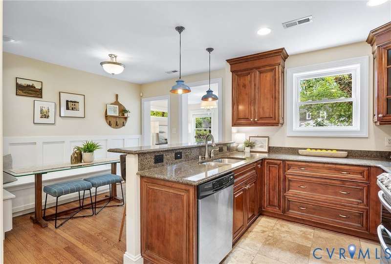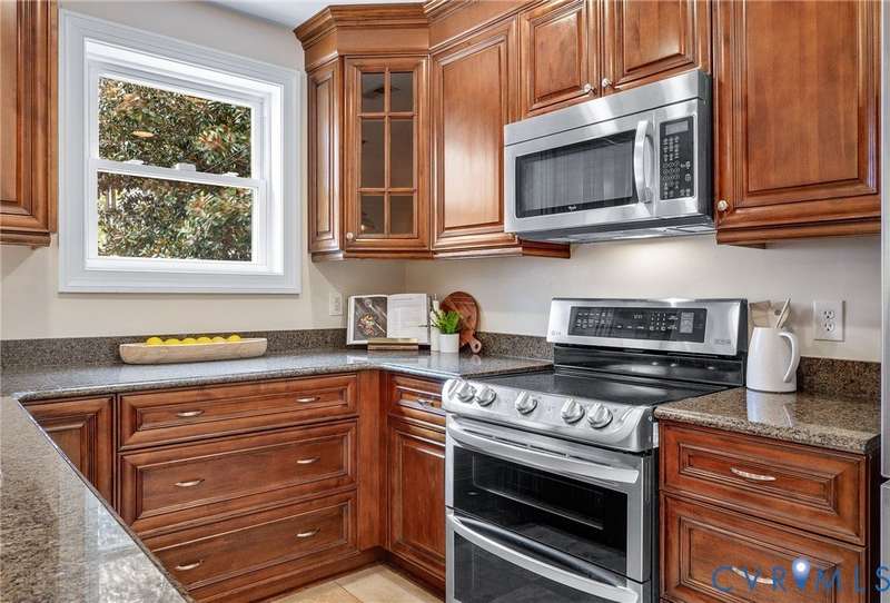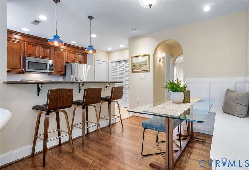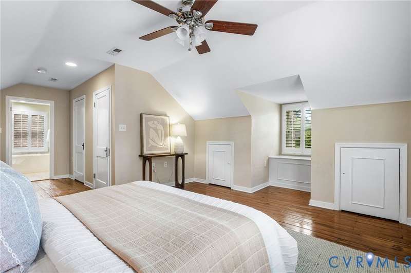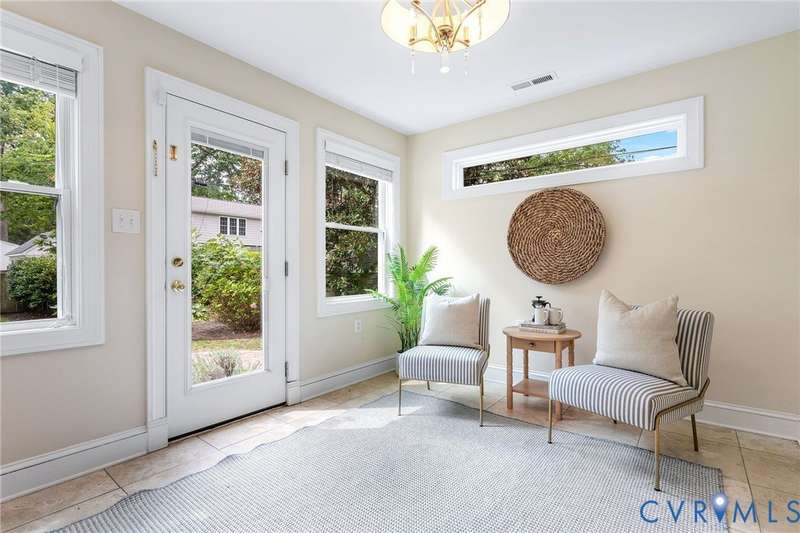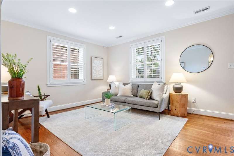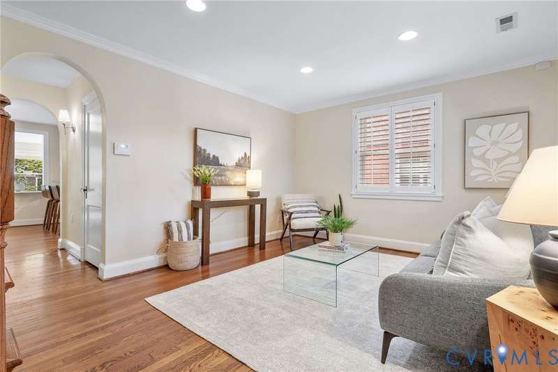 NEW PRICE ON THIS CLASSIC BRICK CAPE IN MARY MUNFORD ELEMENTARY SCHOOL DISTRICT!! Nestled on a quiet tree-lined street with grassy median, this home offers charming arched doorways and hardwood floors with updated kitchen and baths. The main level features a living room with crown molding, kitchen with granite, SS appliances & pantry, dining area with built-in corner banquette, utility closet with w&d hookups, bright sunroom with new roof and exterior door and two bedrooms and a full bath. A spacious primary suite occupies the upper level with a walk-in closet, fan/light, dormer with storage and an updated ensuite bath with tub and separate shower, double vanity and dormer with storage. Handsome Plantation shutters and recessed lights are found in most rooms. Enjoy fall in the fenced rear yard with a paver patio, garden shed and nicely landscaped with magnolia, hydrangeas, rhododendron and dogwood, Japanese maple and fig trees. Welcome home!