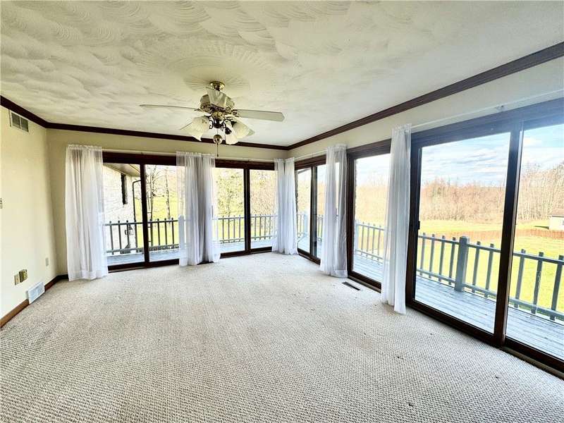Discover the perfect blend of elegance and uncompromising quality craftsmanship in this stunning custom stone ranch, nestled in a serene country setting just minutes to the Ohio line. A covered front porch features dramatic arched openings, welcoming you into a spacious and thoughtfully designed interior. The enviable kitchen is a chef's delight, showcasing rich oak cabinetry, a serving peninsula and Electrolux wall oven, perfect for entertaining. The spacious owner's bedroom provides a relaxing retreat, while two fireplaces add cozy charm. Underscored in new woodgrain flooring, the lower level serves as a fully functional second living space, complete with a full kitchen, bathroom, bedroom, and family rooms. Convenience is key, with laundry rooms on both levels and a new roof installed in 2018 for peace of mind. The Florida room and adjacent screened porch provide ideal spaces to unwind while enjoying the picturesque setting. Fenced backyard, concrete drive, professional landscaping.
