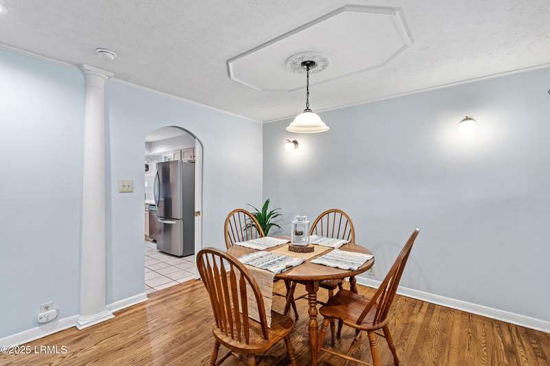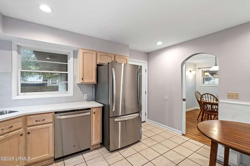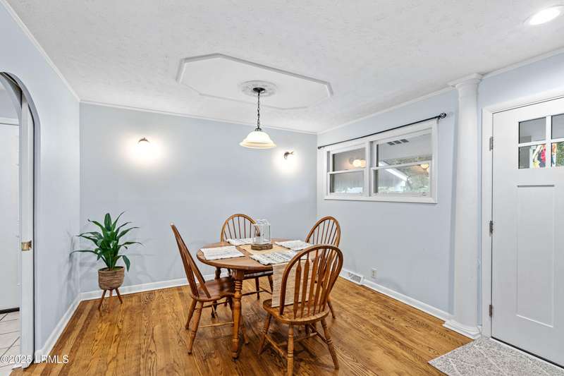 Welcome to this classic brick ranch, ideally situated in one of the most sought-after neighborhoods-just minutes from the Spanish Moss Trail, downtown Beaufort & Port Royal. Inside, you'll find a renovated eat-in kitchen featuring Quartz countertops, a tile backsplash, new appliances, a nostalgic bench seat, & a pocket door. Original HW floors add warmth & character, while modern upgrades such as a tankless water heater, & new doors enhance comfort & efficiency. Additional highlights include a dedicated laundry room, new porch railing, & a freshly painted exterior. Step outside to a spacious, fenced yard-perfect for kids, pets, & entertaining. This home blends timeless charm with thoughtful updates, making it a wonderful place to call home. Don't miss your chance-schedule a showing today!
