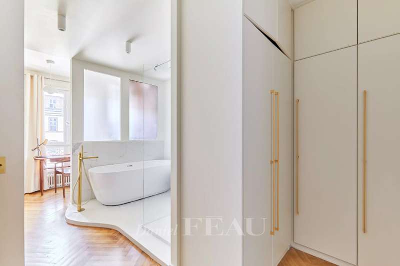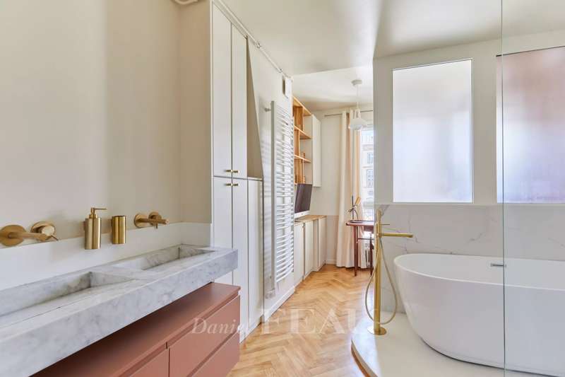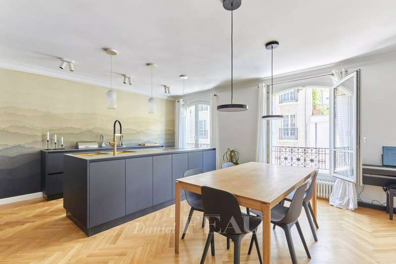 Vaneau/Babylone neighbourhood, near the capital’s iconic Bon Marché department store. This 147 sqm apartment on the 3rd floor of a fine early 20th century building with a lift is in perfect condition. East and west facing, it includes a spacious living/reception room with an open-plan kitchen, a master suite with a bathroom, a study, a dressing room and a wc, three further bedrooms, a shower room, a utility room and a guest wc. With a cellar.