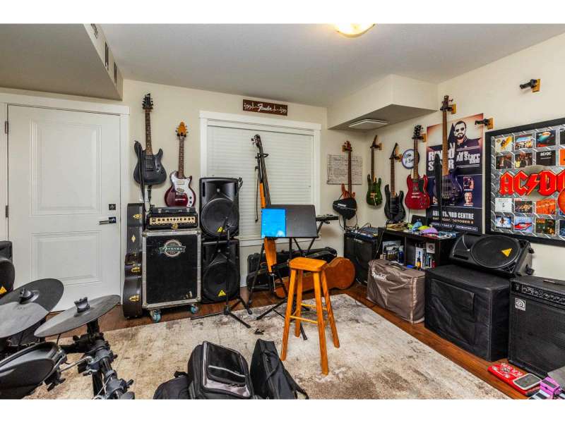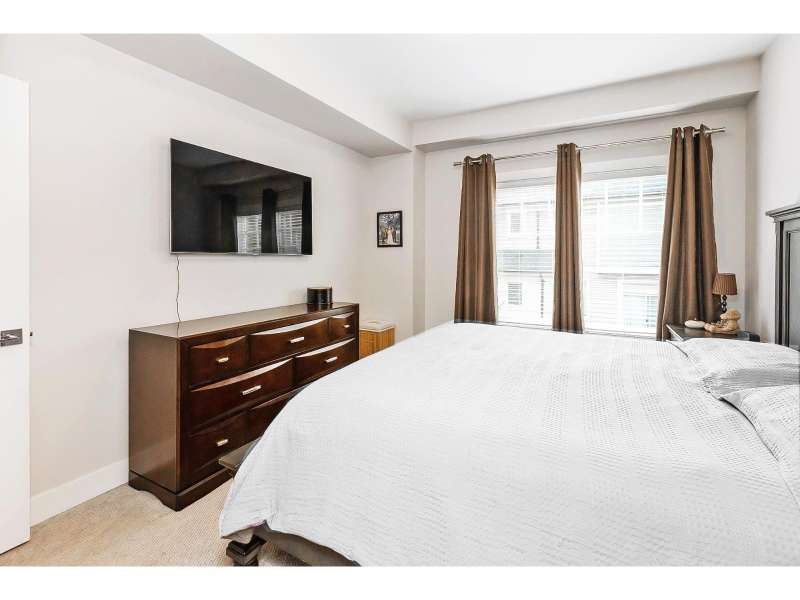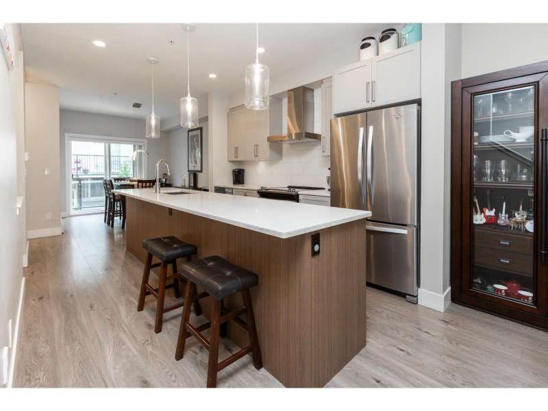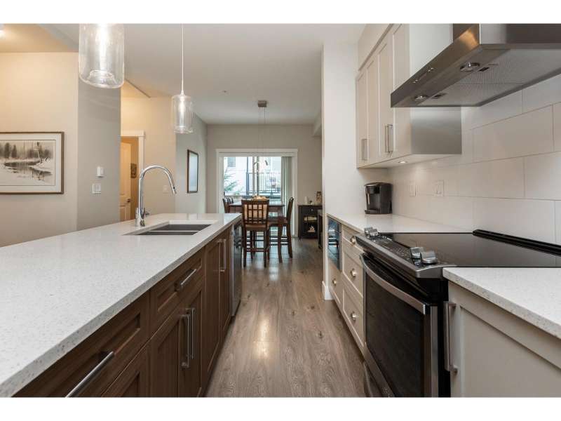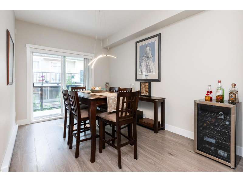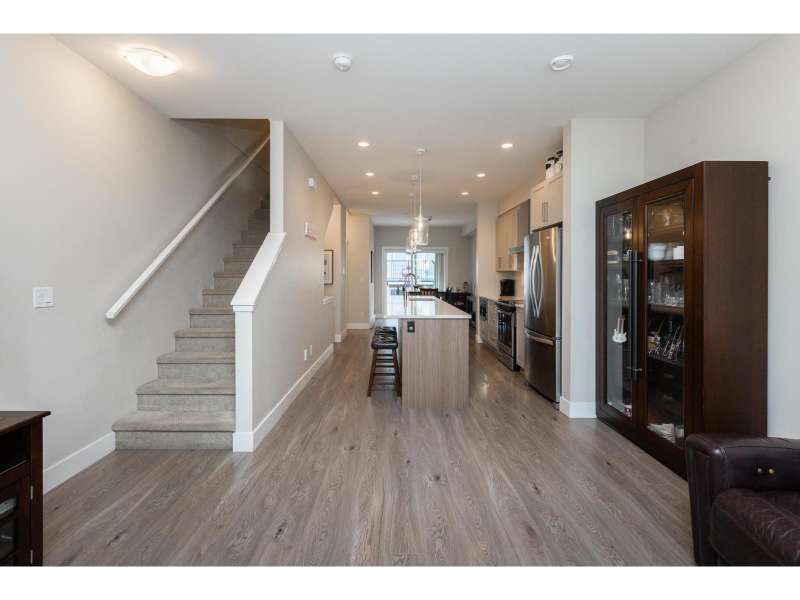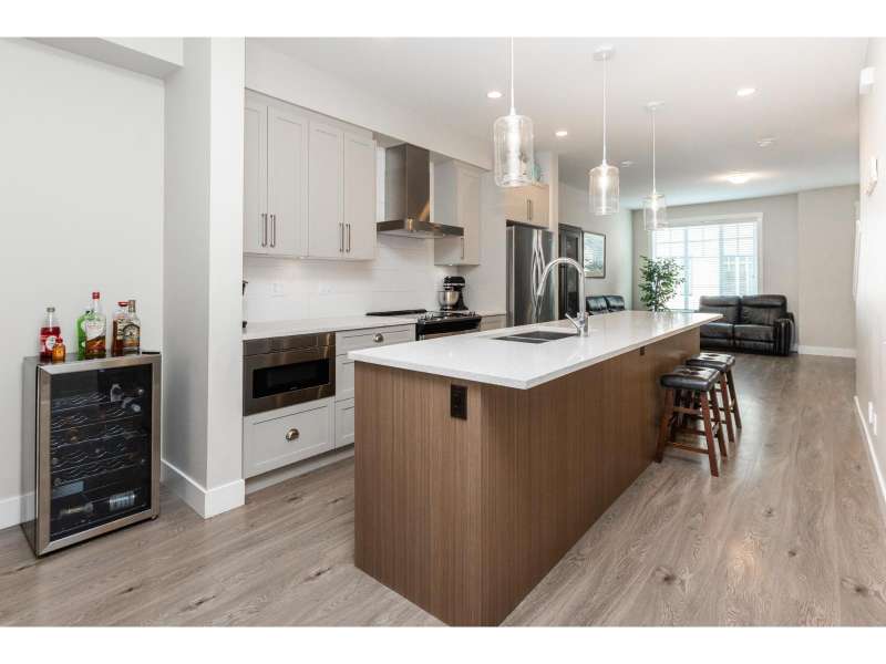 Gabriola Park - Parkside Townhomes by award-winning Royale Properties. This 3 bed, 2.5 bath, 1,599 sq. ft. home features an open-concept main floor with 9' ceilings, designed for entertaining. The gallery-style kitchen takes centre stage with a 12' island, shaker cabinets, quartz counters, and a Whirlpool stainless steel appliance package including French door fridge, Venmar hood fan, and microwave drawer. A convenient powder room is located on the main. From the dining room, step onto a large covered balcony, ideal for BBQs and overlooking the fully fenced yard. Upstairs offers spacious bedrooms, while the oversized tandem garage provides ample storage. Located next to Yorkson Park with schools, shops, and transit just minutes away. (id:58403)