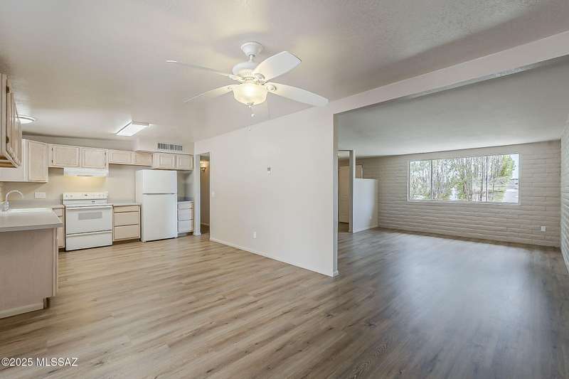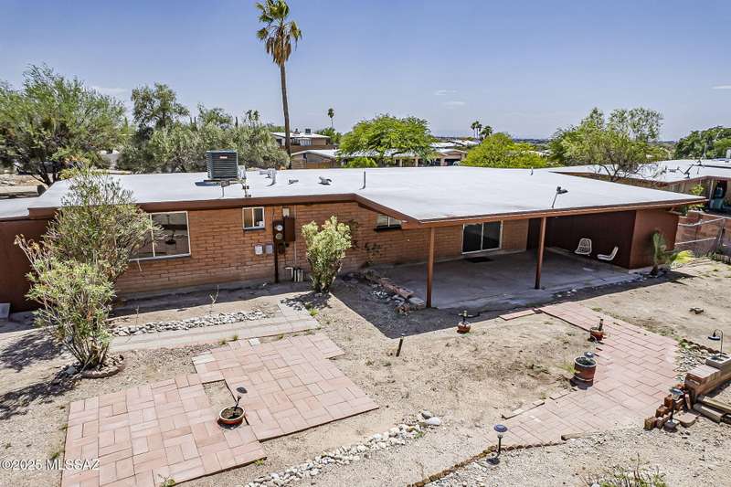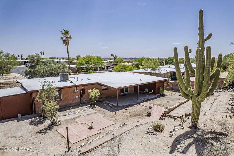 Eastside home sits on .33 lot, very private. No HOA here so bring your toys! 1367 sq ft 3 bed 2 bath home. Recently refreshed with interior & exterior paint. New luxury vinyl plank flooring through out. New roof 2025, new HVAC 2025, New door hardware, switches and outlets, new toilets, bath sinks, vanities & countertops. All popcorn ceilings removed. Bright & spacious floorplan. The backyard is terraced & enclosed by a block wall very private. Enjoy the huge majestic saguaro attracting lots of bird life. The abandoned alley to the east is included in the lot. Access fenced storage area along the alley. Workshop attached to east side of building. Ready for your projects. Previously a wood working shop.