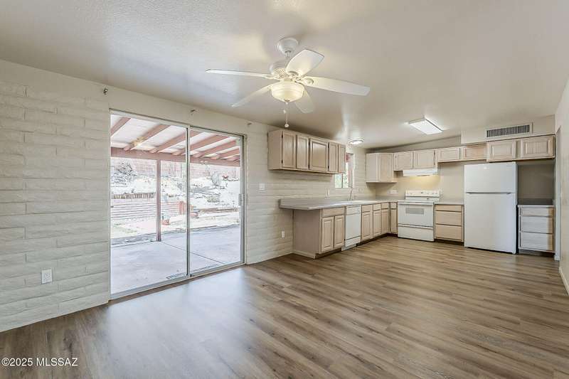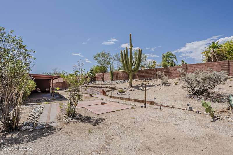 Tucked deep inside a mature Eastside hood sits a 1367 sq ft 3 bed 2 bath home on a very private .33 acre lot. No HOA here so bring your toys. Completely fenced. Recently refreshed with interior & exterior paint. New luxury vinyl plank flooring through out. New roof 2025, new HVAC 2025, New door hardware, switches and outlets, new toilets, bath sinks, vanities & countertops. All popcorn ceilings removed. Bright & spacious floorplan. The yard is terraced & enclosed by a block wall very private. Enjoy the huge majestic saguaro attracting lots of bird life. The abandoned alley to the east is included in the lot. Access fenced storage area along the alley. Workshop attached to east side of building. Ready for your projects. Previously a wood working shop.