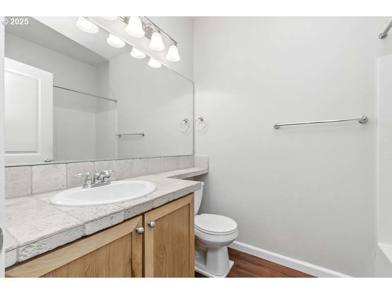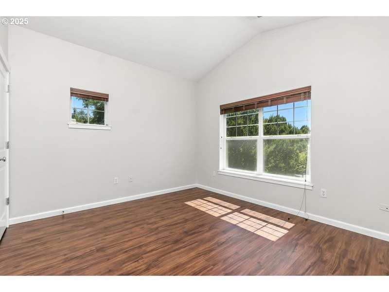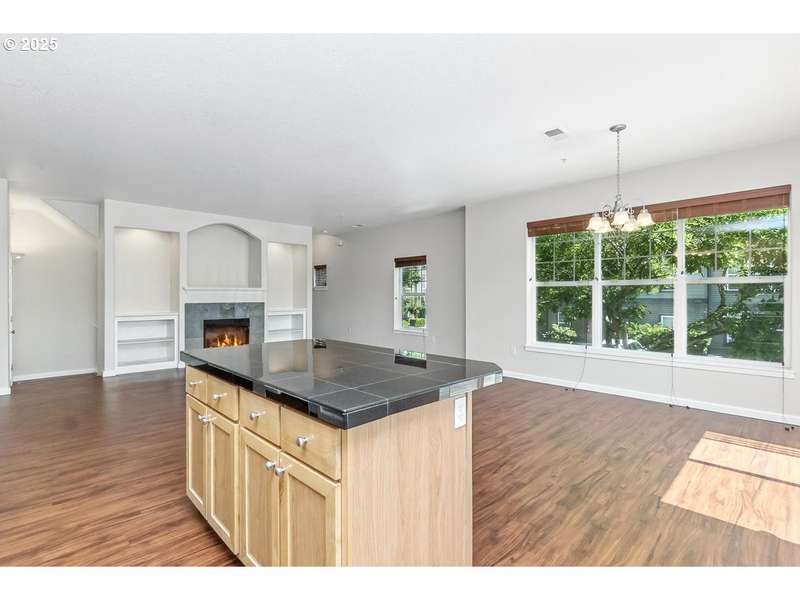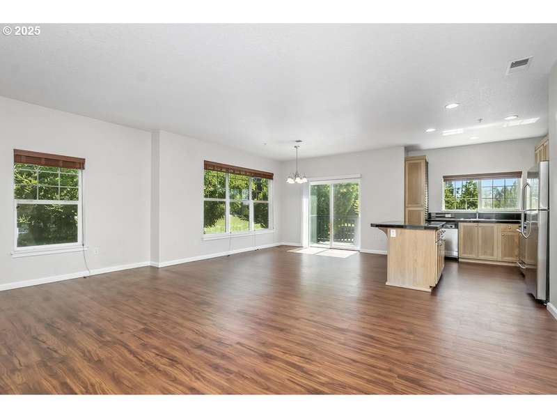 Adorable and affordable end-unit condo at Elmonica Station. Easy commute to Nike, Intel, Microsoft, etc.! Luxury vinyl plank flooring throughout most of the home. High ceilings and open floor plan give spacious living. Very well maintained property with window blinds throughout. 1 car garage. All appliances stay! HOA fees include water, trash, exterior maintenance and management.