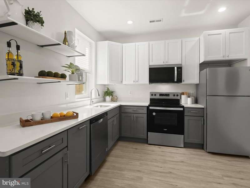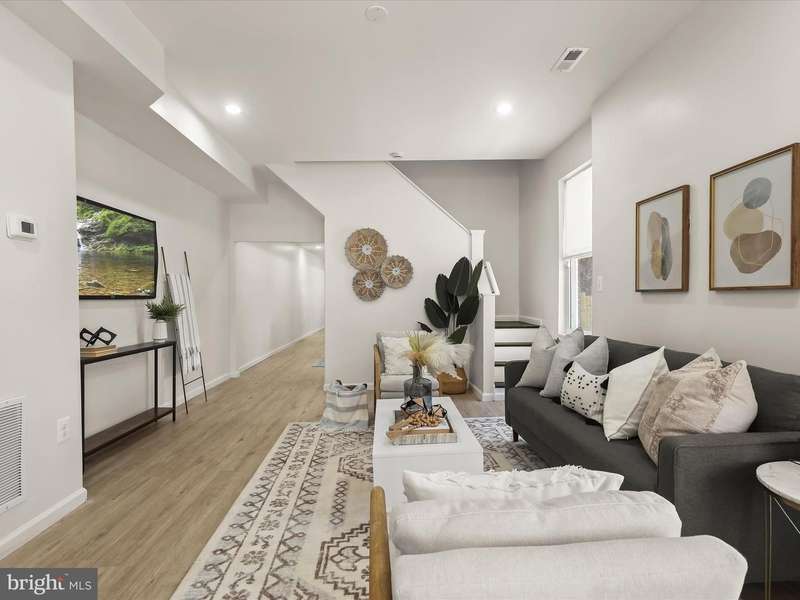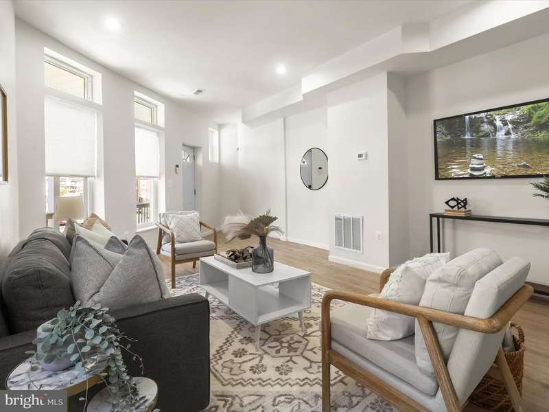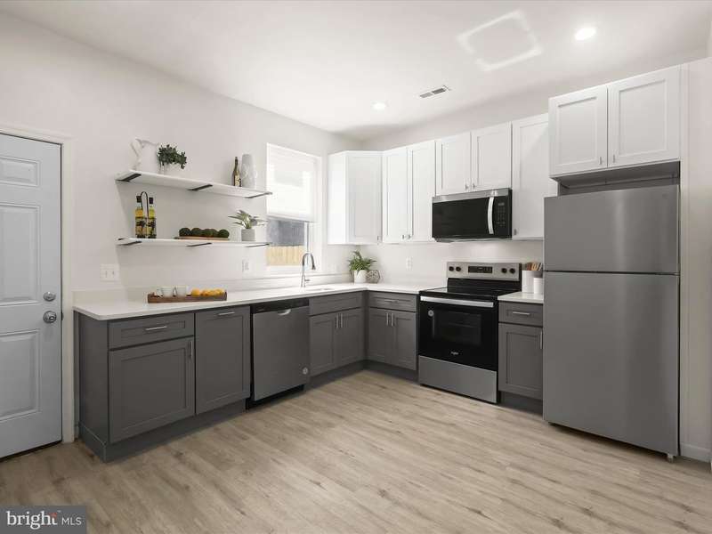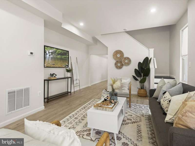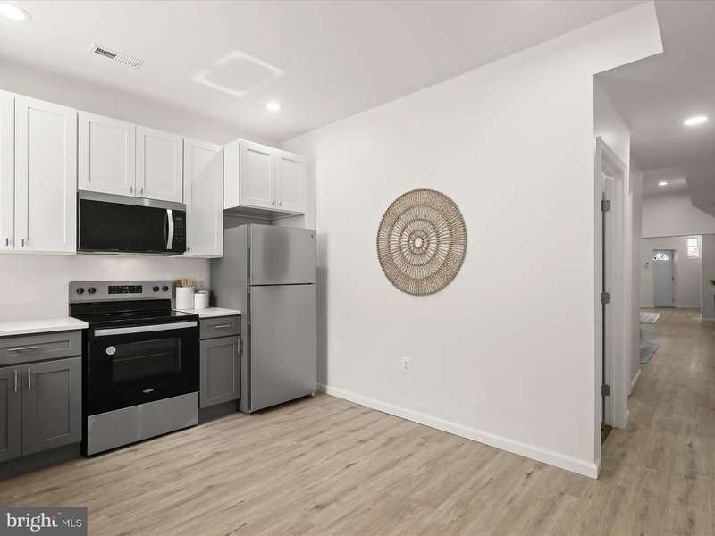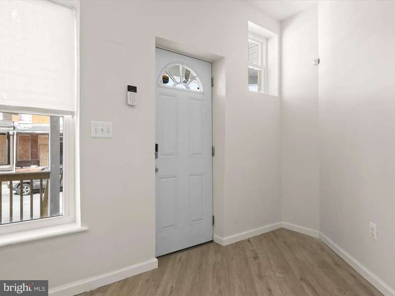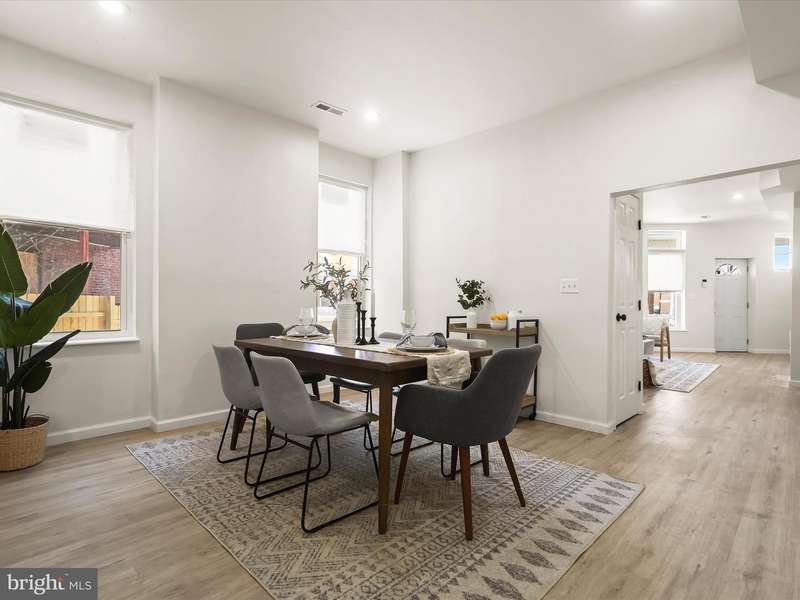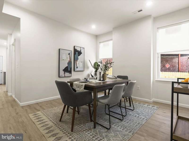 Welcome to this beautifully renovated all-brick corner home in the heart of East Baltimore Midway! This spacious 3-bedroom, 2-bathroom gem features stylish, design-inspired updates throughout and boasts a fully fenced side and backyard with expansive patio space-perfect for entertaining or enjoying quiet outdoor moments. Step inside to discover luxury vinyl plank flooring, fresh neutral paint, recessed lighting, and sleek black hardware that adds a modern touch. The main level offers a light-filled living room, formal dining area, and a thoughtfully designed eat-in kitchen complete with a charming breakfast nook and backyard access. The kitchen showcases dual-tone cabinetry, gleaming quartz countertops, stainless steel appliances including a built-in microwave, and a glass top electric range-blending function and flair. Upstairs, you'll find three generously sized bedrooms and a full bath. The primary bedroom is a true retreat with a cozy sitting area and three closets, while the stylish upper bath features elegant tile flooring and a designer shower niche with eye-catching honeycomb tile. The expansive basement offers endless potential and features a brand-new washer and dryer, plus a convenient utility sink-ready for your personal touch and customization. Enjoy the best of indoor-outdoor living with the expansive patio and fully fenced yard, just minutes from local green spaces like Cecil Community Park. Don't miss your chance to own this stunning home that seamlessly combines comfort, style, and convenience!