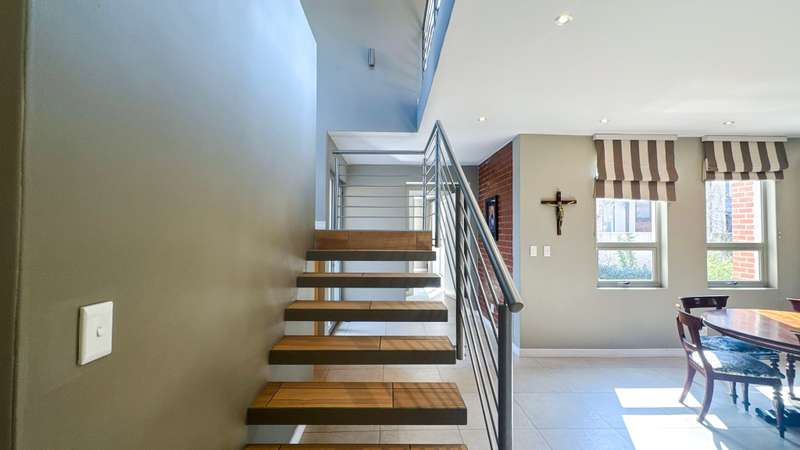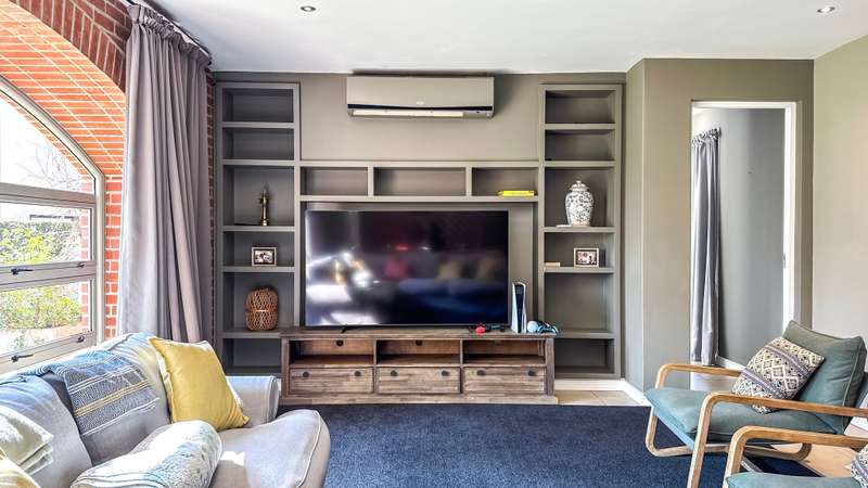 Step into refined estate living with this immaculate 3-bedroom, 3-bathroom home tucked away on the greenbelt in prestigious Southdowns Estate. Offers the perfect blend of modern design and natural beauty. From the moment you arrive, the home's striking architecture, ivy-clad walls, and clean lines set the tone for a space that's both sophisticated and inviting. Inside, an open-plan layout seamlessly connects the stylish kitchen to the warm and welcoming living areas, creating the ideal setting for family life and effortless entertaining. The covered patio, complete with a built-in-braai, flows out to an expansive lawn and uninterrupted green belt view. Each of the three bedrooms is generously sized, with the main suite featuring a luxurious walk-in wardrobe and modern en-suite. Extras include easy access to estate amenities, top schools, and nature trails. This home offers the best of countryside calm with modern convenience.